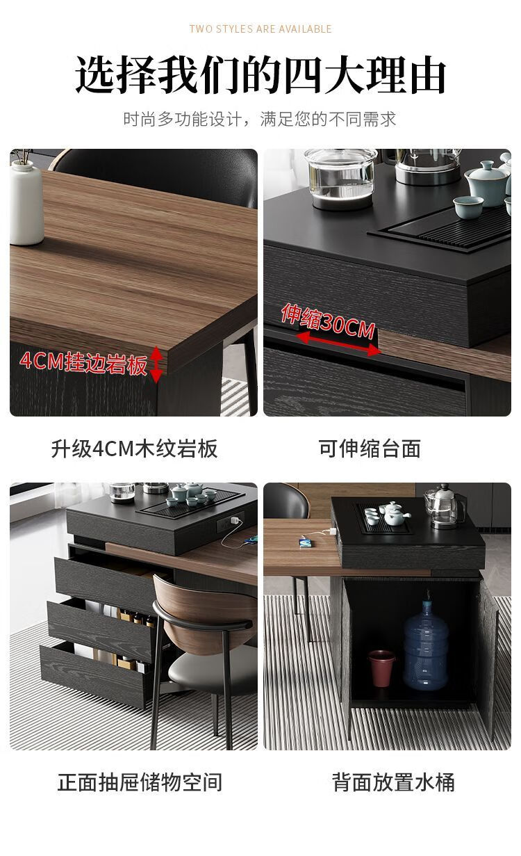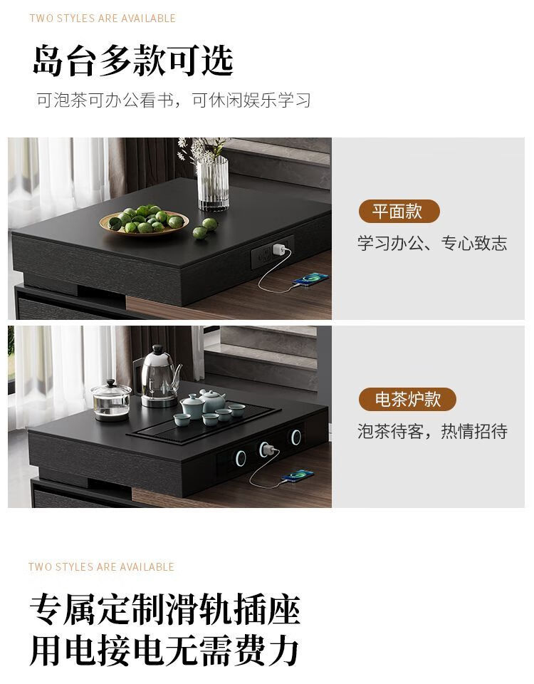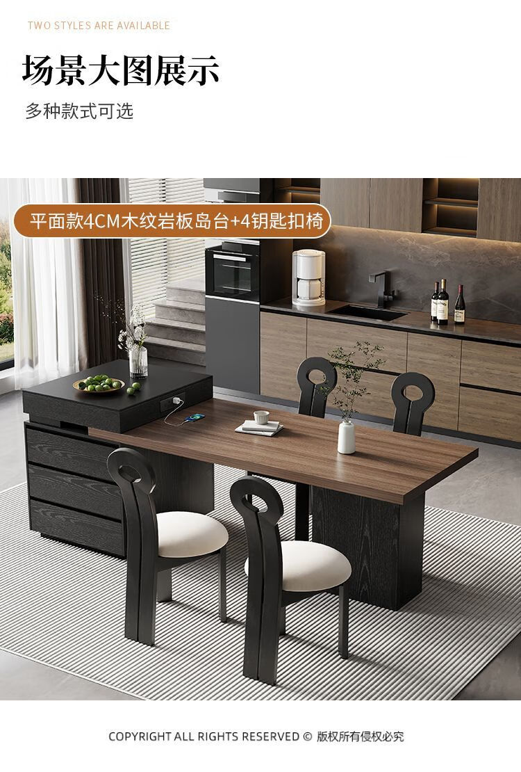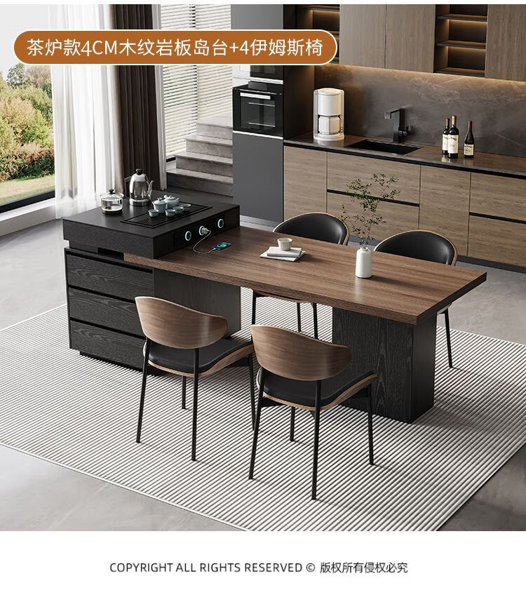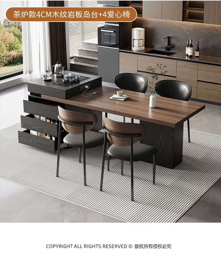 Suzhan island table light luxury minimalist coffee table multi-functional retractable all-in-one office home small apartment slate dining table island table 60cm (total length 1.65m-1.9m) island table dining table (ordinary socket)