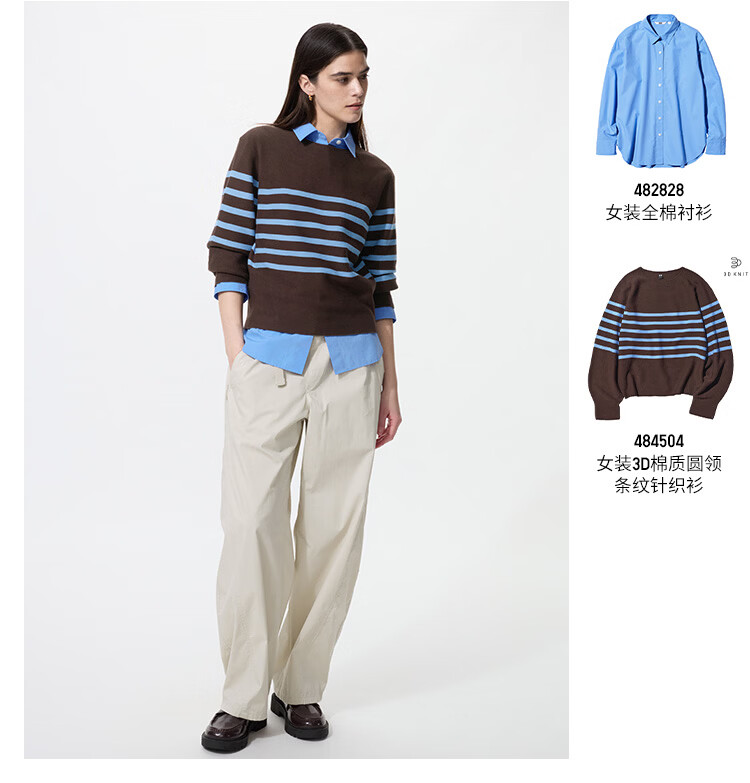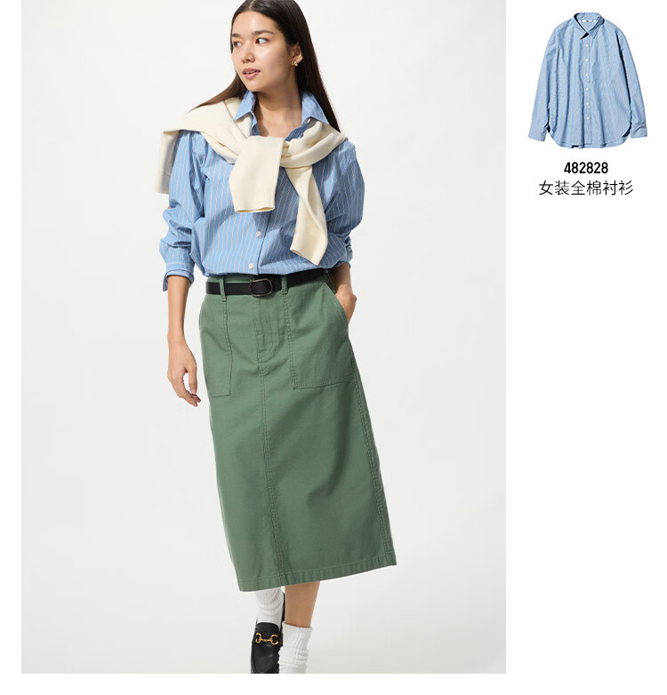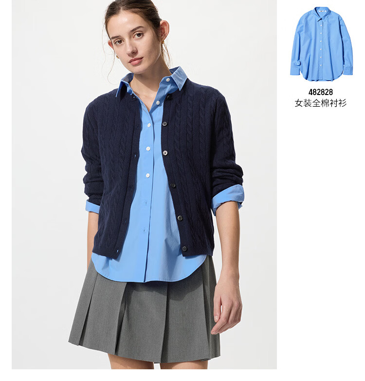 Uniqlo Women's Cotton Shirt/Long Sleeve Shirt Casual Commuting Jacket 482828 63 Sky Blue M