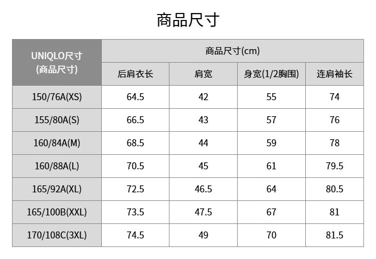 China (cm) 160-165/84-86 165-170 / 88-90 167-172 / 92-96 168-173 / 98-102 170-176 / 106-110