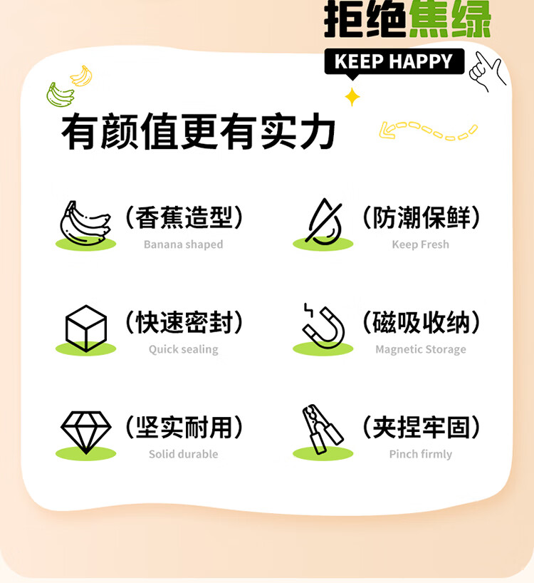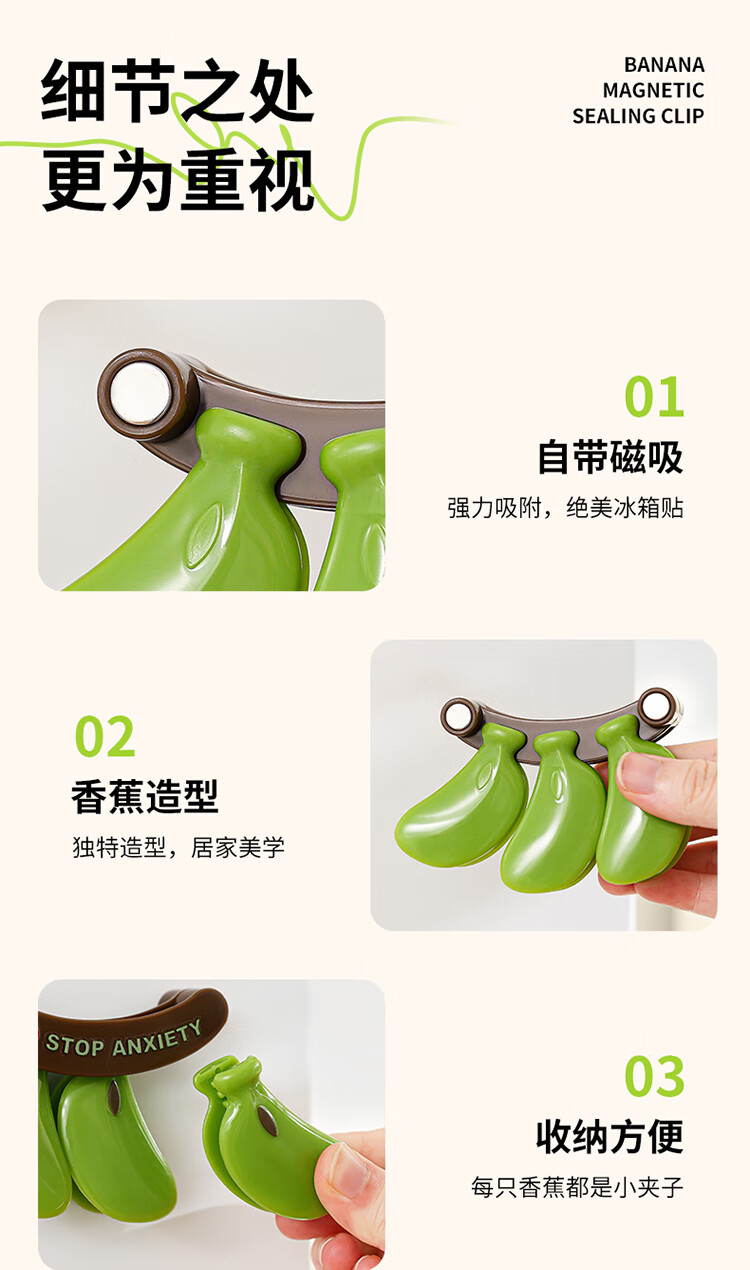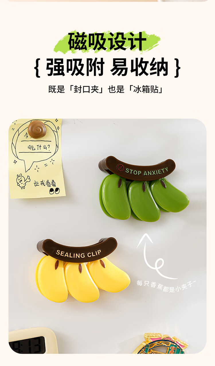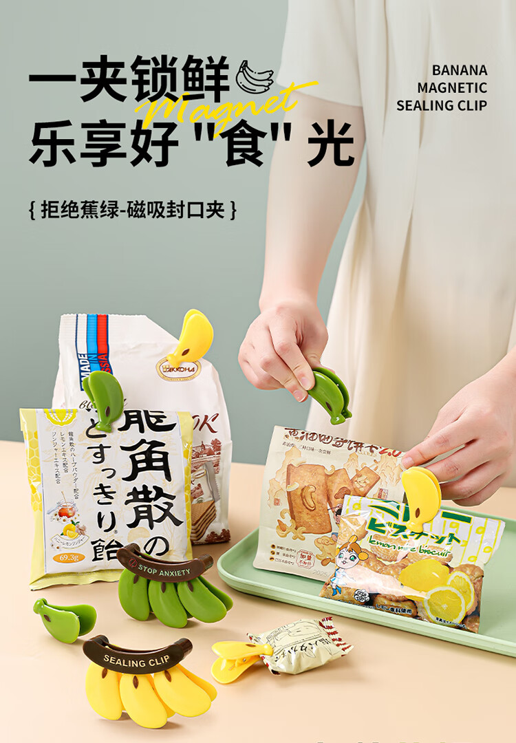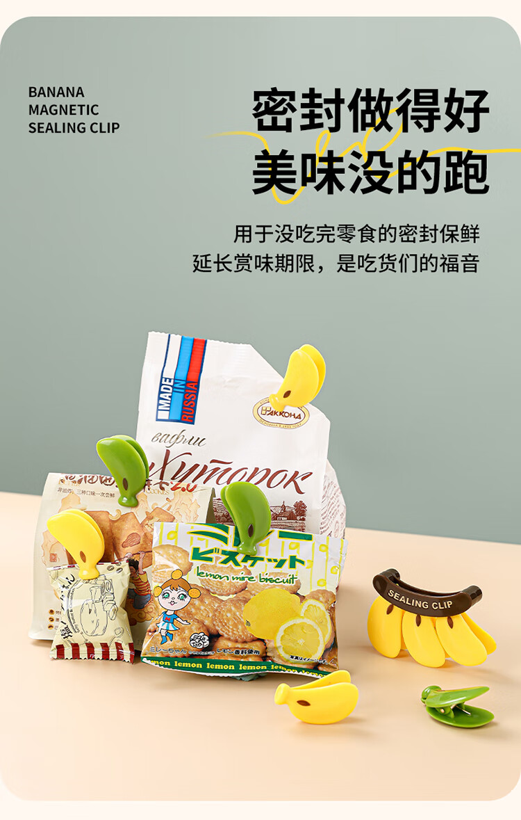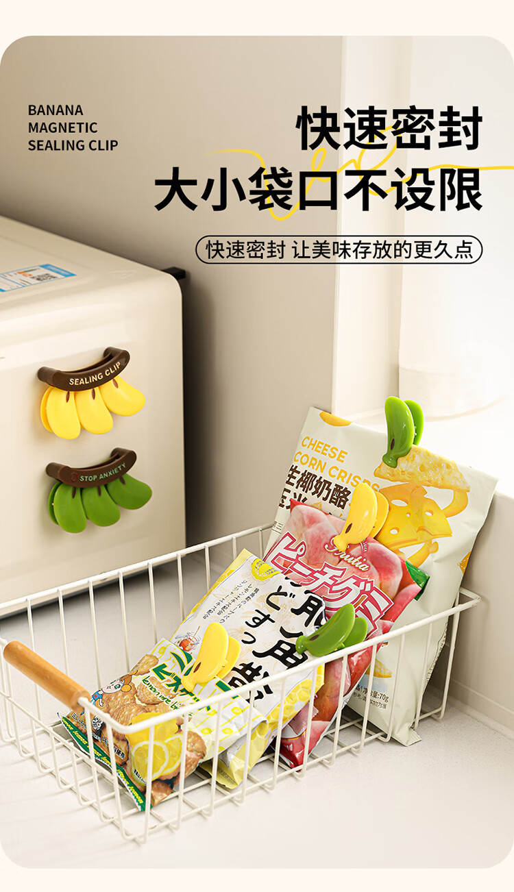 YOUQIN Banana Sealing Clip Magnetic Refrigerator Magnet Creative Snack Clip Home Kitchen Seasoning Bag Food Sealing Clip Banana Sealing Clip - Yellow