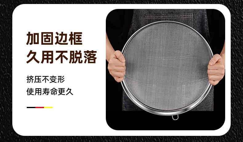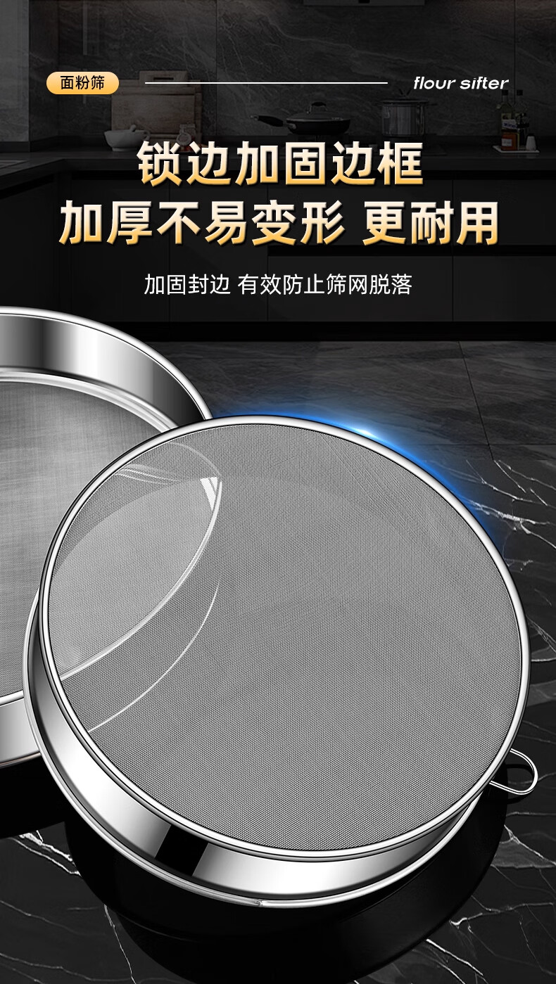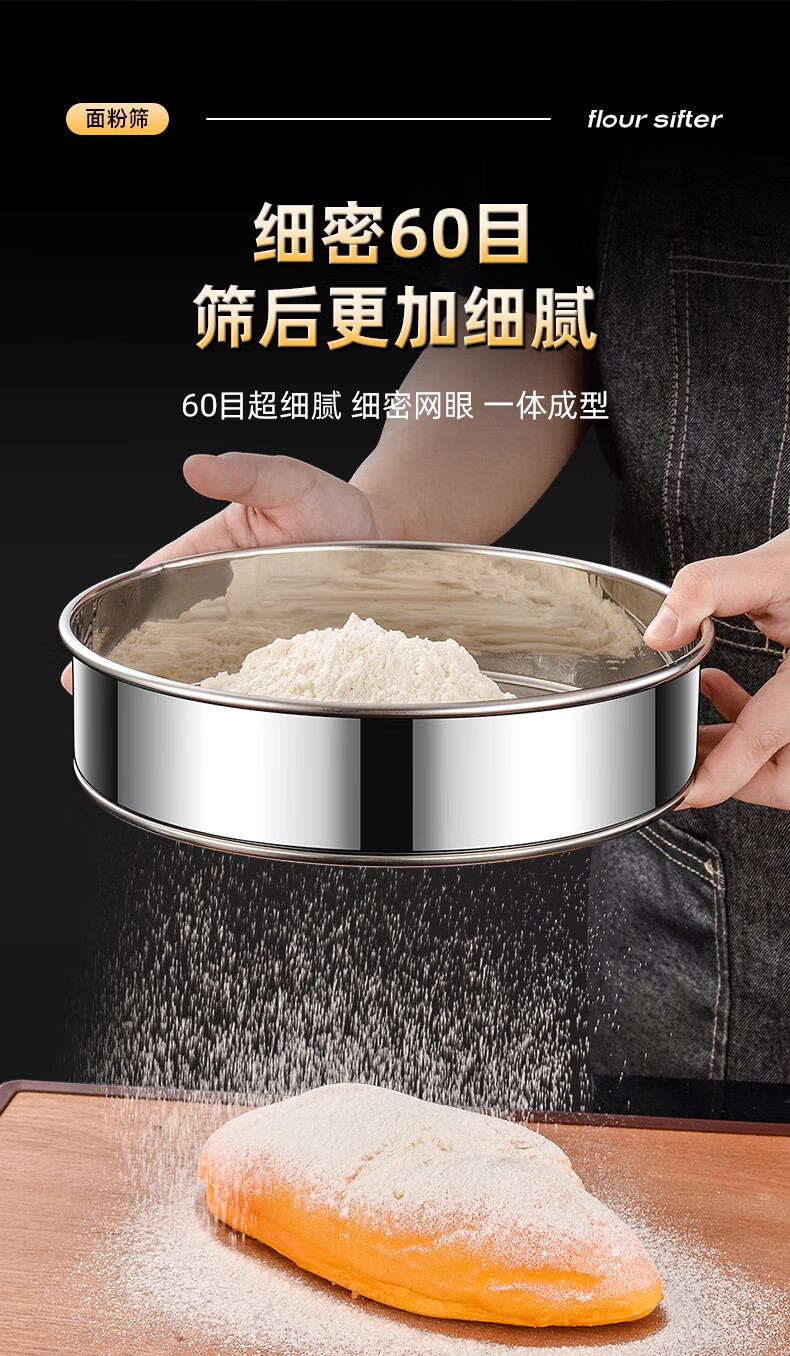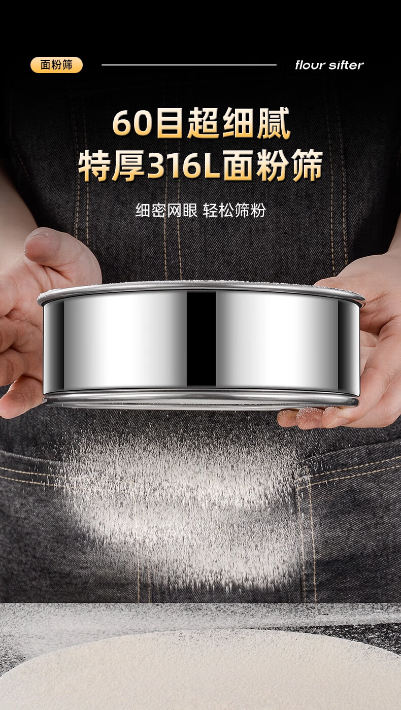 FVFH German flour sieve 316 stainless steel 60 mesh filter sieve surface ultra-fine flour mesh sieve bug fine leakage mesh extra thick 15cm flour sieve 60 mesh-with ring type