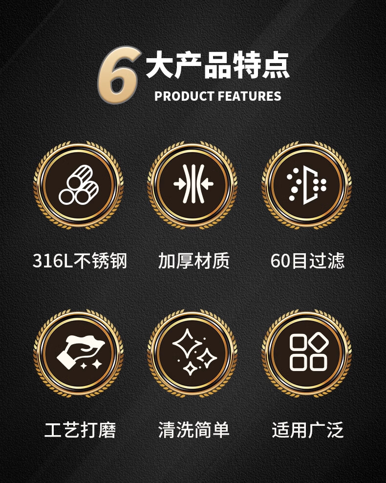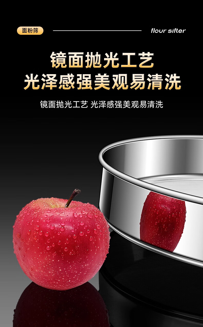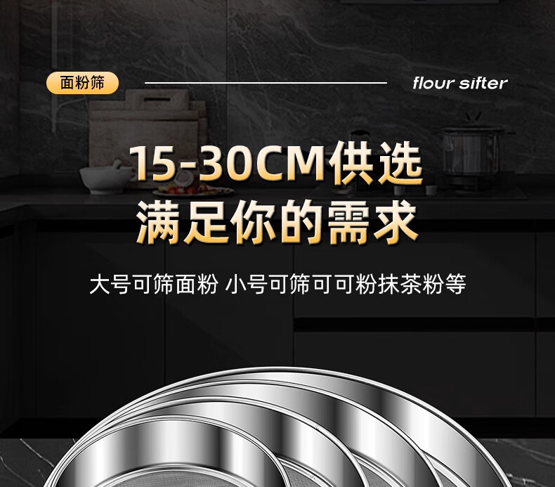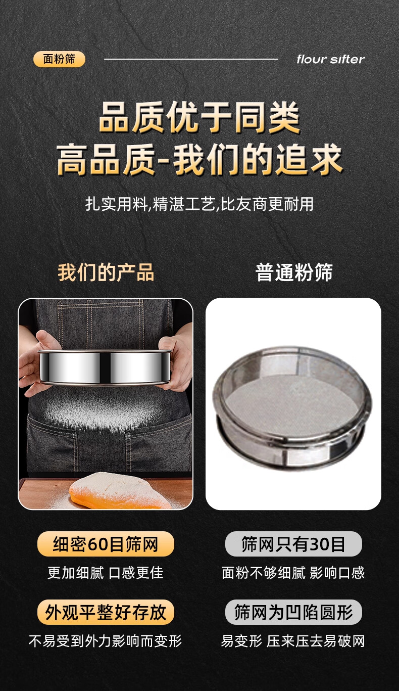 FVFH German flour sieve 316 stainless steel 60 mesh filter sieve surface ultra-fine flour mesh sieve bug fine leakage mesh extra thick 15cm flour sieve 60 mesh-with ring type