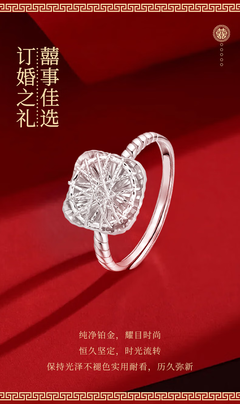 Lao Fengxiang Engagement Proposal Set Platinum Necklace Hardware Jewelry Wedding Gift Valentine's Day Birthday Gift for Girlfriend and Wife Engagement/Proposal Platinum Small Sugar Cube Hardware Set 52# About 30.4g