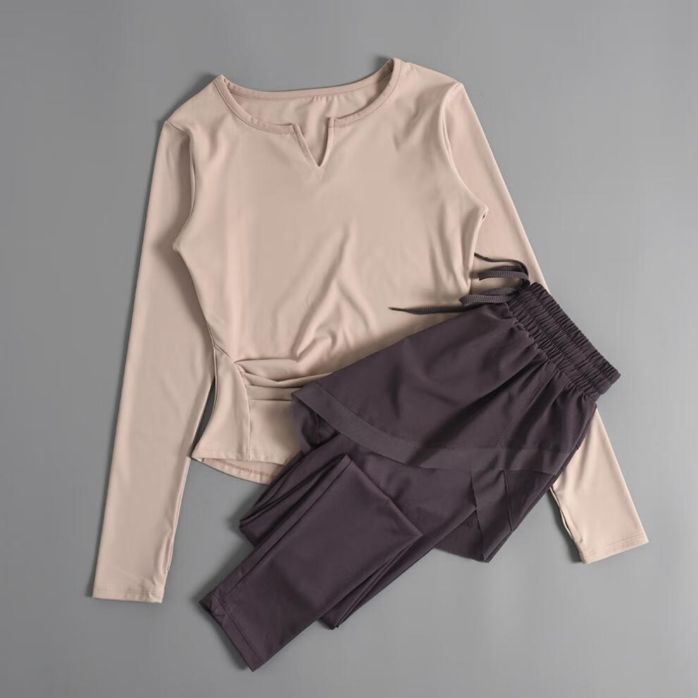 LI NING Li Ning Flagship Store 2025 autumn and winter new yoga clothing set for women, high-end Pilates training fitness long green top + green pants L