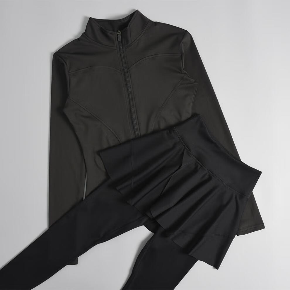LI NING Li Ning Flagship Store Sports Suit Women's Pilates Training Tight Yoga Top Autumn and Winter Running Breathable Fitness Milk Coffee Color + Gray Pants S