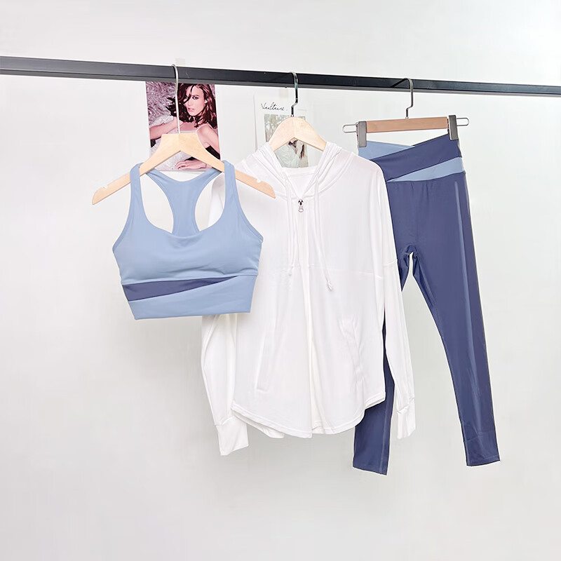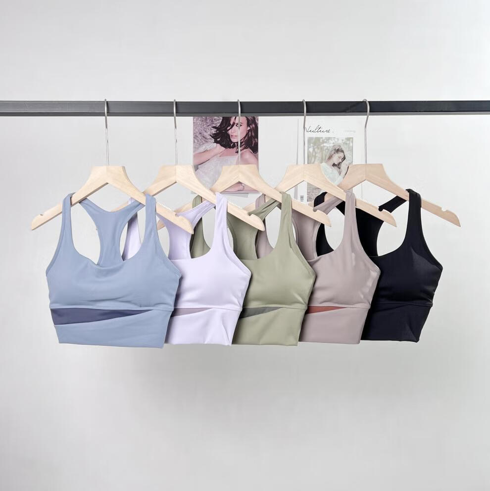 LI NING Li Ning Flagship Store Autumn and Winter New Style Yoga Suit with Breast Pads for Women Running Contrast Color Pilates Sports Fitness Milk Coffee Two-piece Set M
