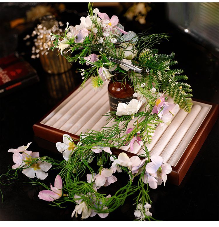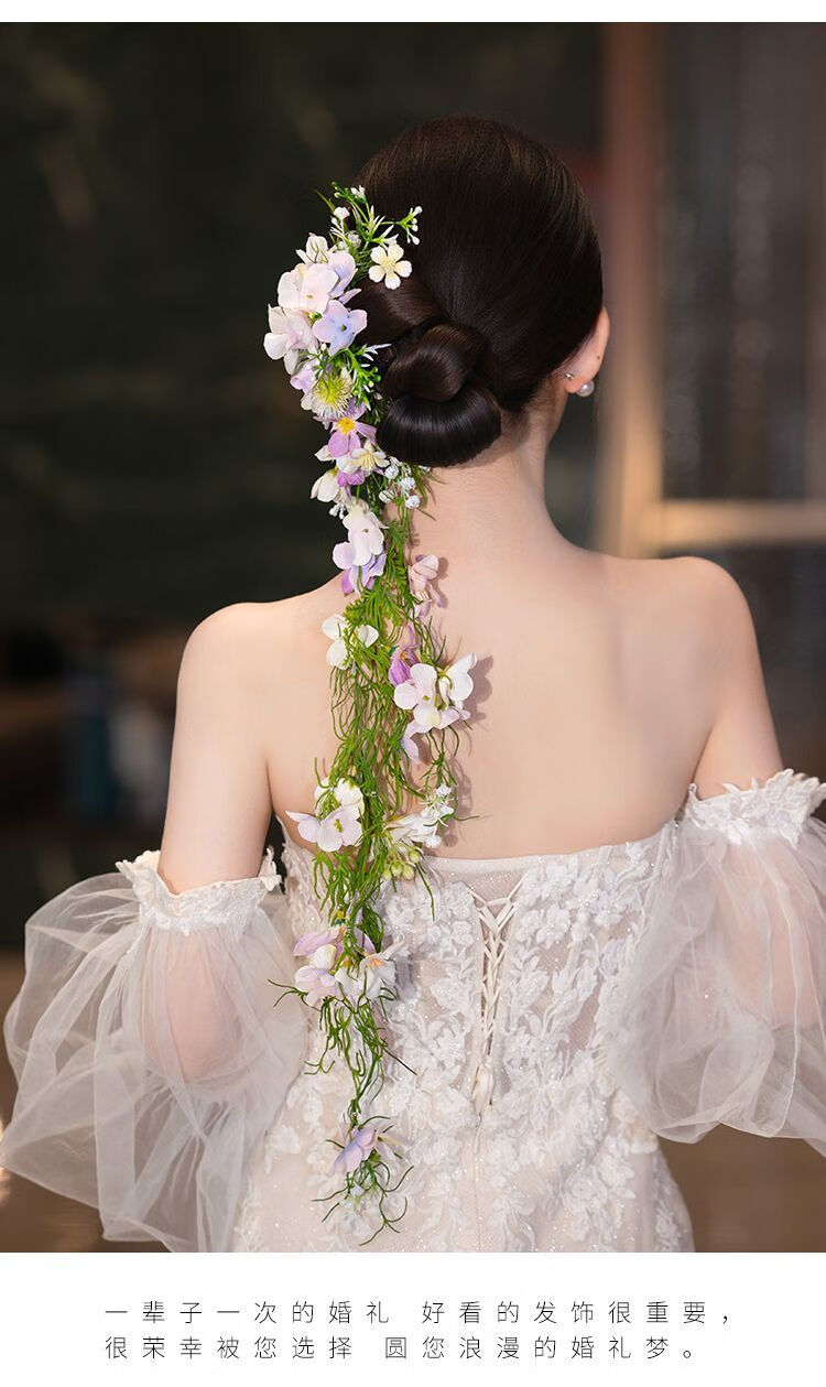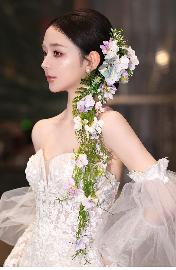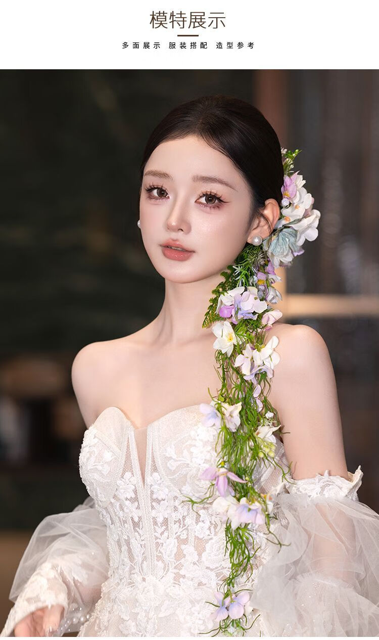 Korean style bride with makeup and hair, wedding headwear, bridal headwear, super fairy and beautiful flowers, forest style Korean wedding dress, model headwear