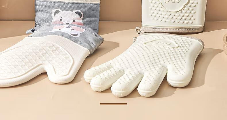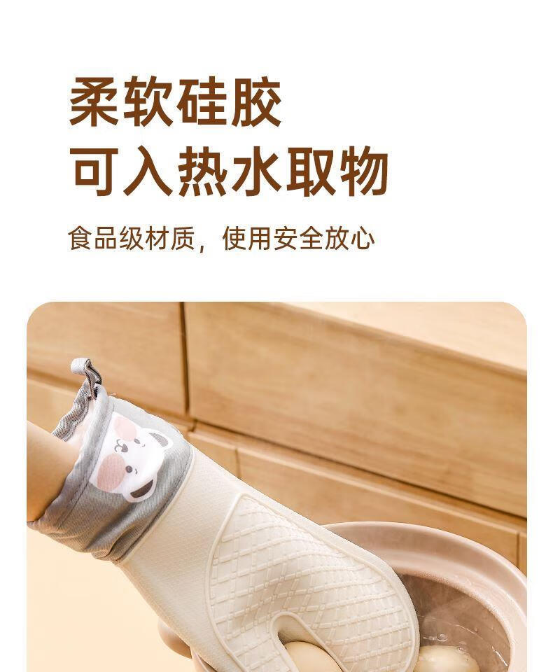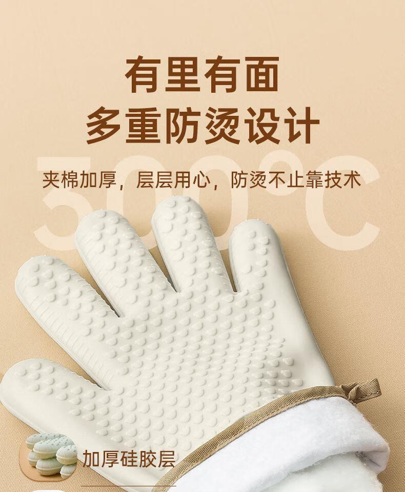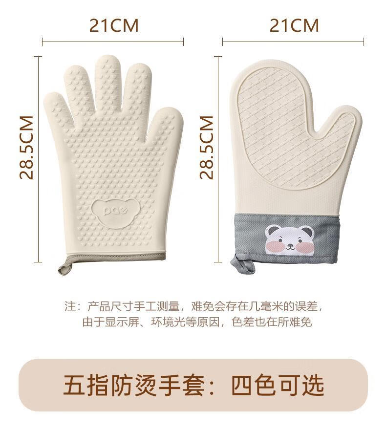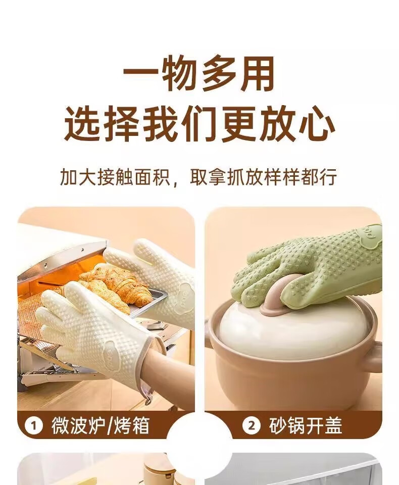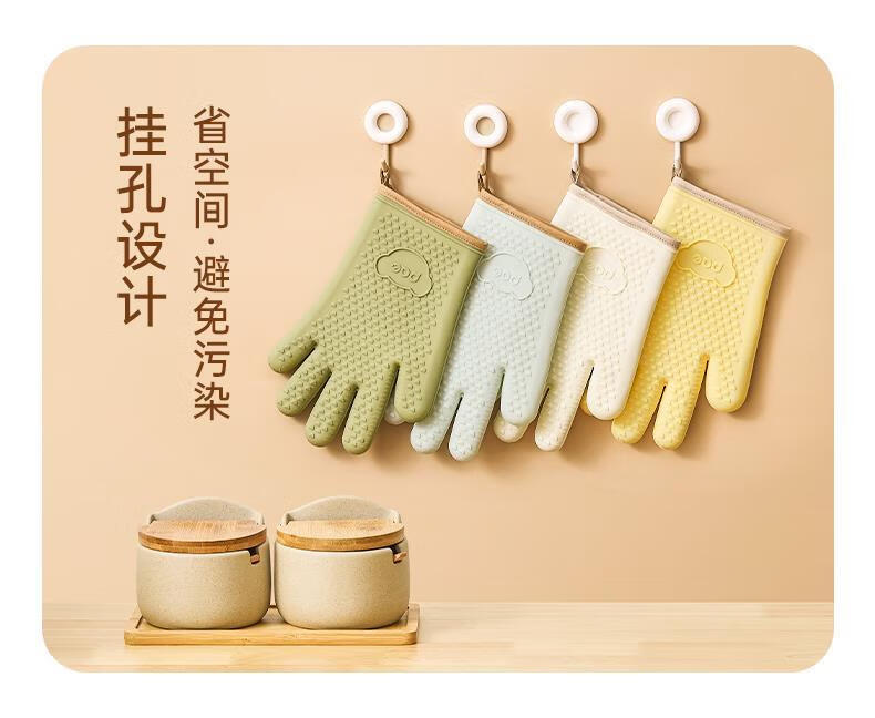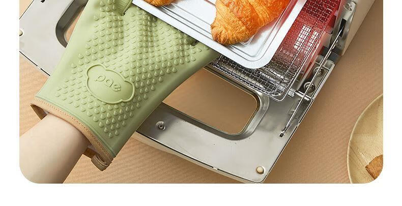 Jingxiao Misenhuo Anti-scalding Gloves Insulated and Thickened High-Temperature Resistant Silicone Kitchen Oven Special Non-Slip Anti-heat Microwave Oven Baking Gloves Five-layer Thickened Light Green Two-Finger Style Pair