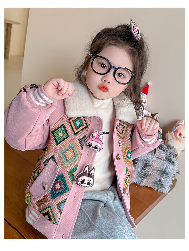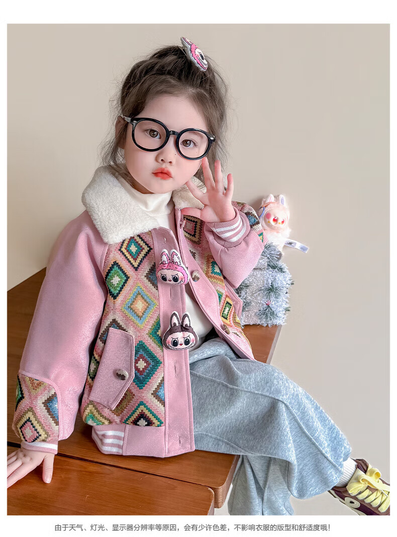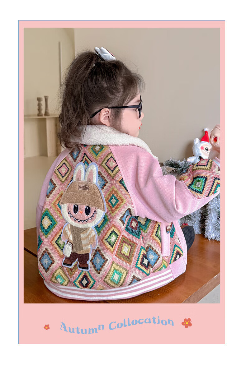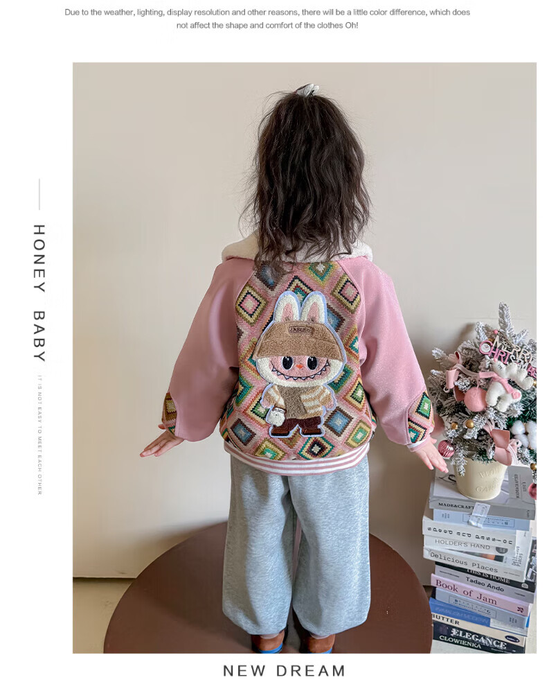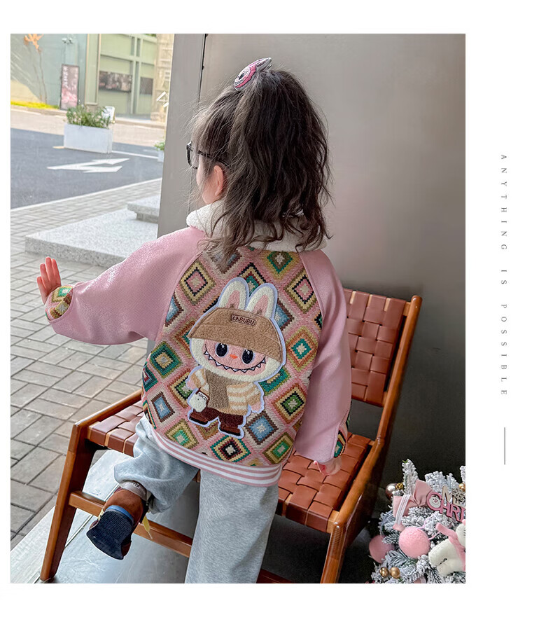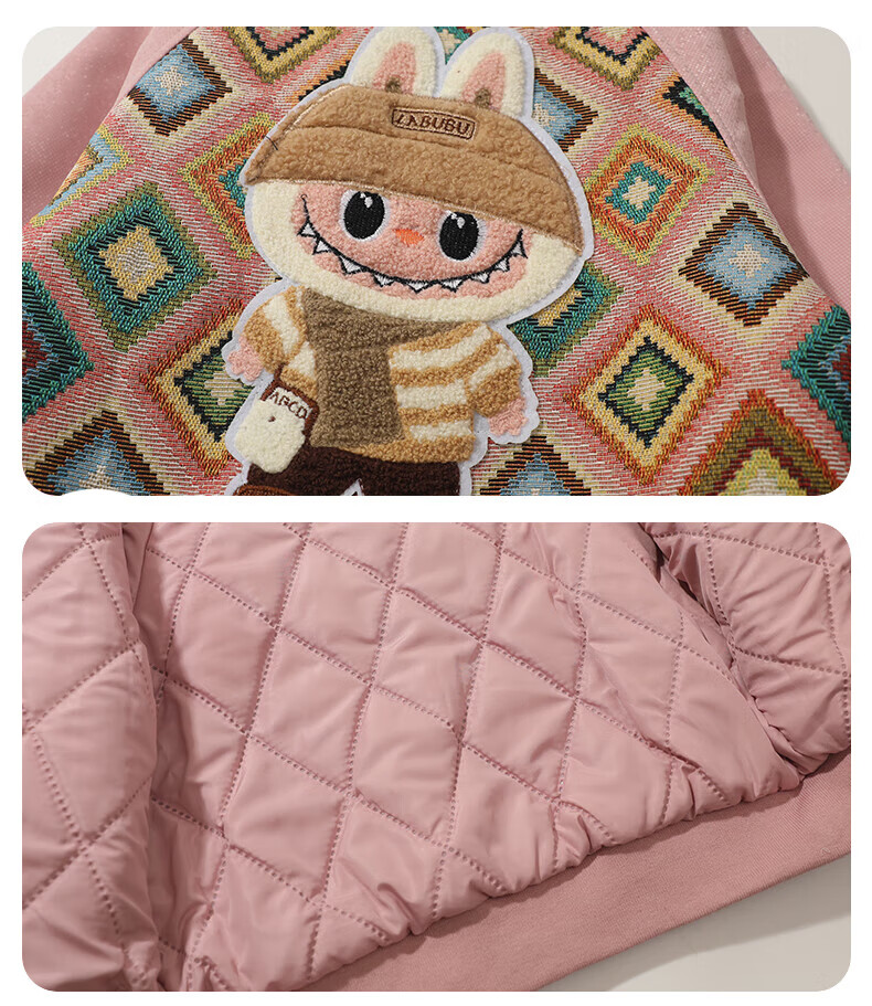 Burwilde International Brand Girls' Padded Jacket Autumn and Winter 2025 New Cartoon Children's Labu Padded Clothes for Street Girl Baby Pink Jacket Padded 120 cm