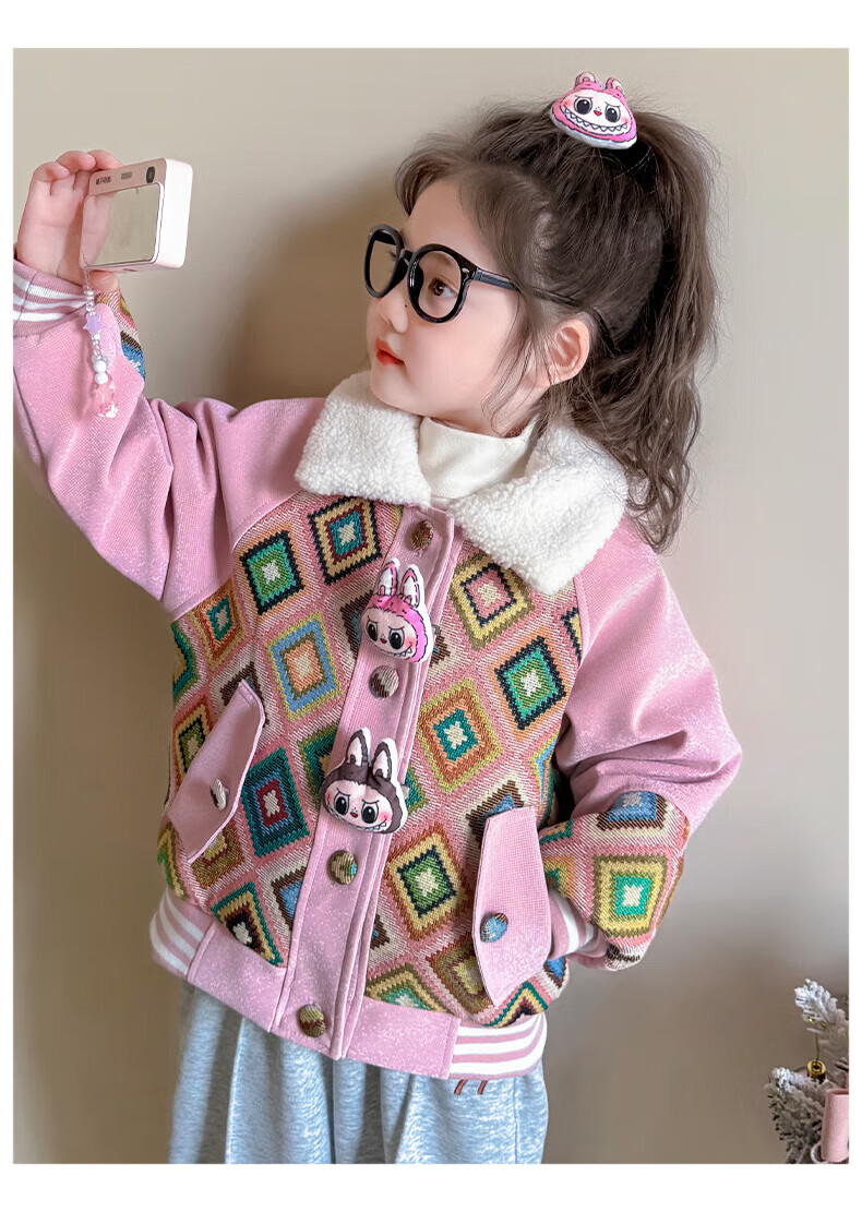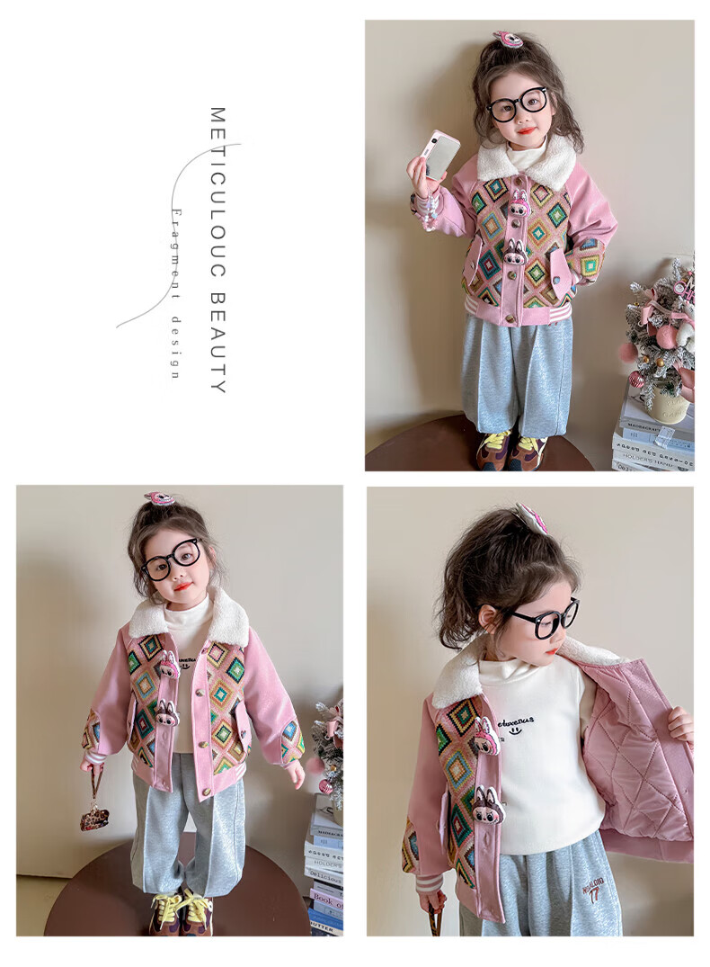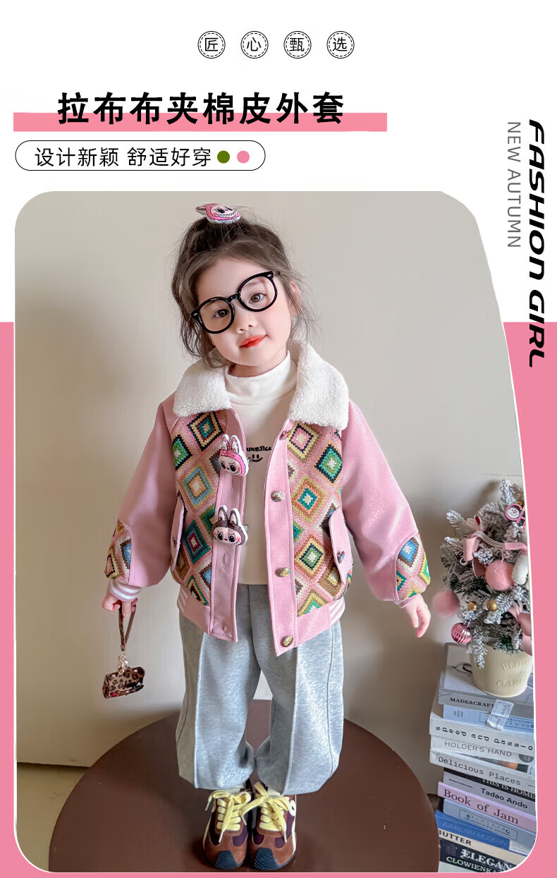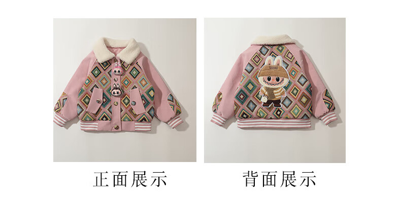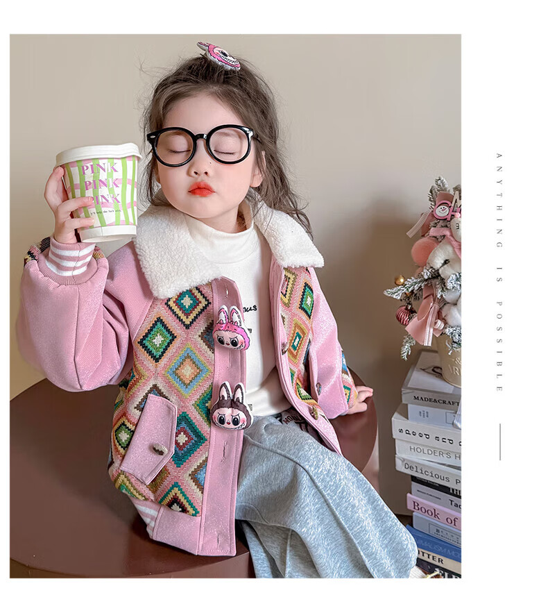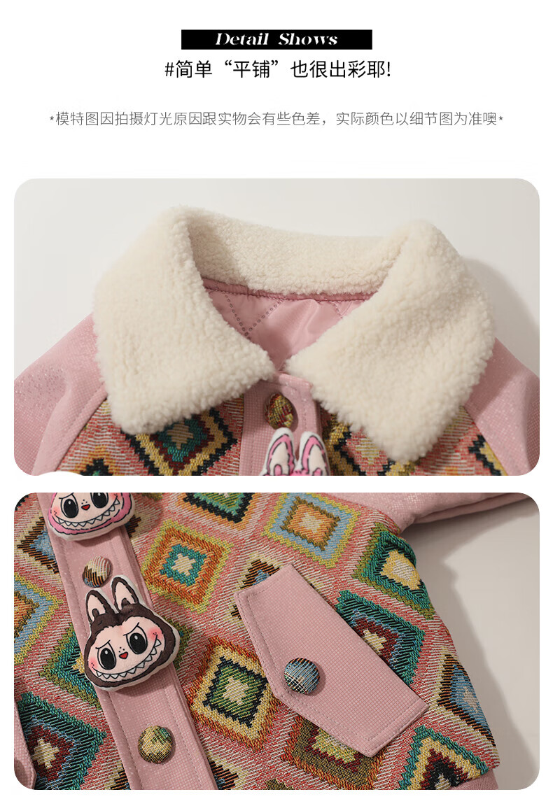 Burwilde International Brand Girls' Padded Jacket Autumn and Winter 2025 New Cartoon Children's Labu Padded Clothes for Street Girl Baby Pink Jacket Padded 120 cm