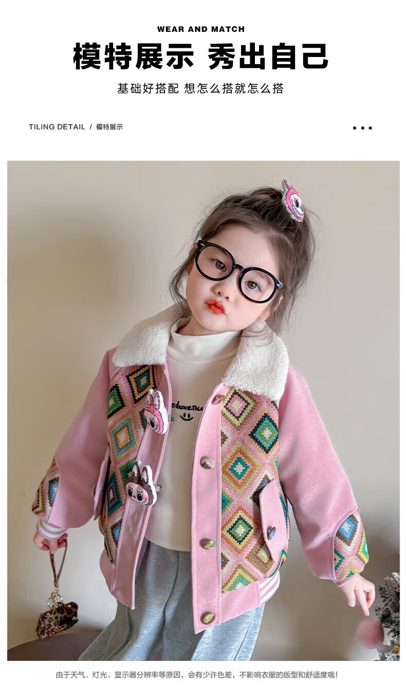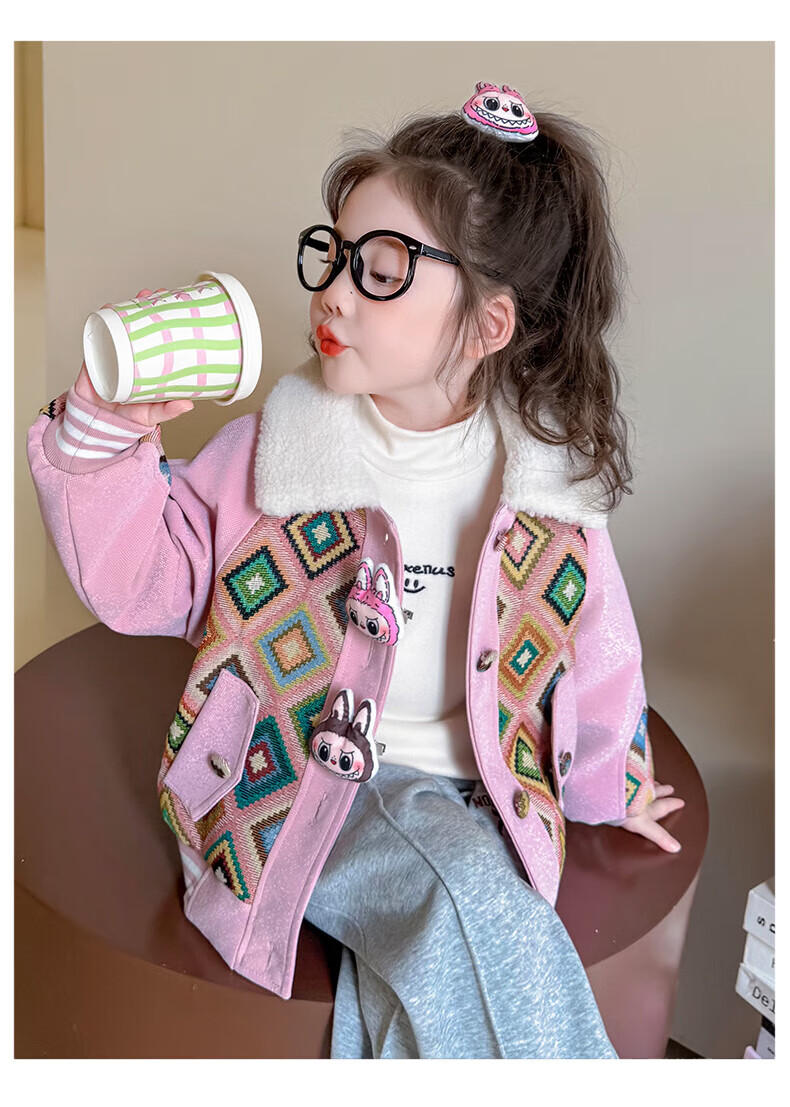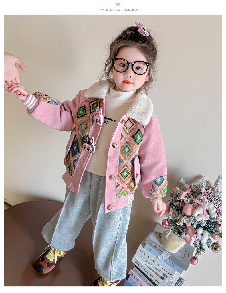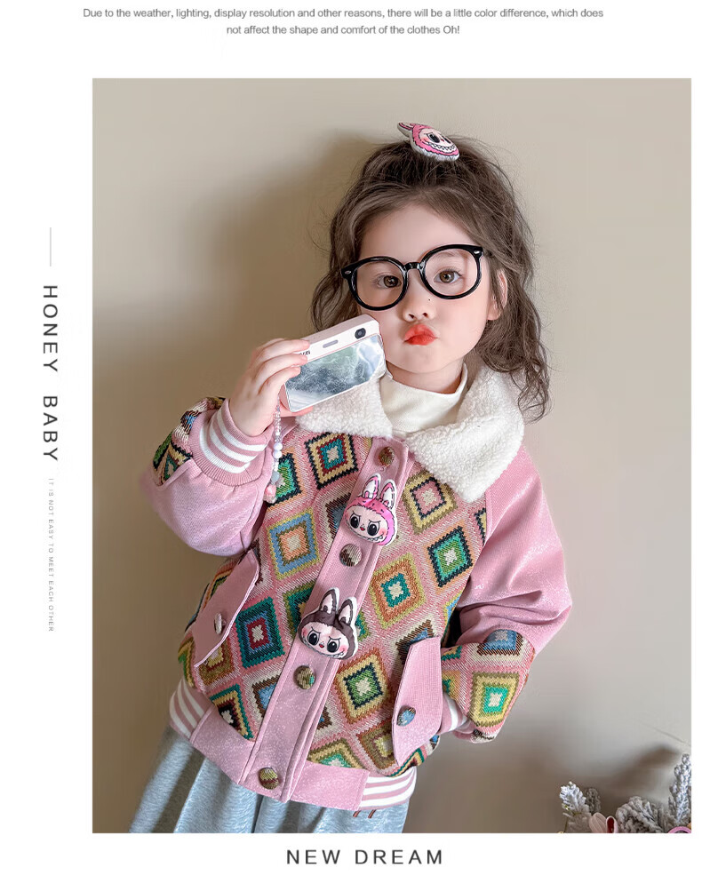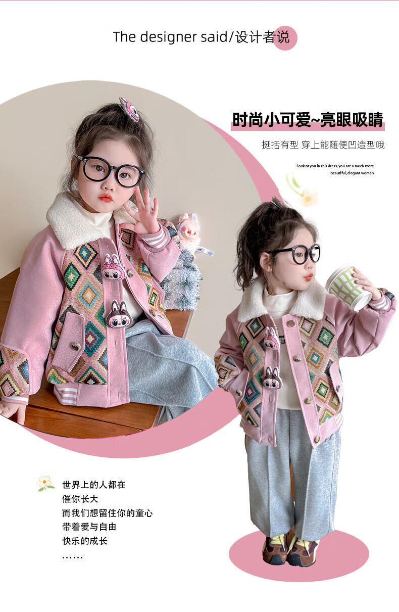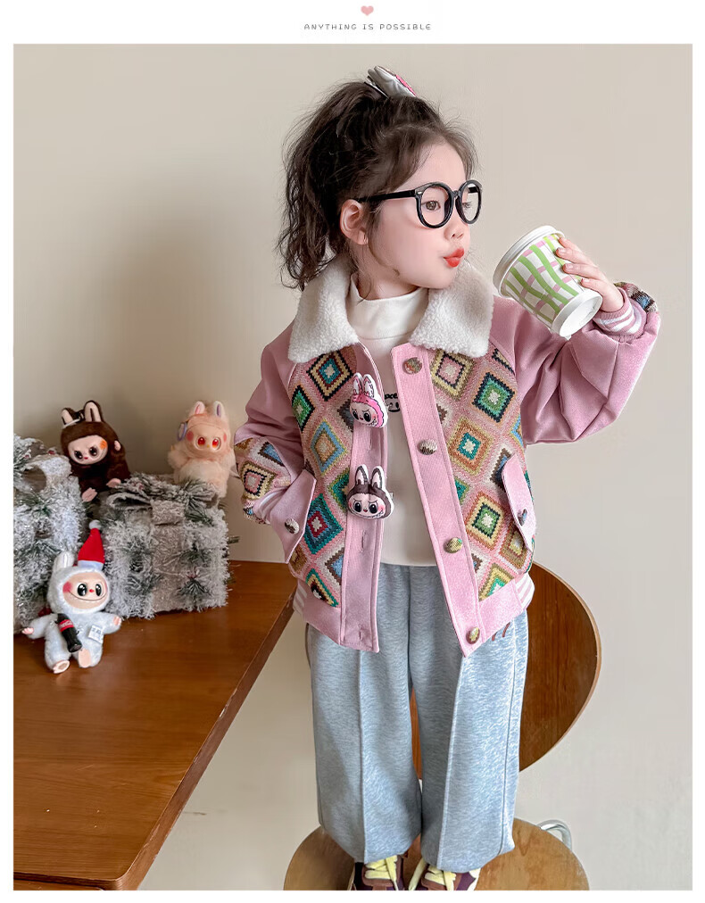 Burwilde International Brand Girls' Padded Jacket Autumn and Winter 2025 New Cartoon Children's Labu Padded Clothes for Street Girl Baby Pink Jacket Padded 120 cm