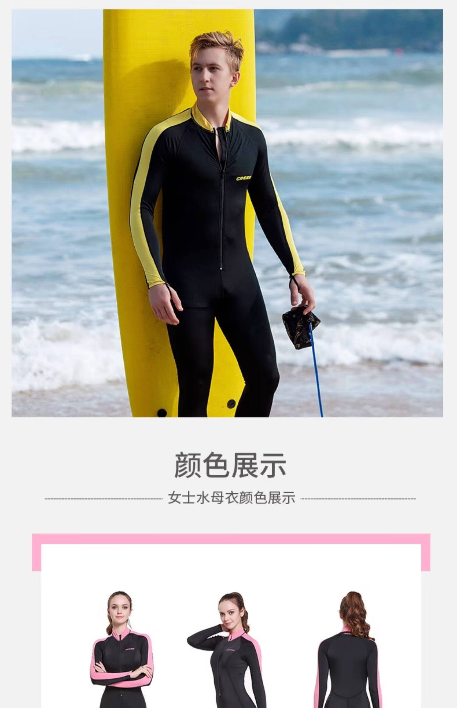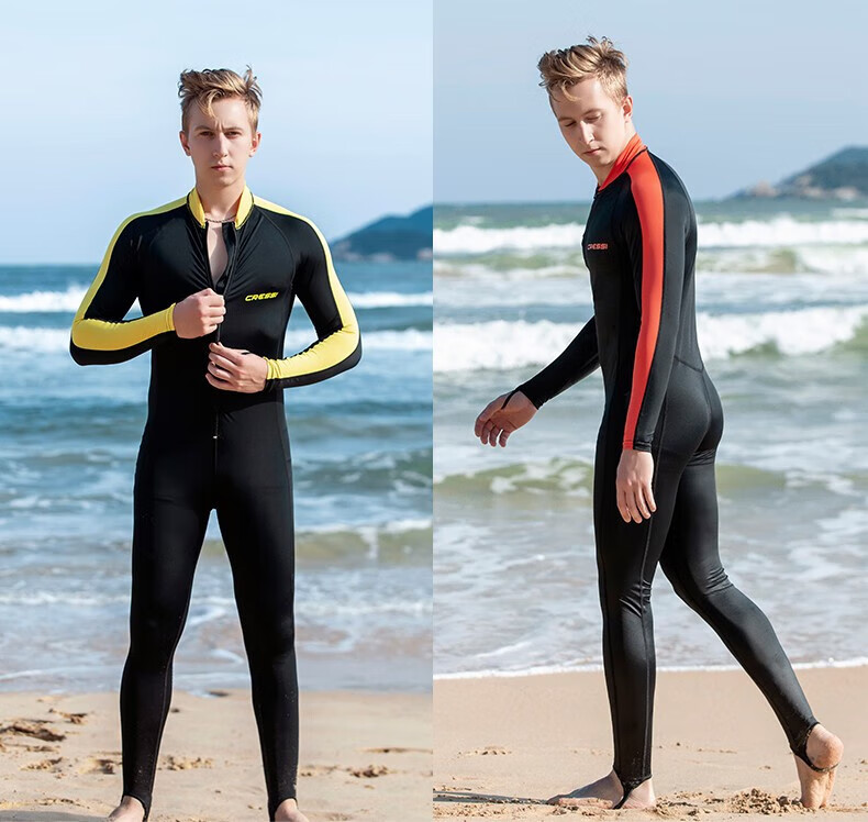 Ke Yuesi diving suit women's one-piece snorkeling swimsuit men's wet sun protection long-sleeved jellyfish clothing children's yellow black men's model-adult model one size S