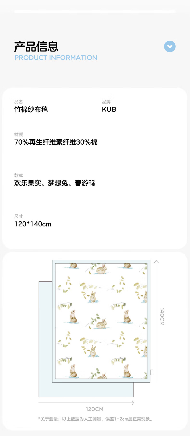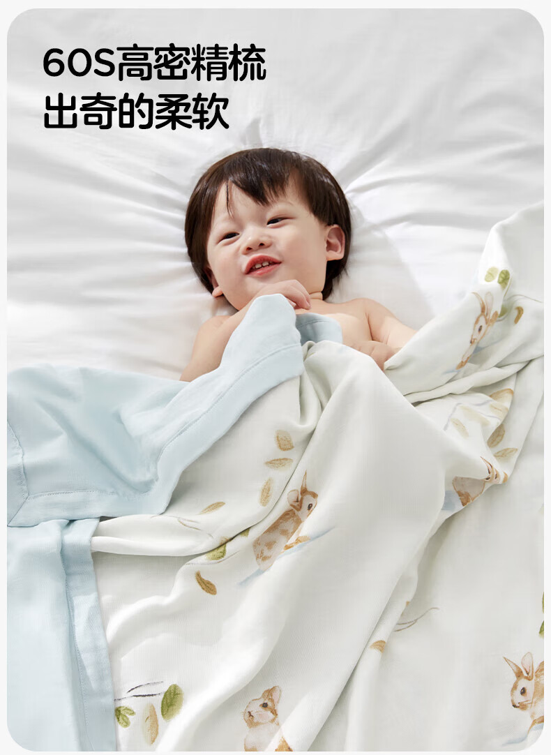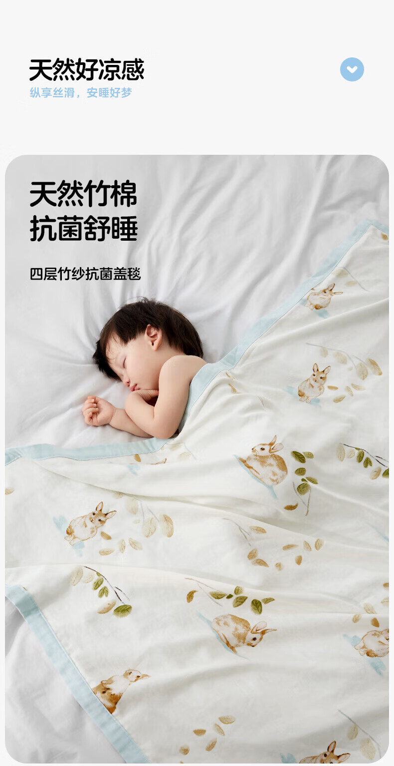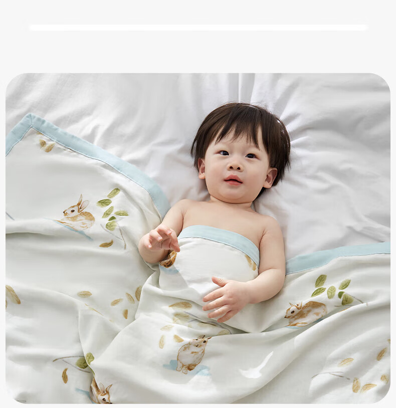 KUB baby gauze blanket bamboo cotton blanket baby air conditioning quilt summer cooling quilt ice silk blanket children's blanket towel Dream Rabbit 7A four layers large size 12014
