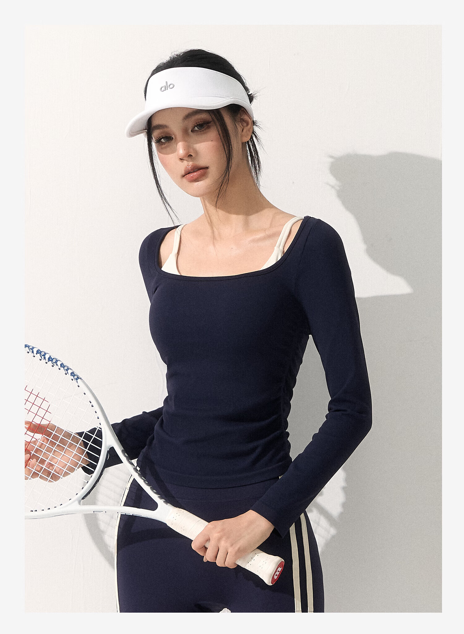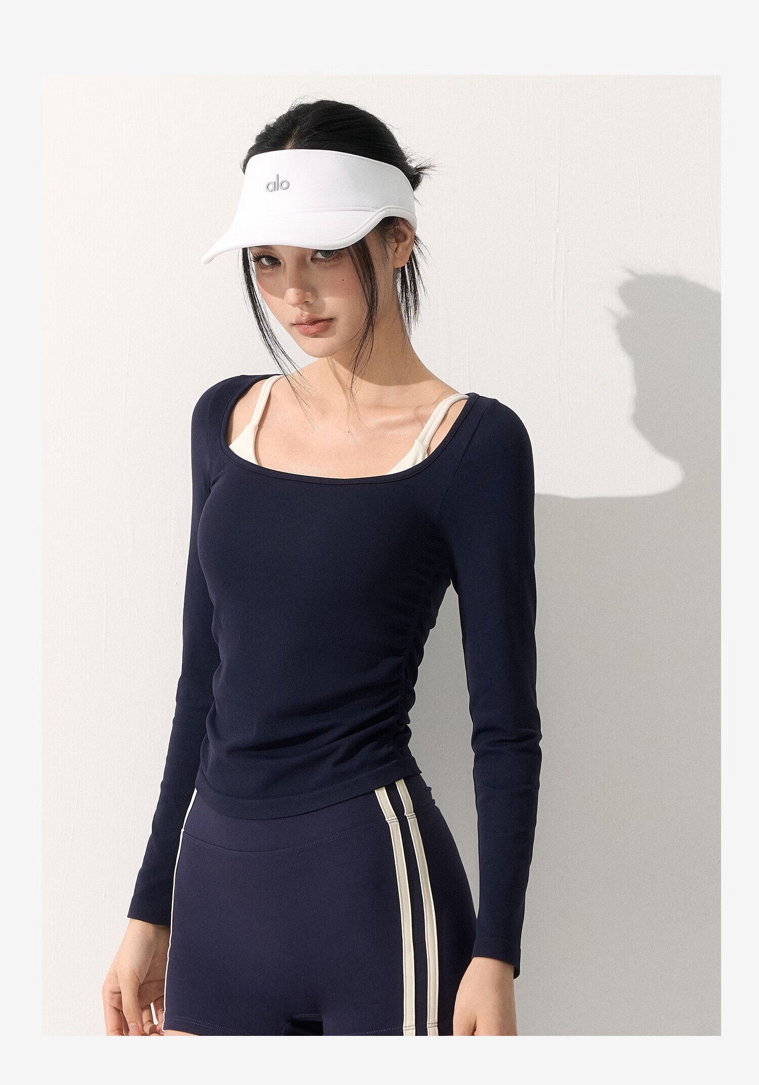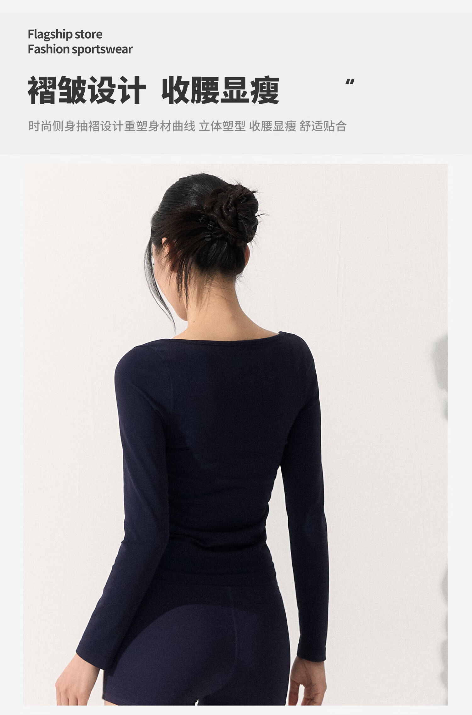 LULULOMDDW yoga wear women's Pilates training fitness slim running fitness long-sleeved T-shirt navy S
