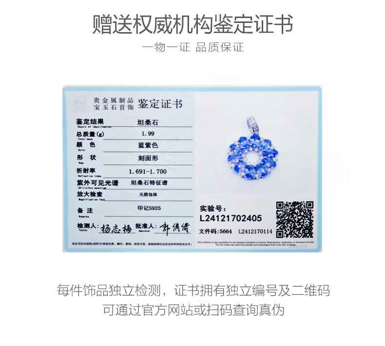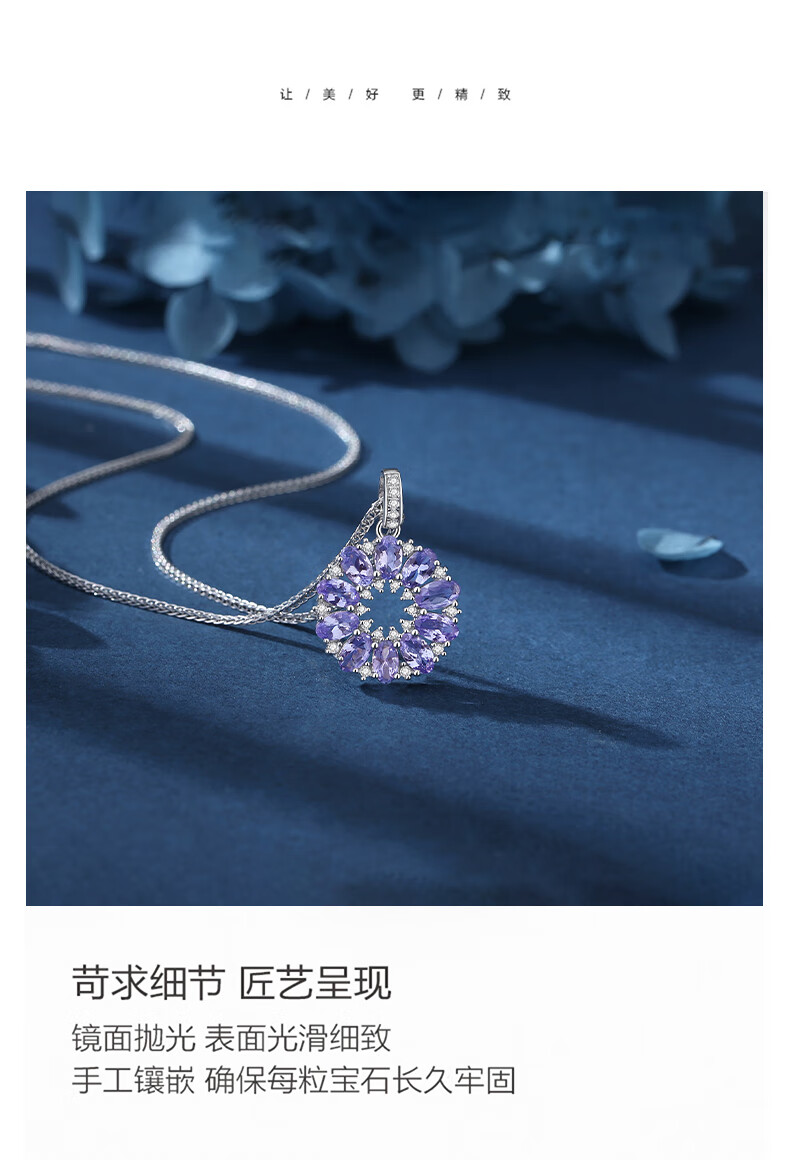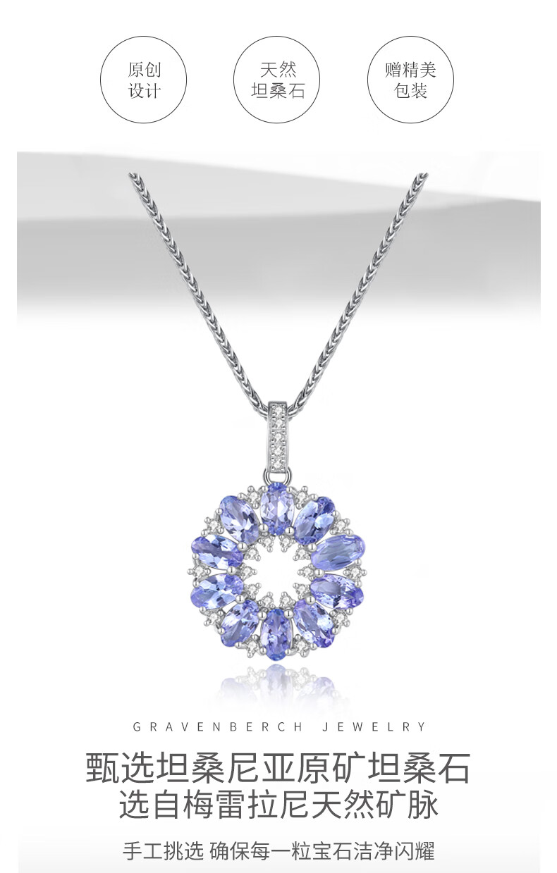 Qianpei Tanzanite Necklace Heart of the Ocean Female Clavicle Chain Colored Treasure Pendant 2 Carat Tanzanite Star Wheel SF Airlines 2 Carat Natural Tanzanite Star Wheel SF Airlines Certificate + Engraving