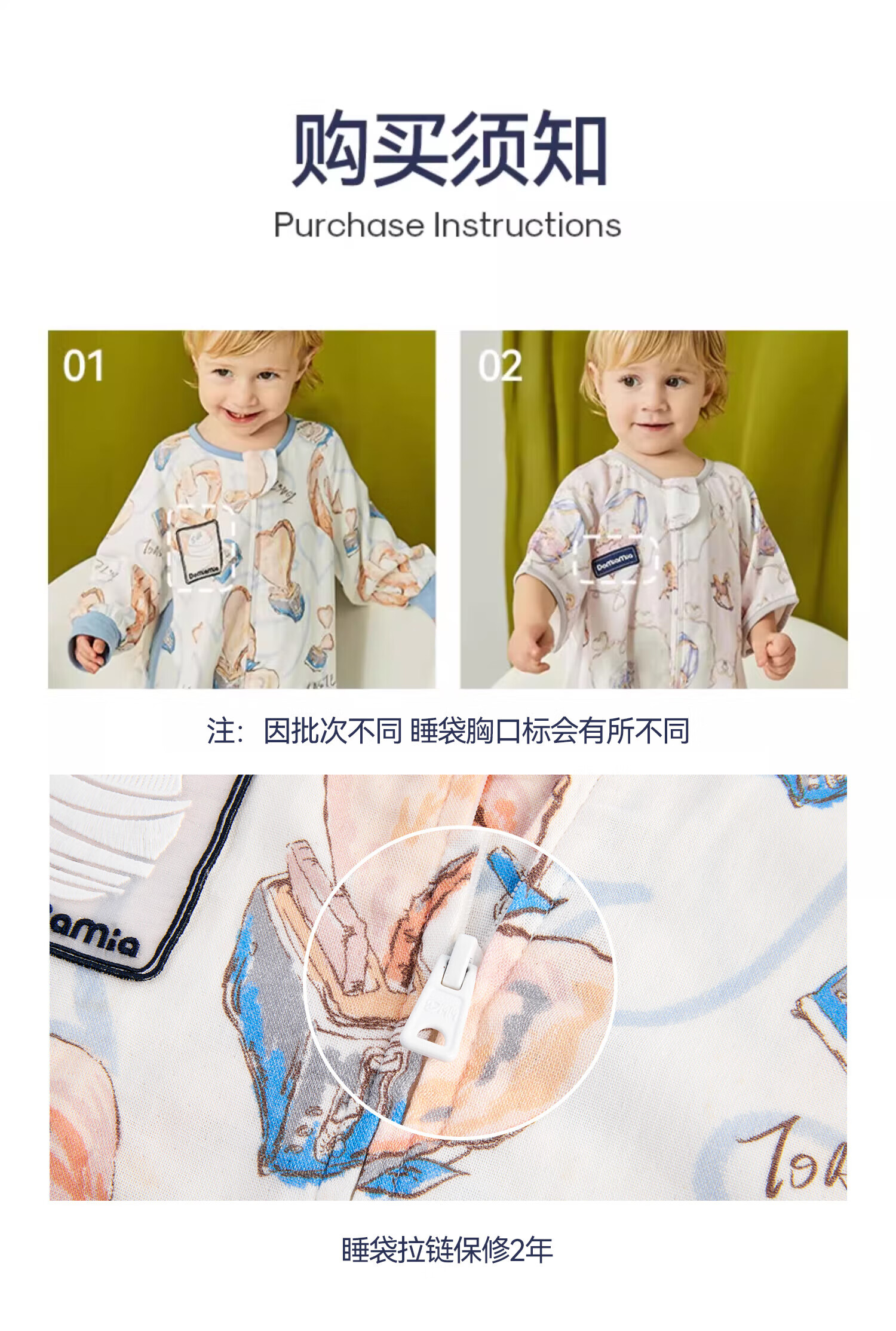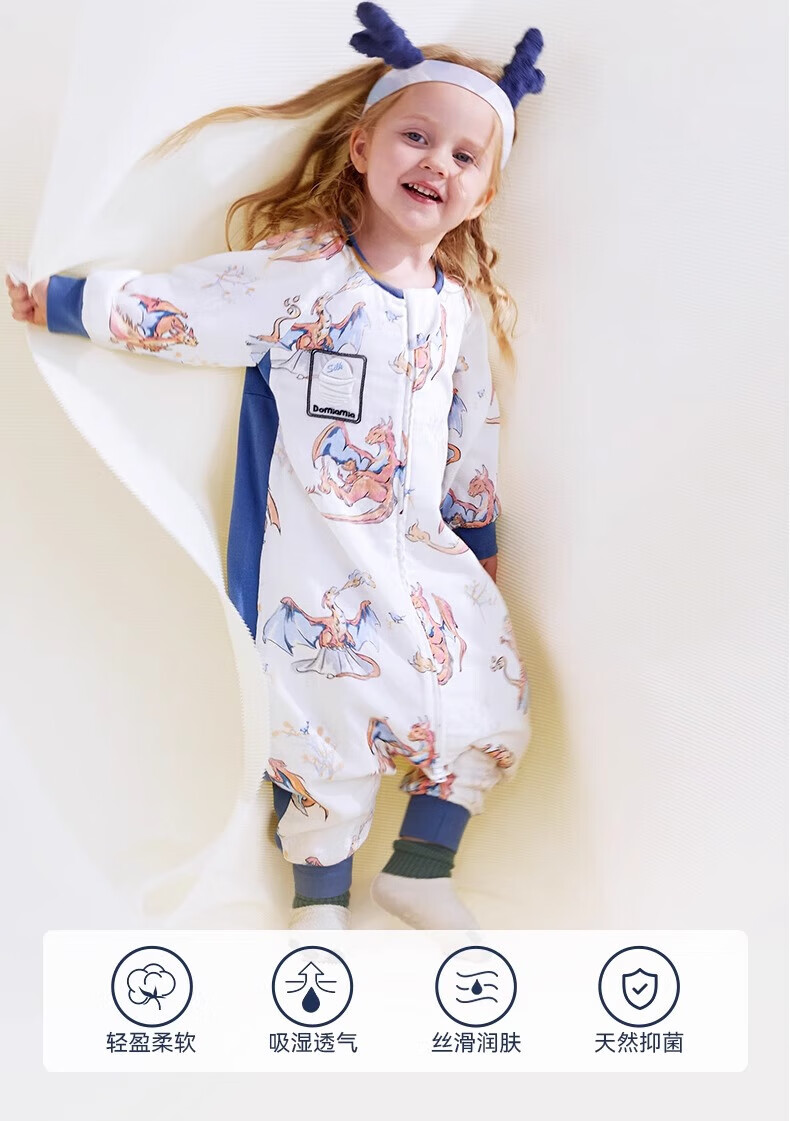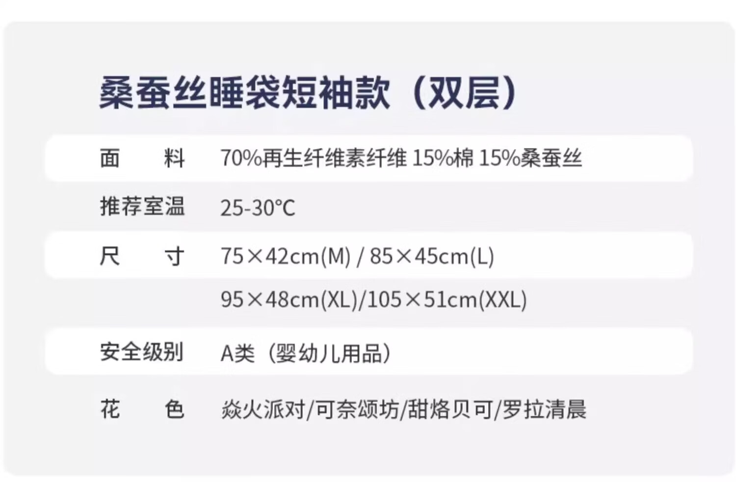 DOMIAMIA mulberry silk sleeping bag baby split-leg children's pajamas baby anti-kick quilt breathable moisture absorption antibacterial double-layer short-sleeved-Kanai Songfang L size (recommended height 90-105cm)