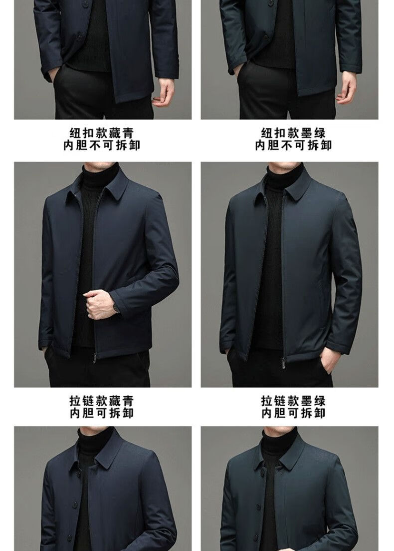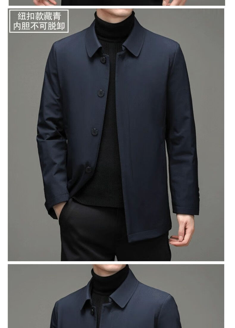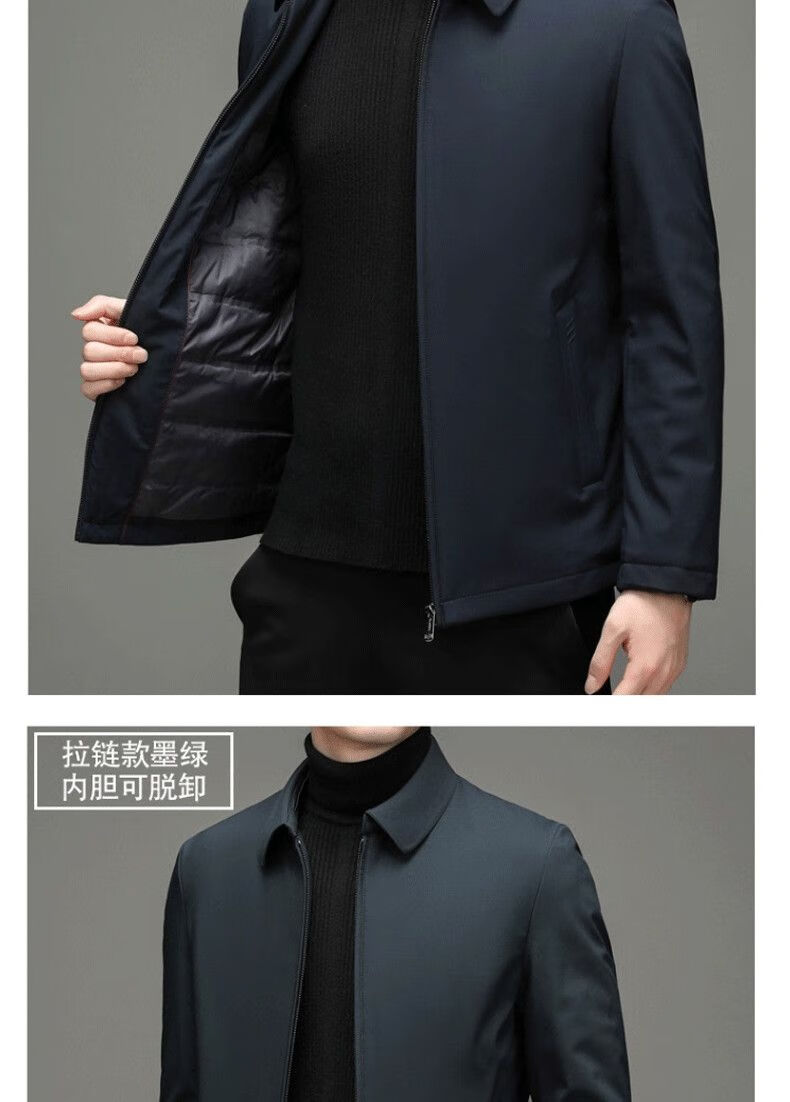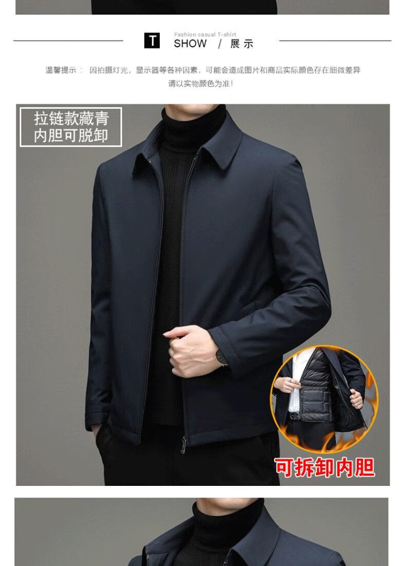 Playboy Hong Kong brand down jacket jacket for middle-aged and elderly men, loose coat, white duck down, removable inner liner for men, zipper style, navy blue, inner liner not removable, BF35 M 170 Recommended 100-120 Jin Jin equals 0.5 kg