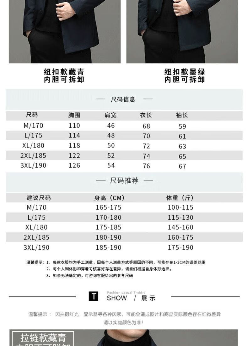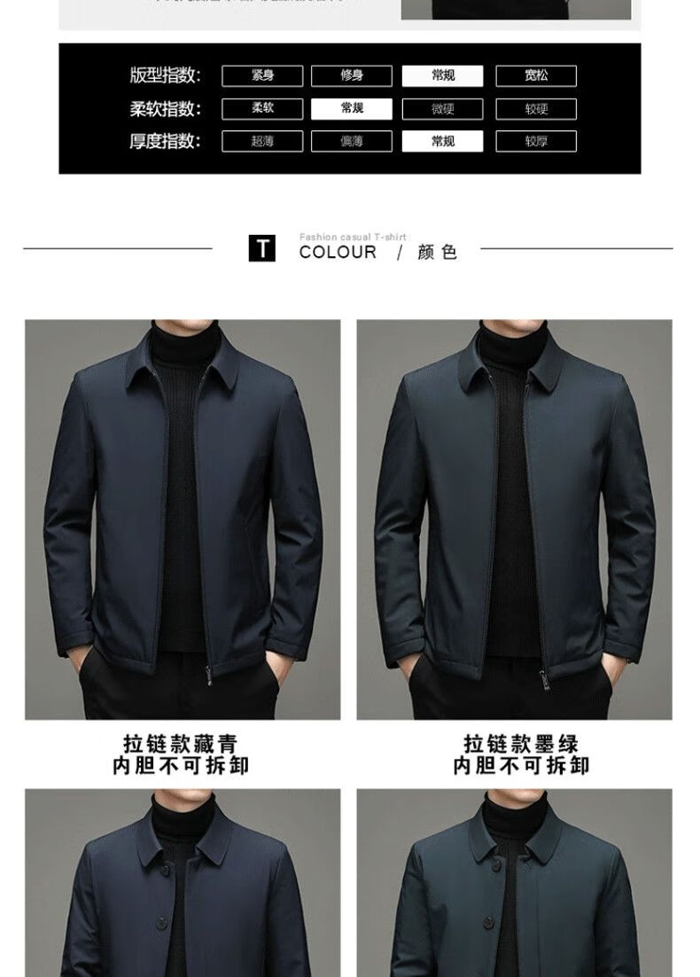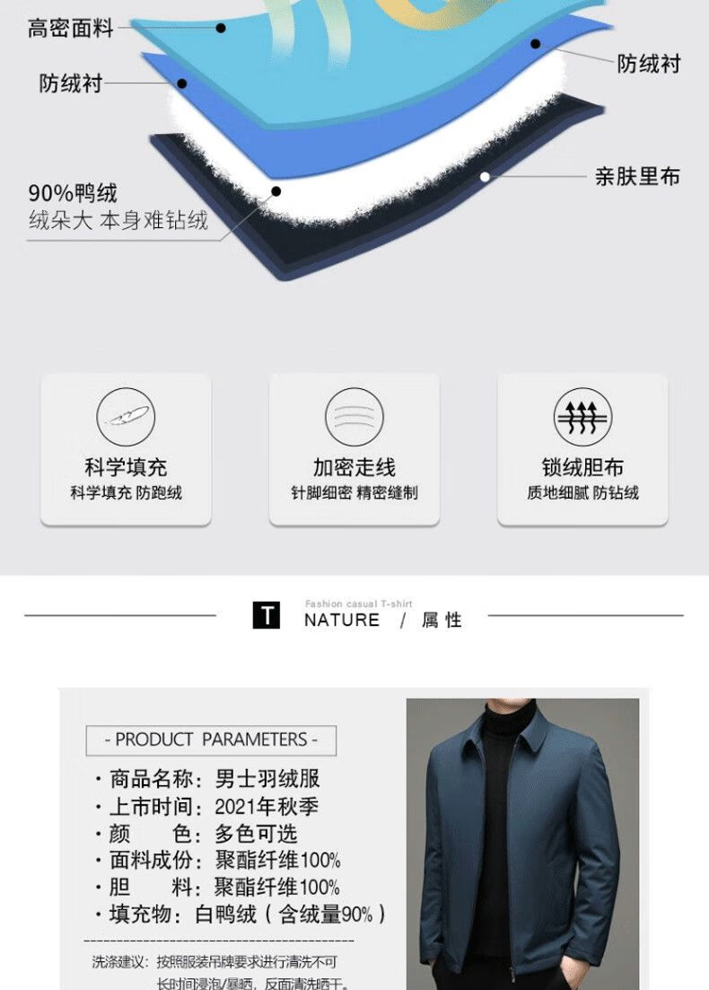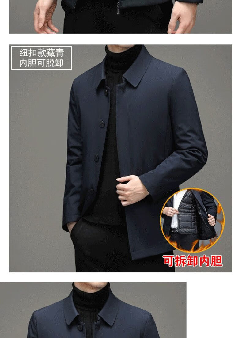 Playboy Hong Kong brand down jacket jacket for middle-aged and elderly men, loose coat, white duck down, removable inner liner for men, zipper style, navy blue, inner liner not removable, BF35 M 170 Recommended 100-120 Jin Jin equals 0.5 kg