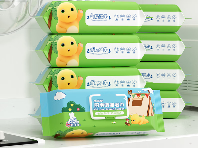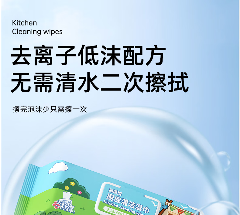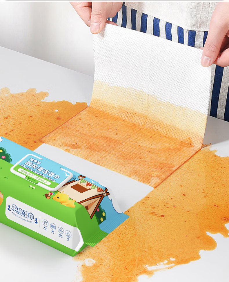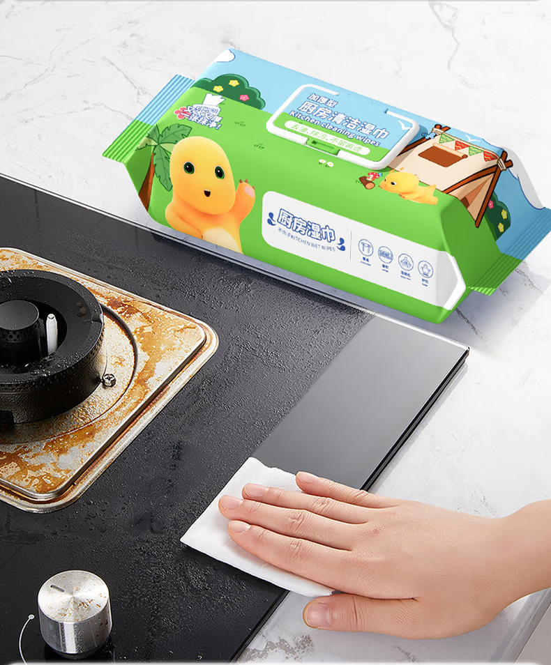 Milkon kitchen wipes, powerful degreasing special kitchen cleaning oil wipes, enlarged and thickened, family pack, 1 layer, 60 pumps*1 pack, trial pack