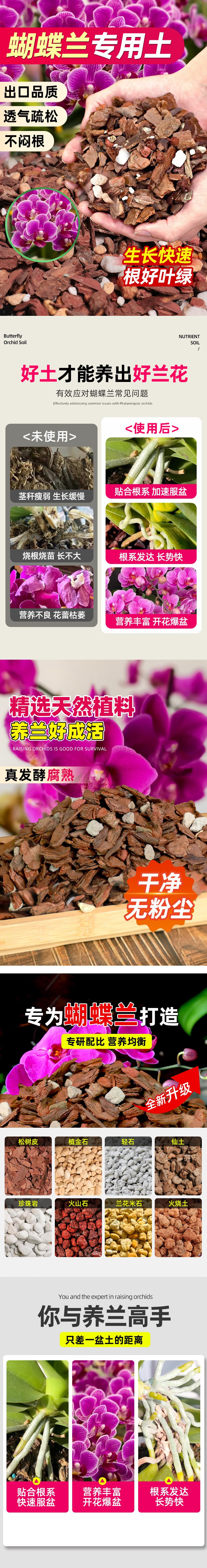 Special nutritious soil for Phalaenopsis orchids, bark planting material, orchid compound fertilizer, household flower cultivation soil, deluxe version, special soil for Phalaenopsis orchids 8 liters, three free gifts