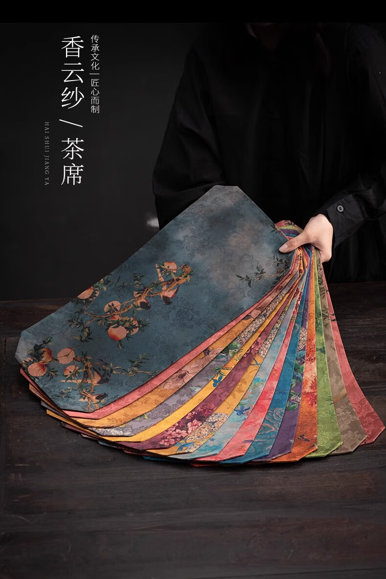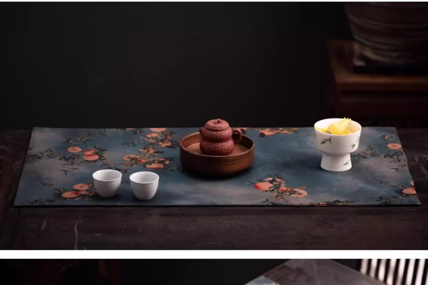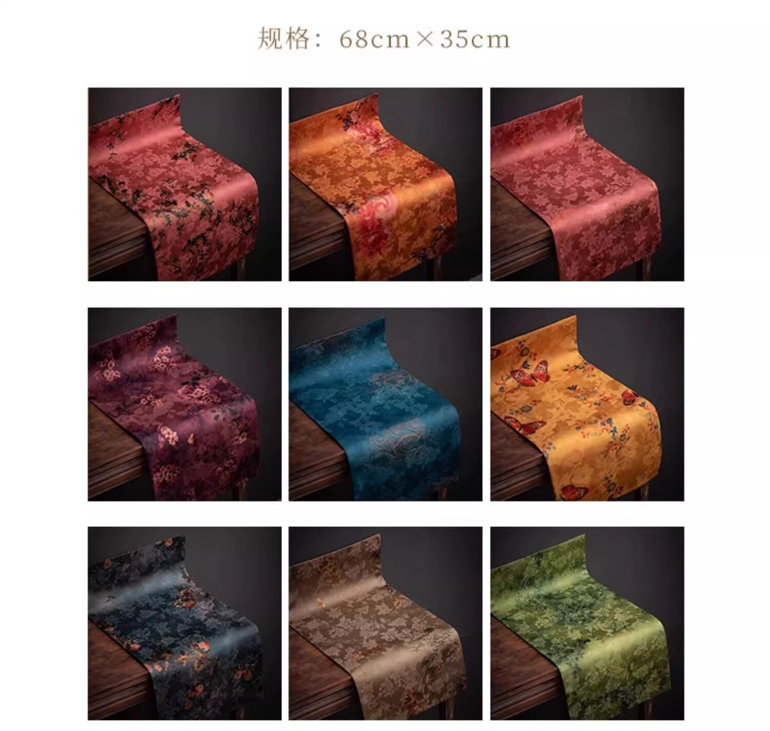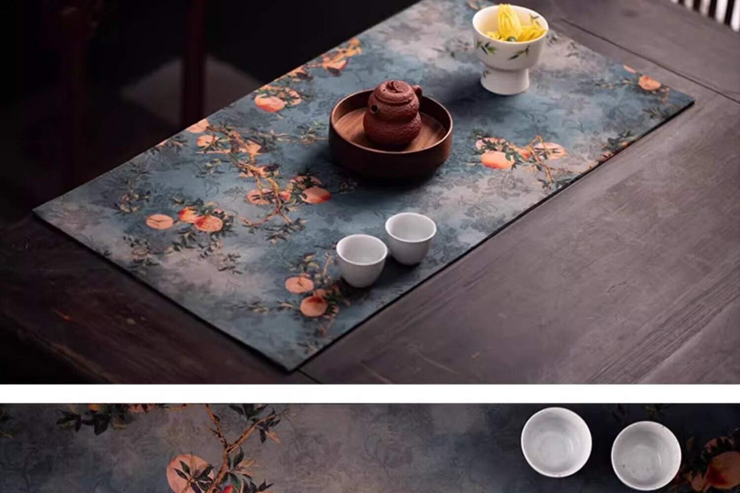 Porcelain Charm High-end Xiangyun yarn waterproof tea towel tea mat tablecloth Zen retro rectangular table flag dry foam cushion flat peach - dark blue about 50*22cm