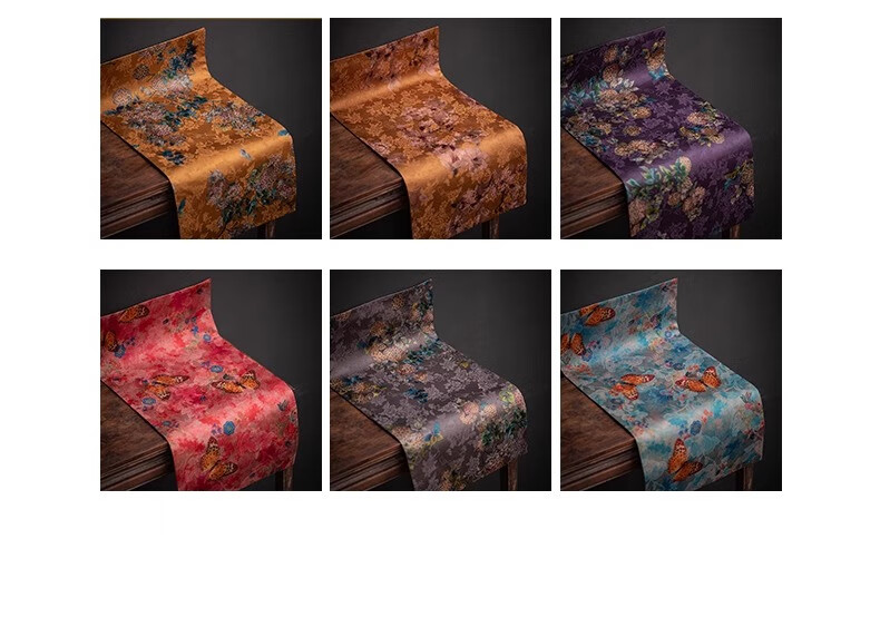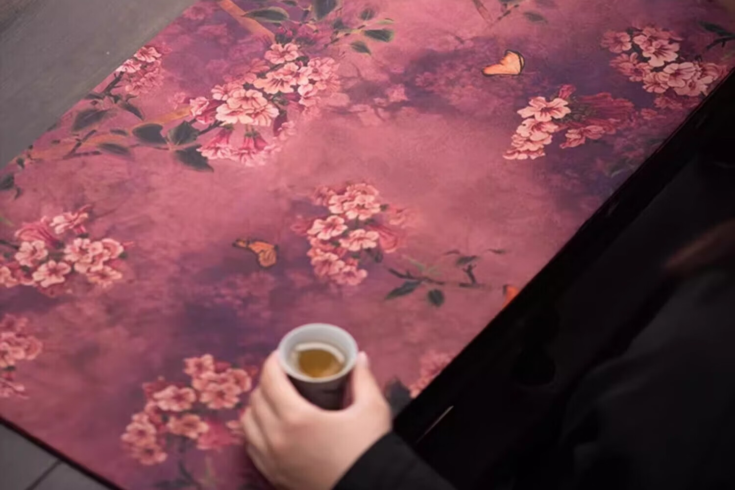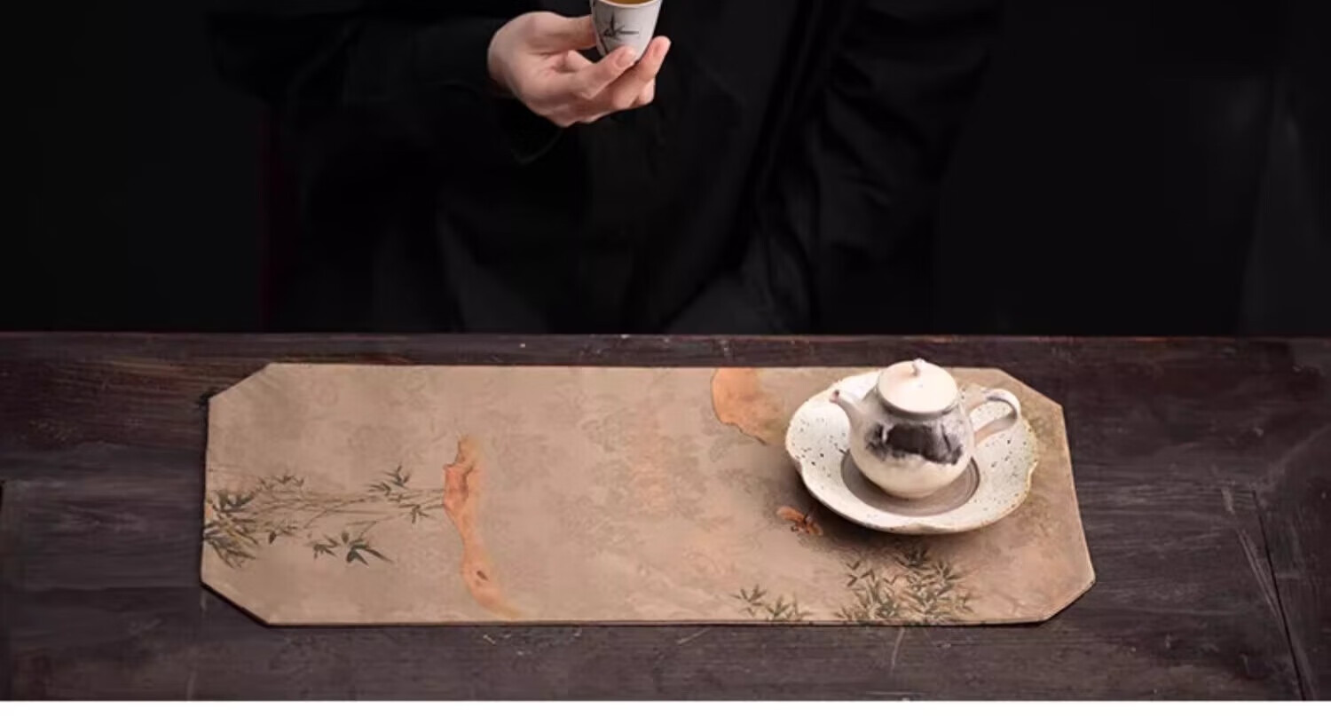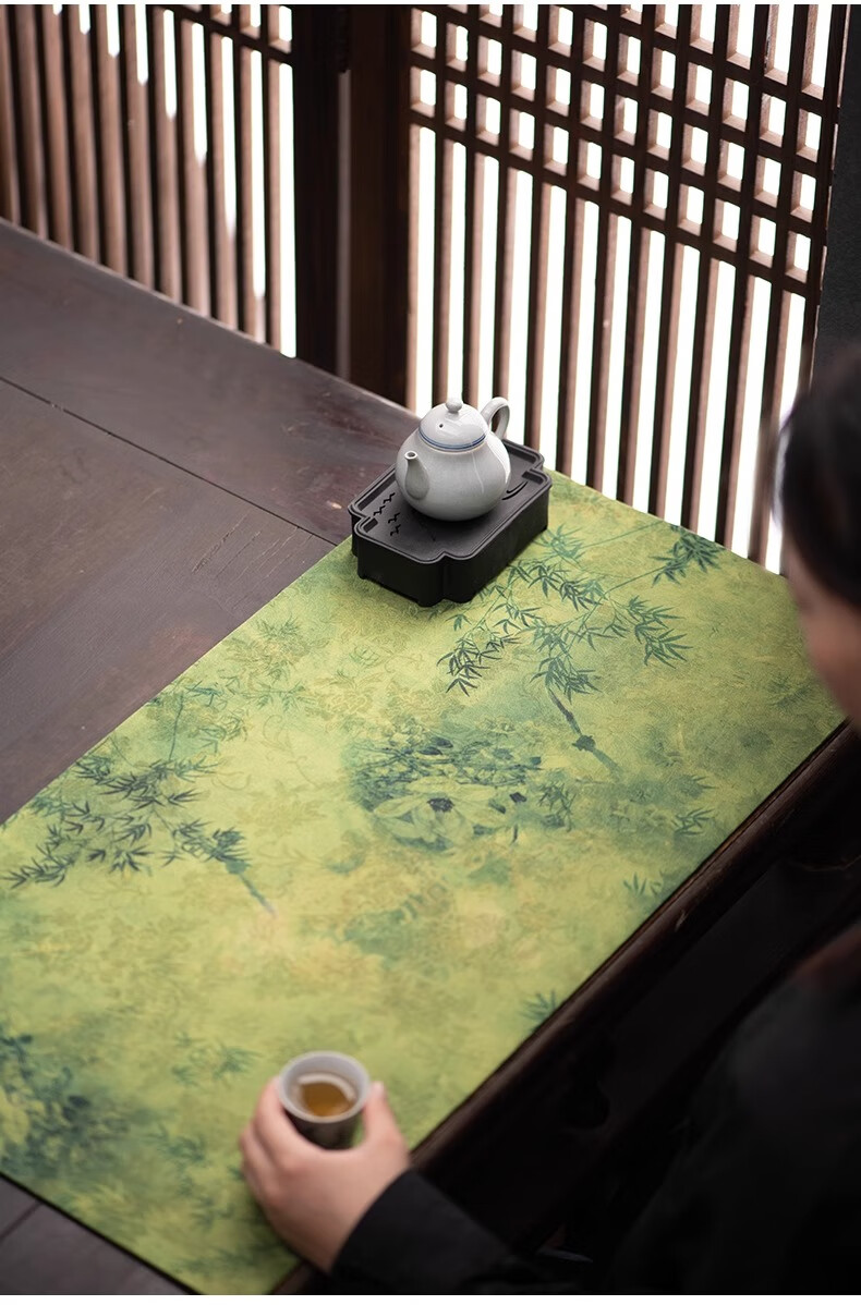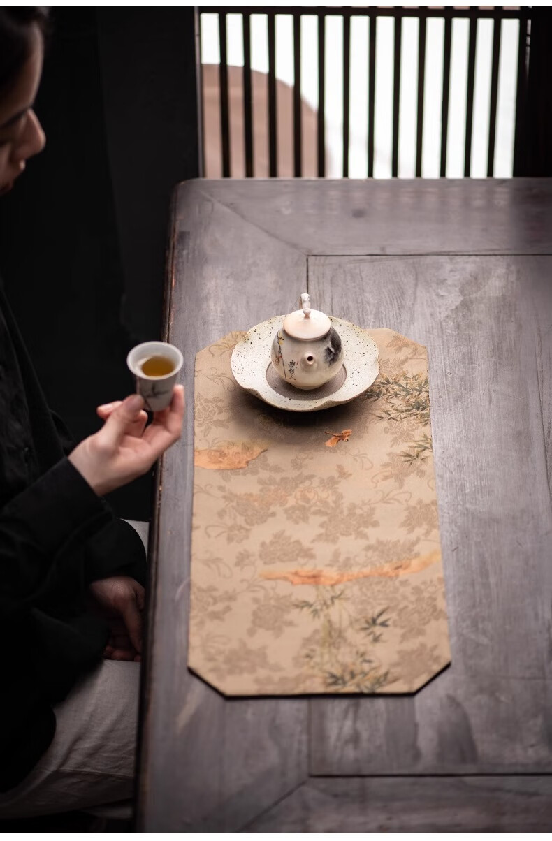 Porcelain Charm High-end Xiangyun yarn waterproof tea towel tea mat tablecloth Zen retro rectangular table flag dry foam cushion flat peach - dark blue about 50*22cm