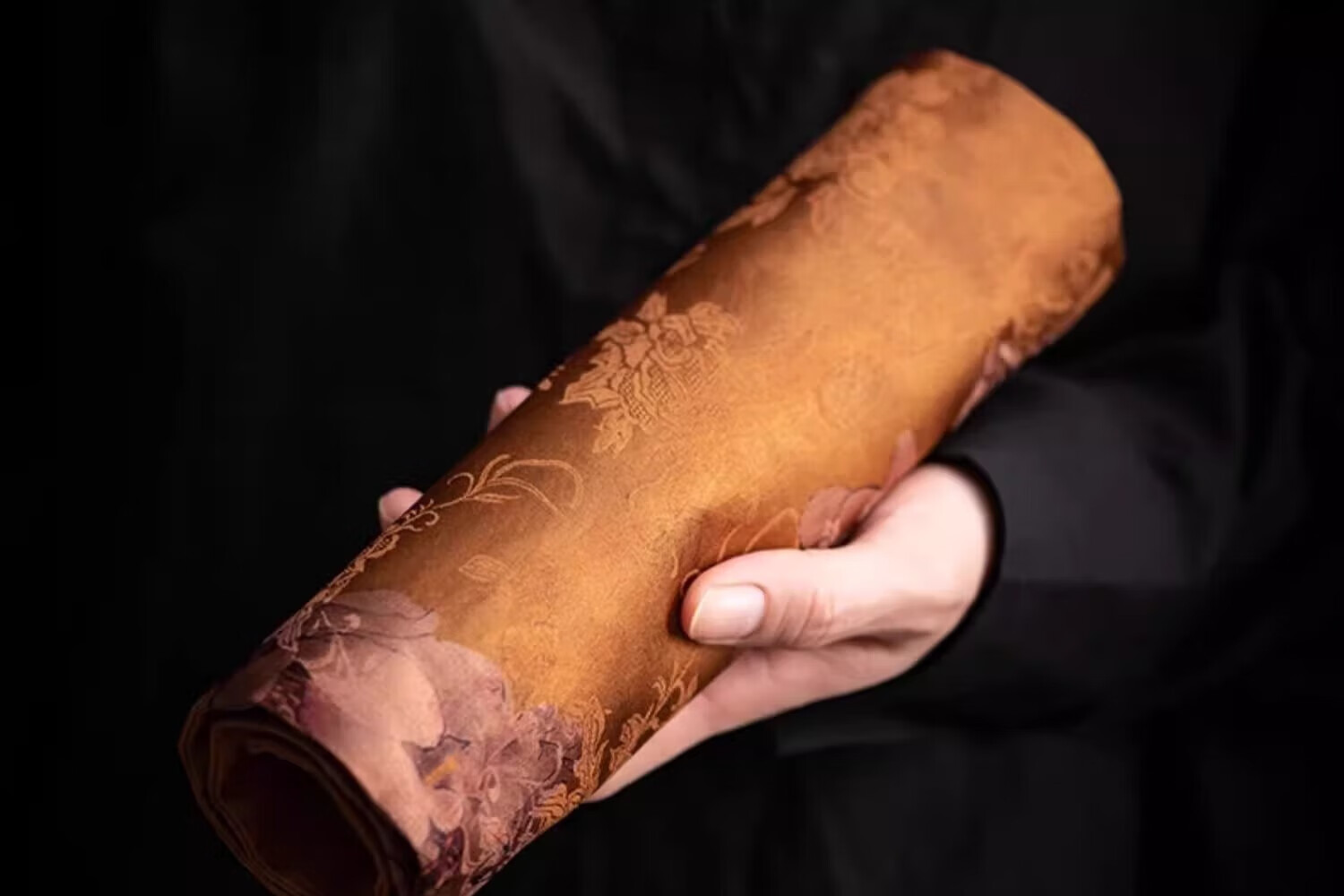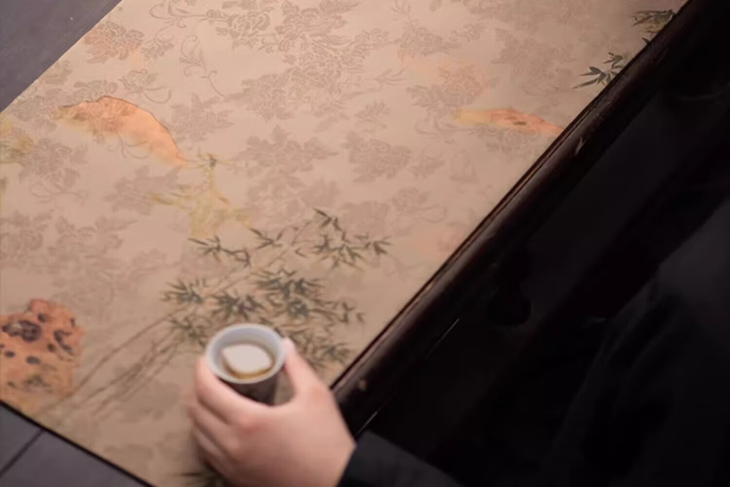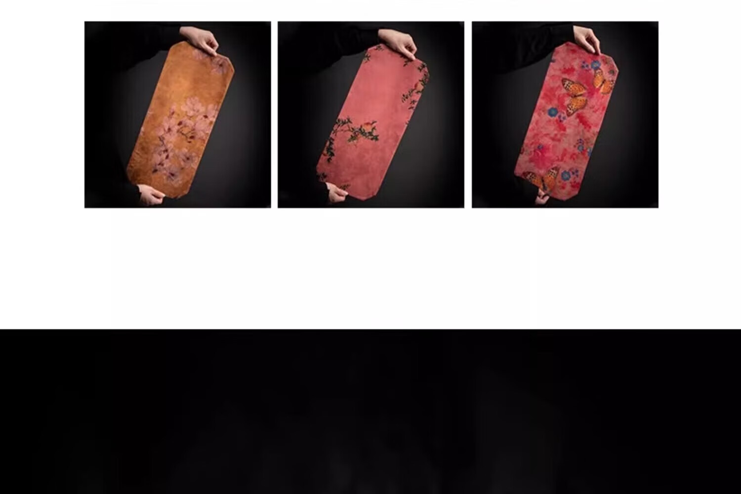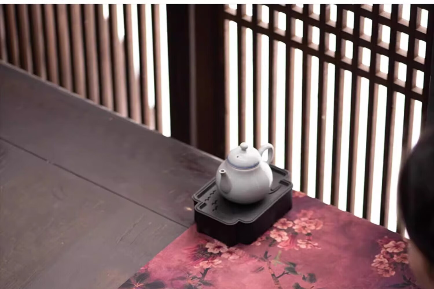 Porcelain Charm High-end Xiangyun yarn waterproof tea towel tea mat tablecloth Zen retro rectangular table flag dry foam cushion flat peach - dark blue about 50*22cm