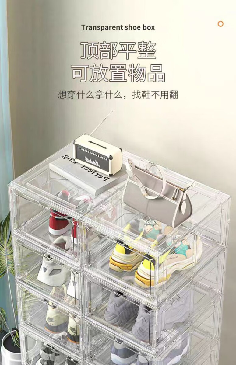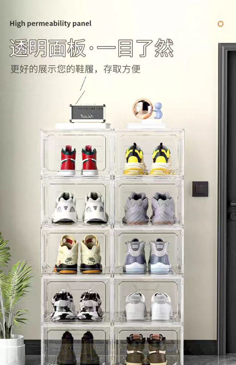 Fantasy transparent shoe storage box shoe box acrylic hard plastic shoe cabinet artifact shoe door shoe rack can be multi-layered extra large thick transparent 2 pieces 48 yards can be loaded / environmentally friendly and no odor 34.8x27x18.5cm