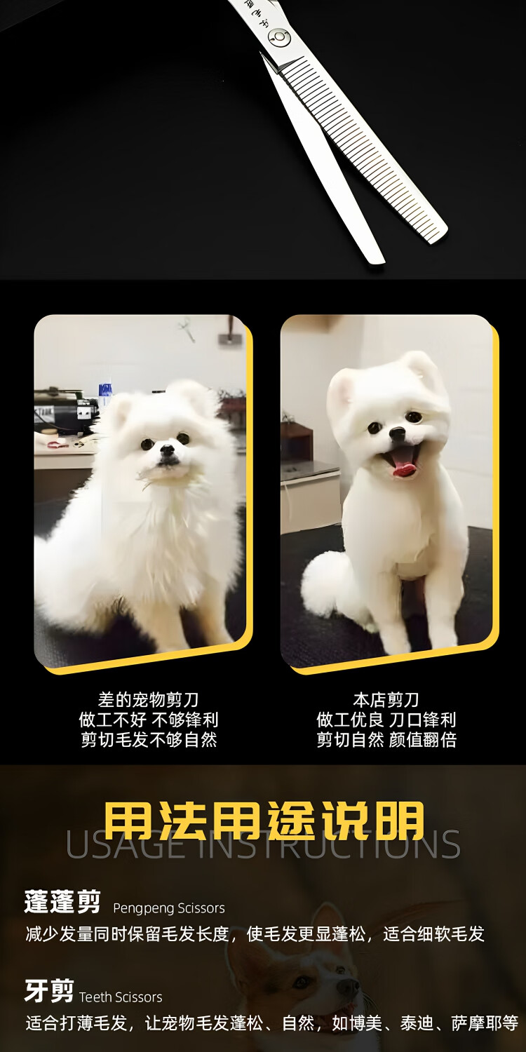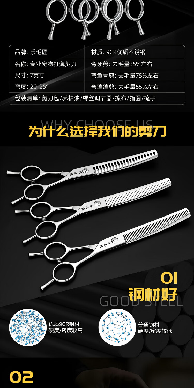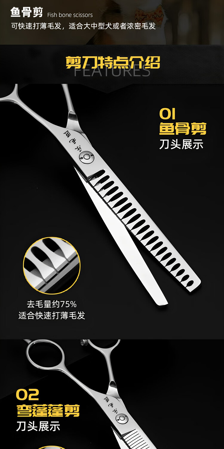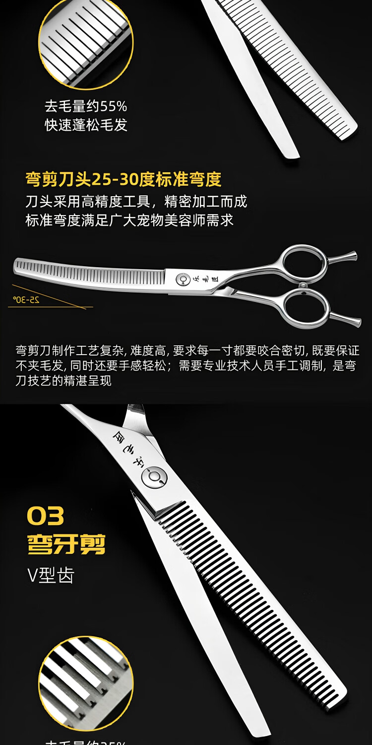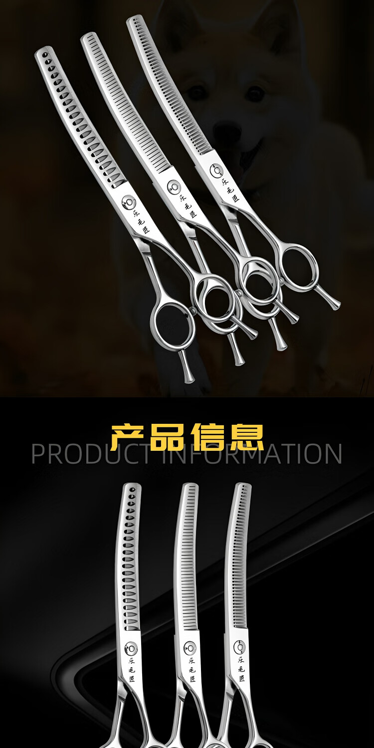 Le Maojiang open-shaped curved fishbone pet grooming shears 7-inch fine trimming and thinning curved tooth scissors curved fluffy scissors 7-inch curved natural + 7-inch curved tooth scissors - imported special grade steel