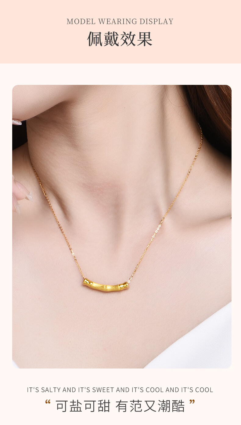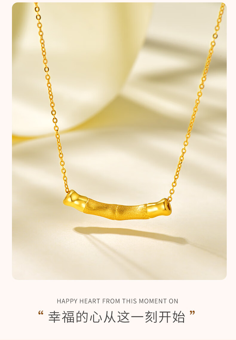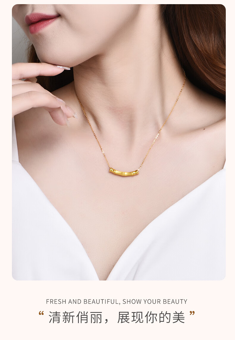 Gold and silver gold bamboo pendant, 999 pure gold through-hole necklace pendant, birthday gift for girlfriend, bamboo smile pendant (single pendant, if the weight exceeds the weight, please refund the less), about 0.75g