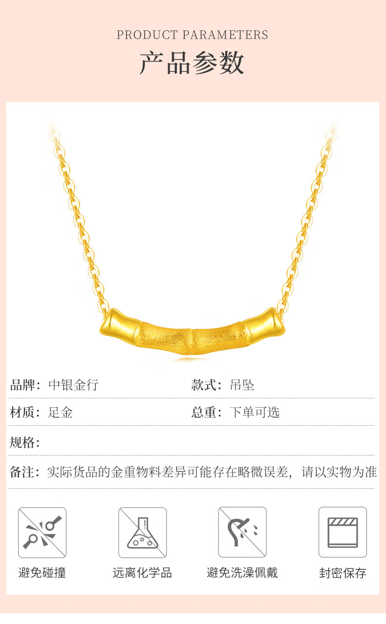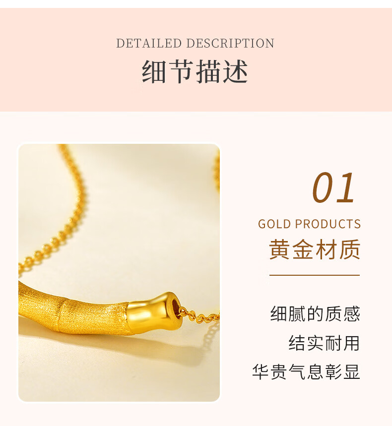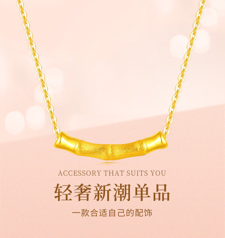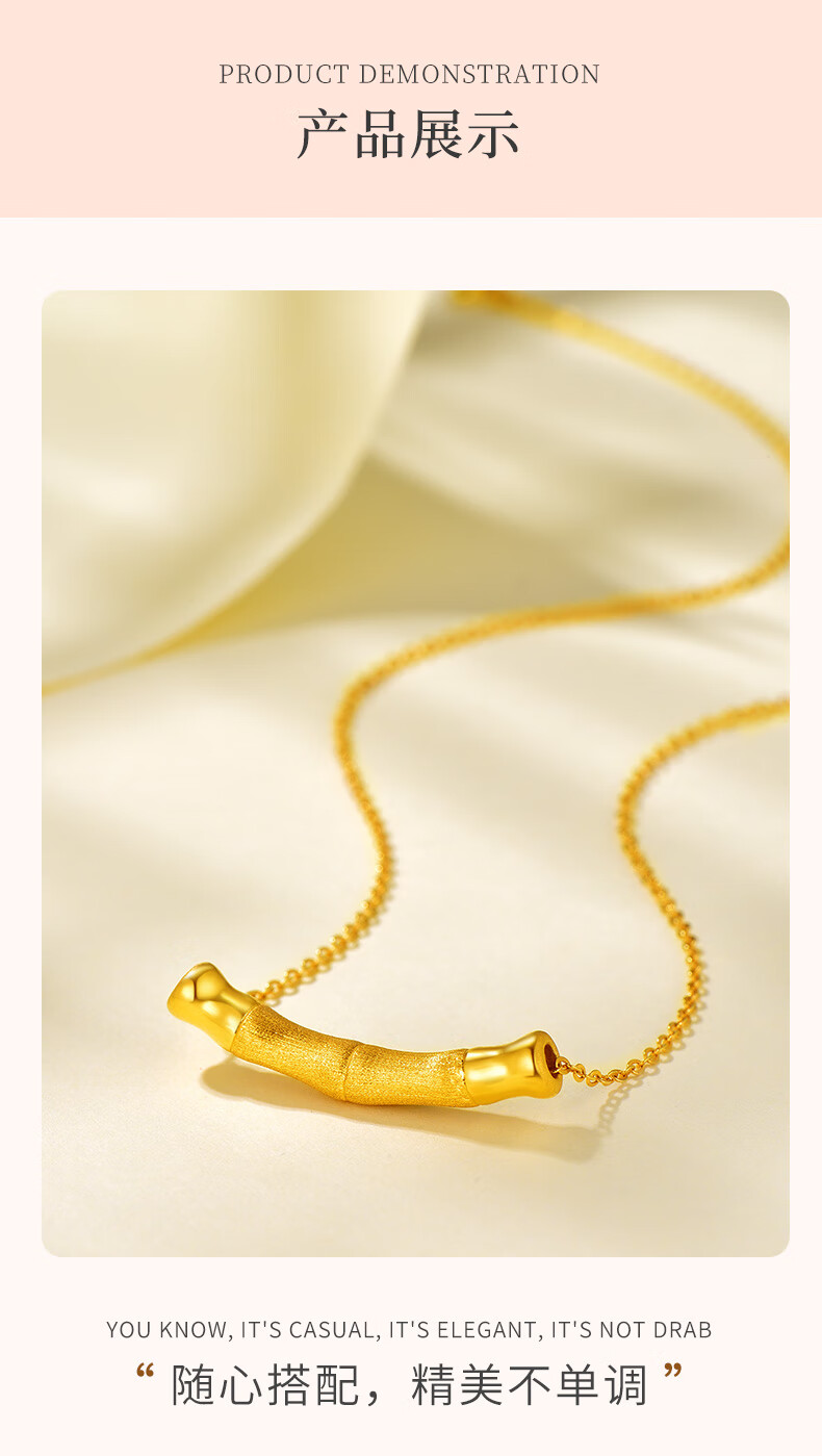 Gold and silver gold bamboo pendant, 999 pure gold through-hole necklace pendant, birthday gift for girlfriend, bamboo smile pendant (single pendant, if the weight exceeds the weight, please refund the less), about 0.75g