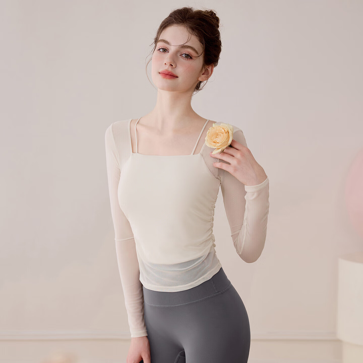 LULULOMDDW autumn and winter long-sleeved yoga wear with chest pad women's new top Pilates training fitness suit milk white long-sleeved M