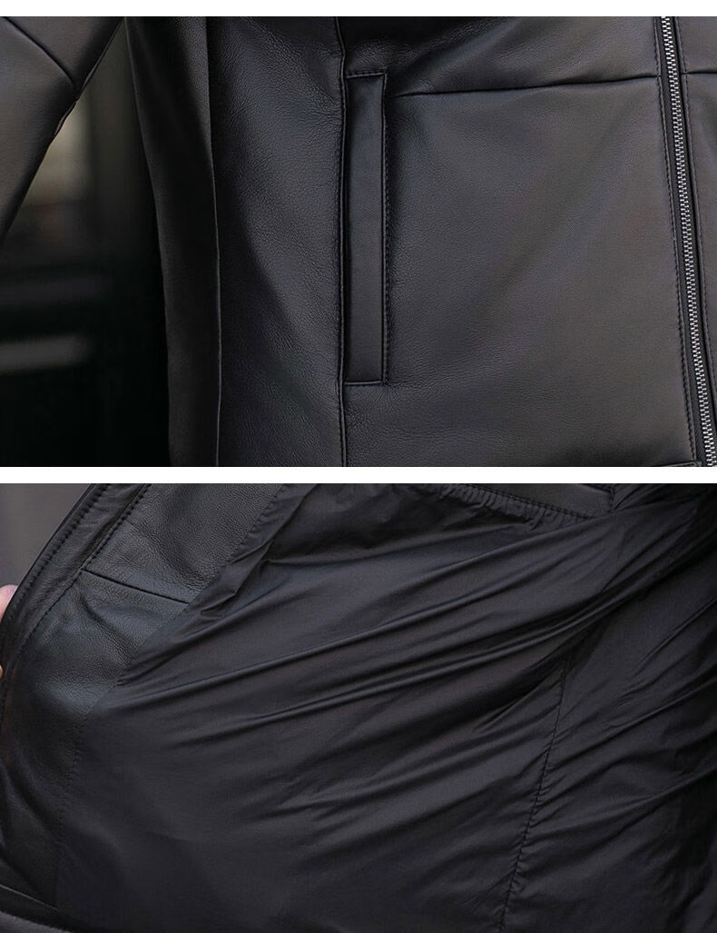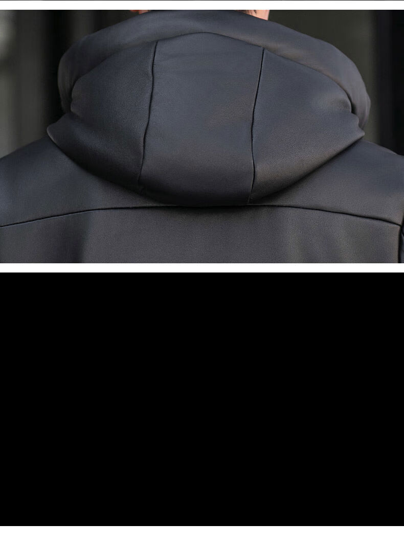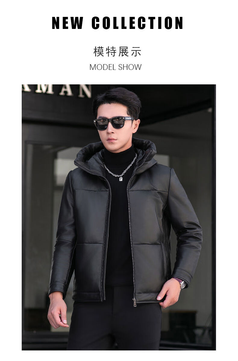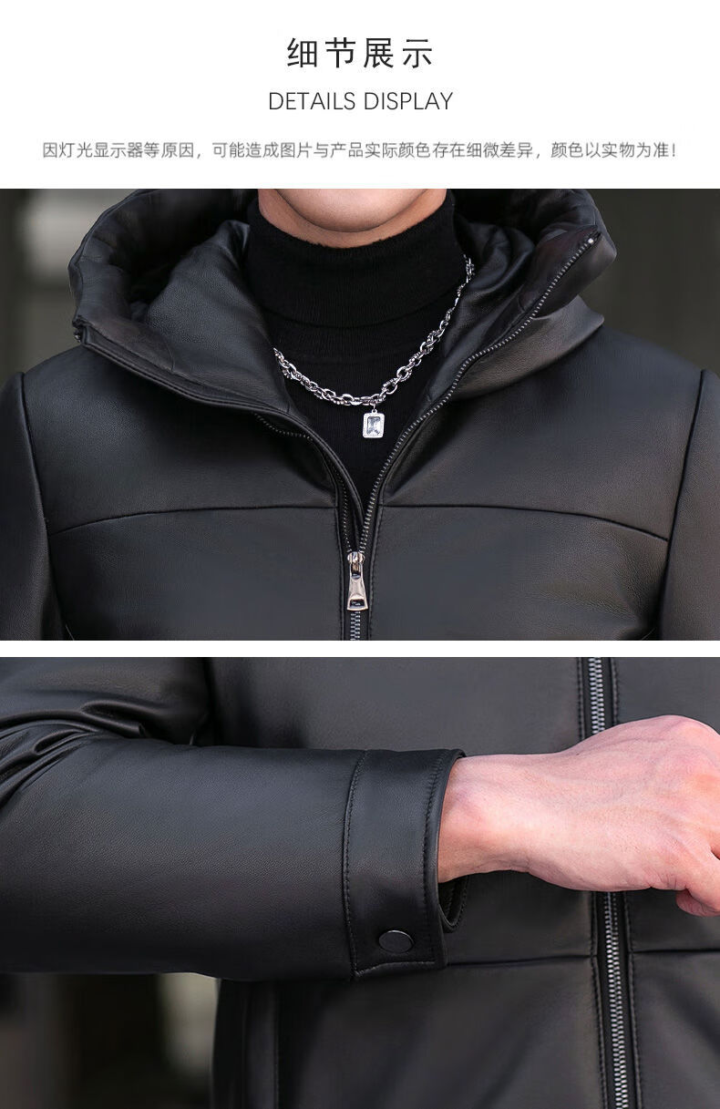 Jialedi winter Haining genuine leather jacket men's down jacket short sheepskin hooded jacket plus velvet thickened duck down jacket black M 17048