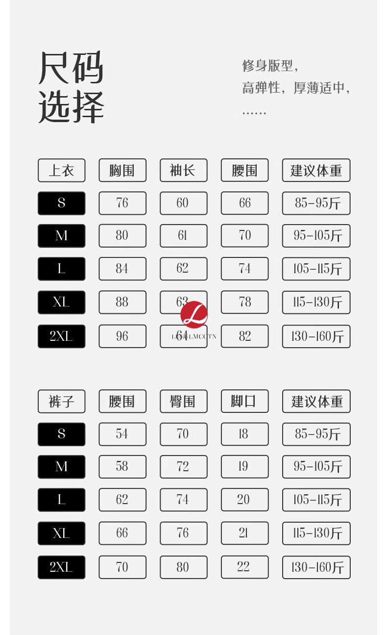 China (cm) 160-165/84-86 165-170 / 88-90 167-172 / 92-96 168-173 / 98-102 170-176 / 106-110
