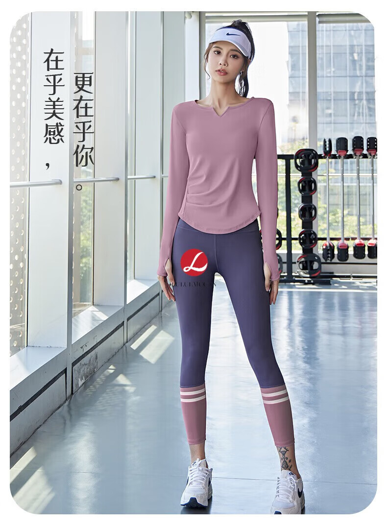LULULOMDDW Nude Yoga Suit Women's Seamless Elastic High Waist Hip Fitness Suit Running Sports Cycling Suit Cardamom Green Long Sleeves + Sauce Purple Pants M