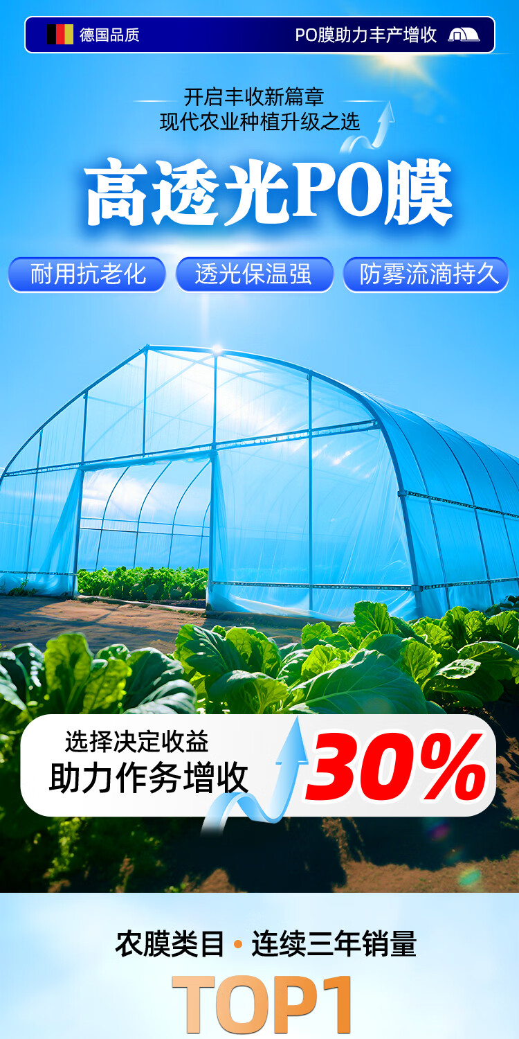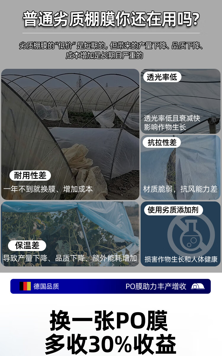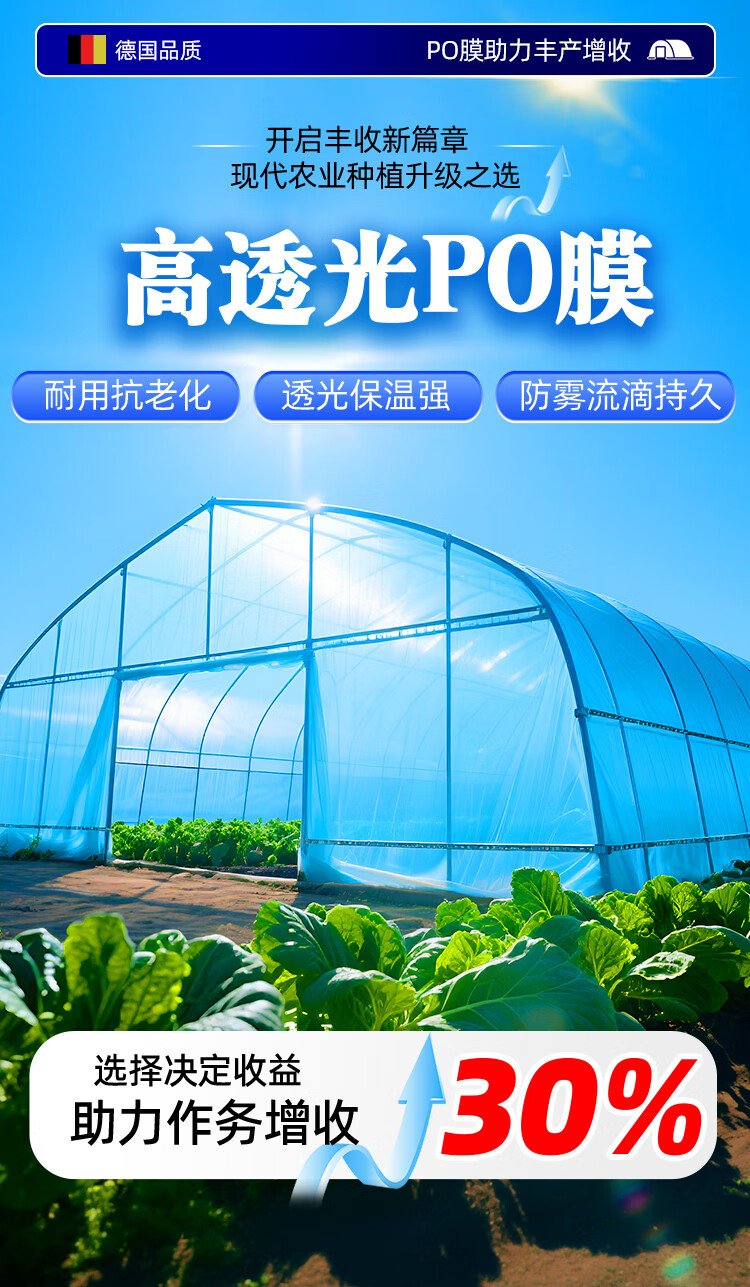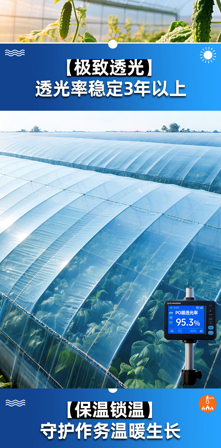 Greenhouse plastic film drip-free film greenhouse film plastic film po film thickened transparent longevity agricultural vegetable special film imported high light transmittance and anti-fog PO film 8S thick 2 meters wide and 10 meters long