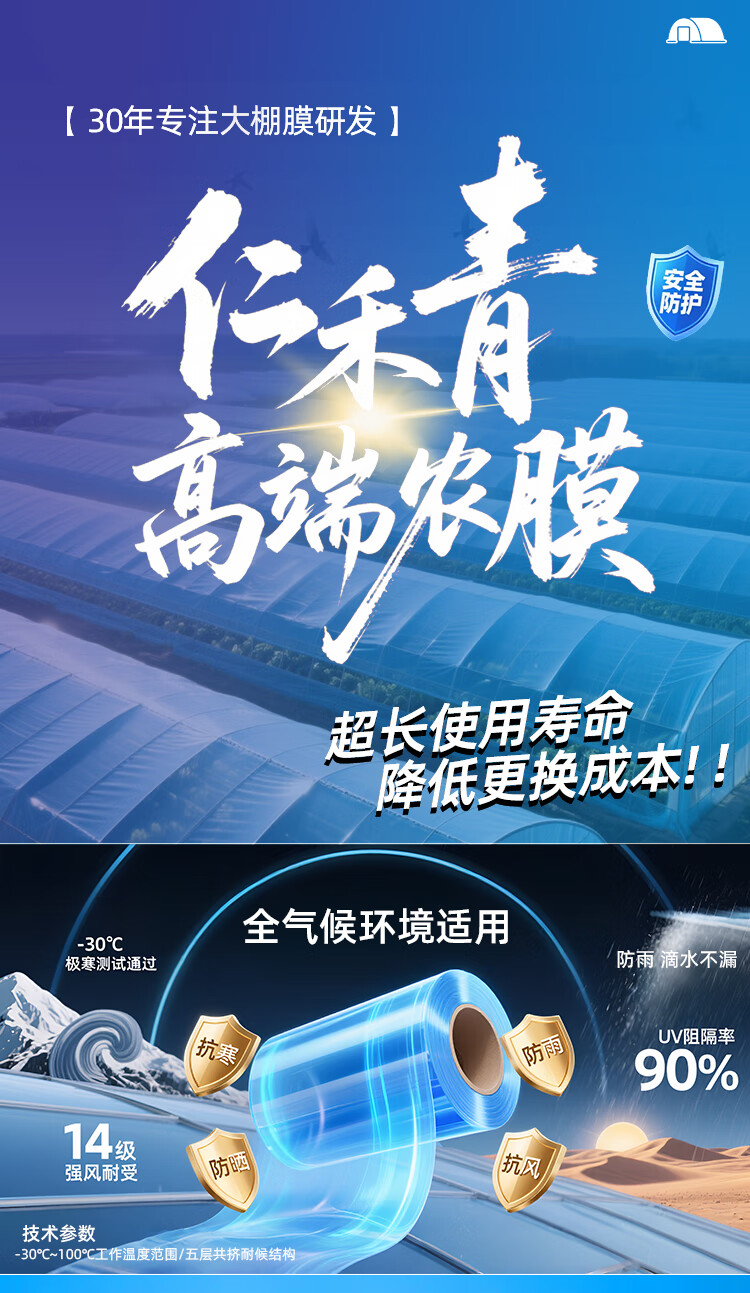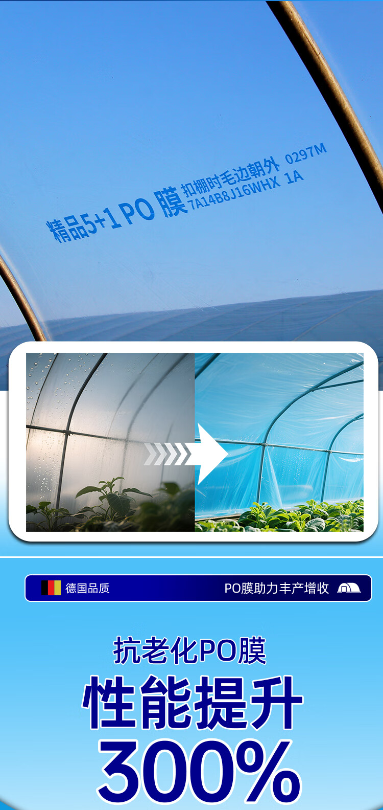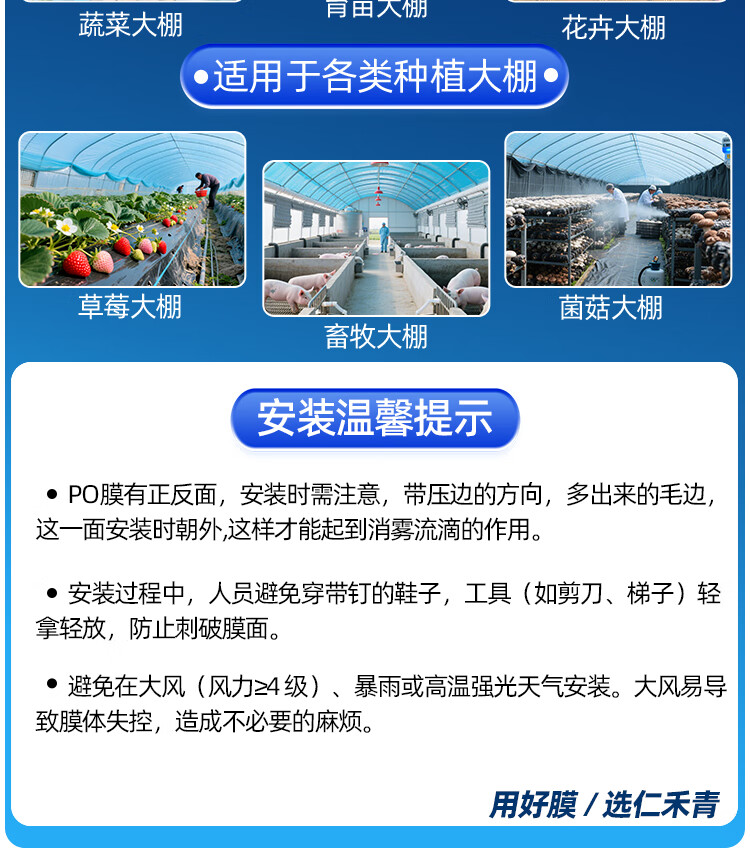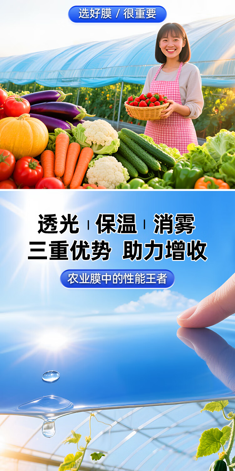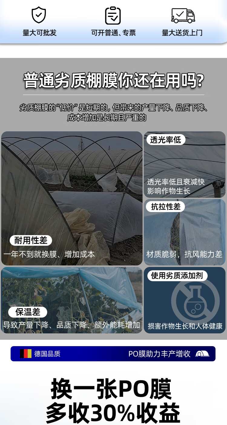 Greenhouse plastic film drip-free film greenhouse film plastic film po film thickened transparent longevity agricultural vegetable special film imported high light transmittance and anti-fog PO film 8S thick 2 meters wide and 10 meters long