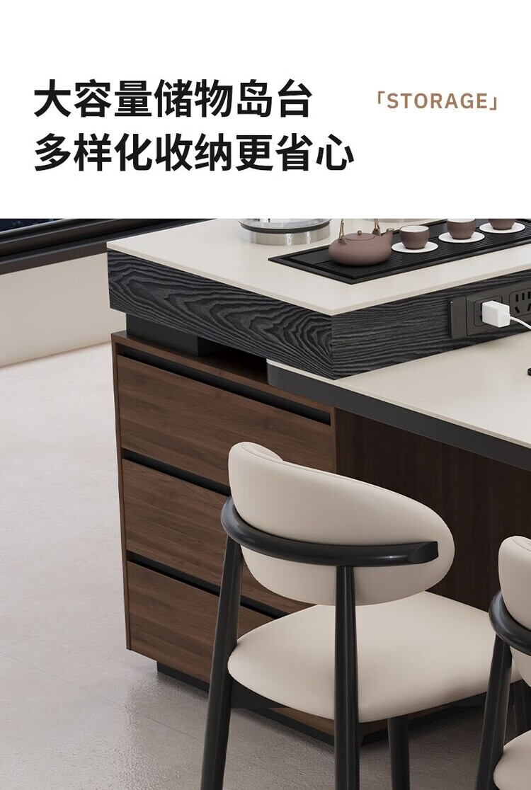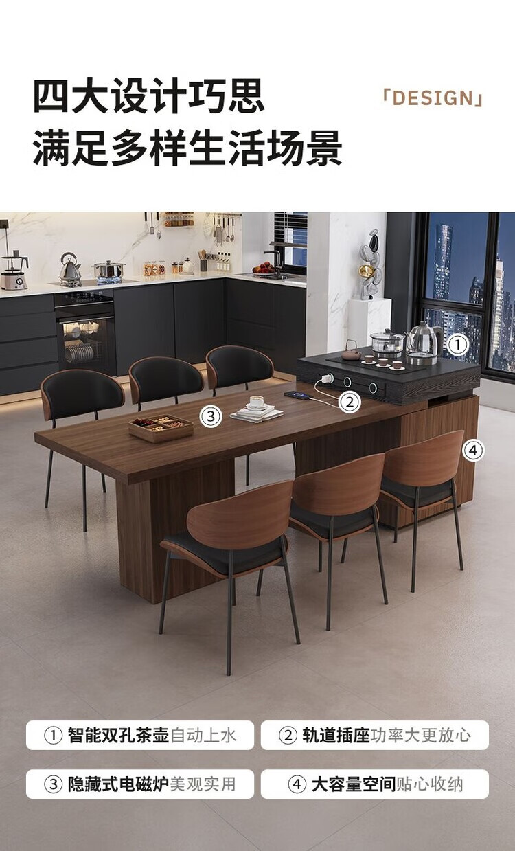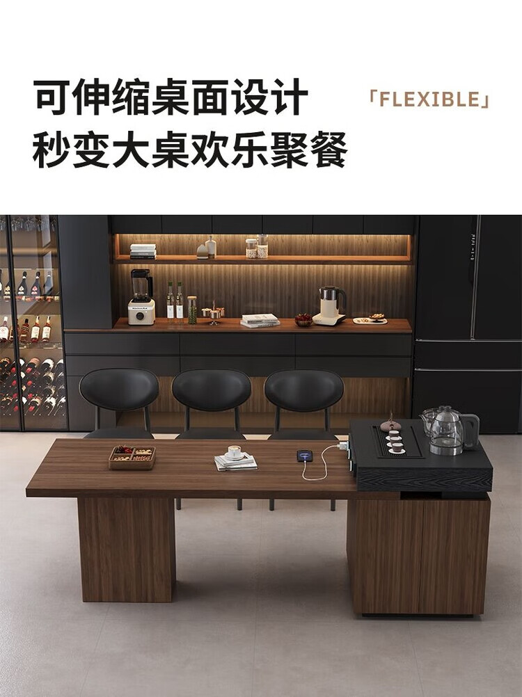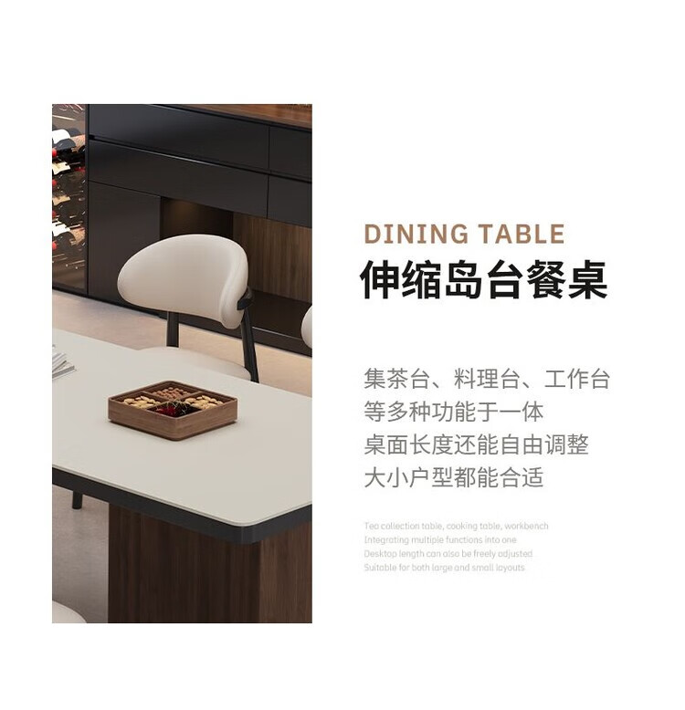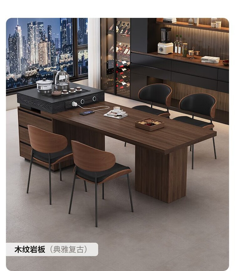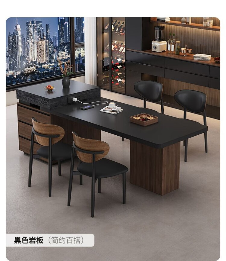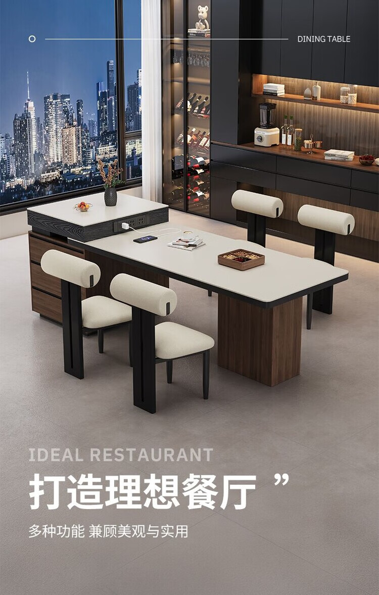 Shetan island table integrated dining table 2025 new small apartment multi-functional new wood grain slate household retractable dining table 140cm table top retractable island table without tea stove island table + 4 hippo chairs brand three-plug socket