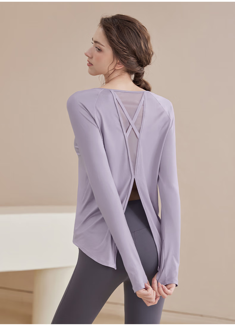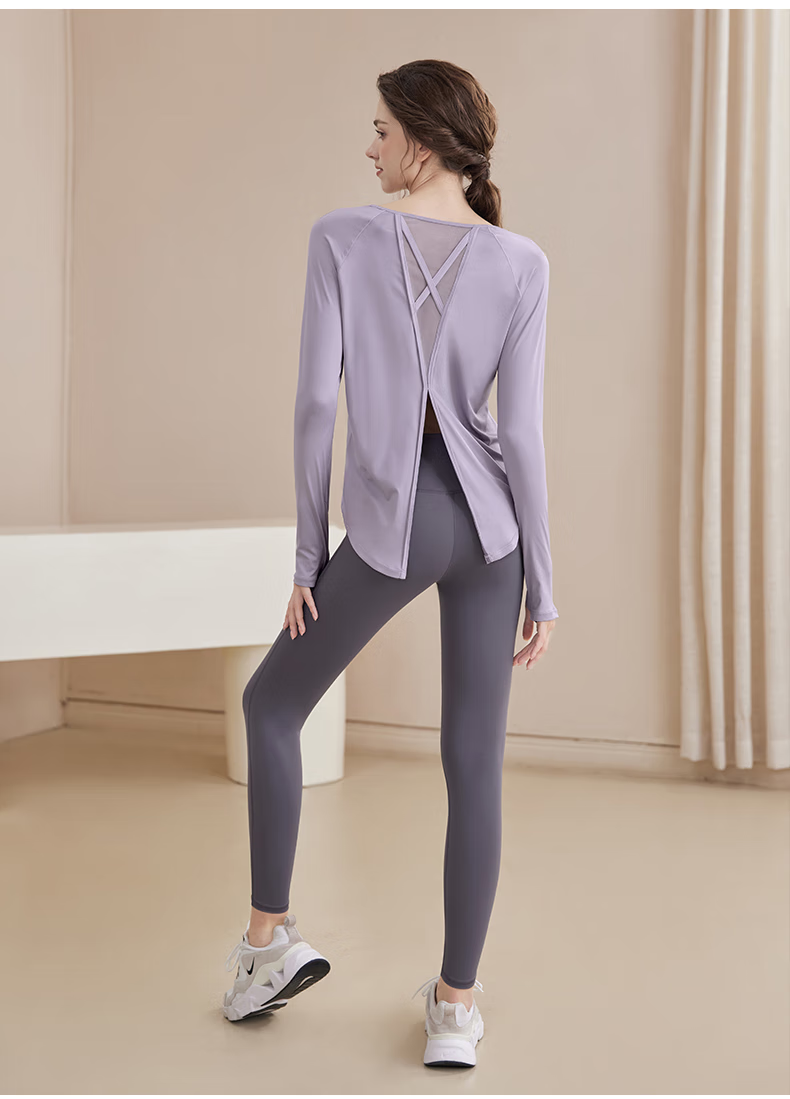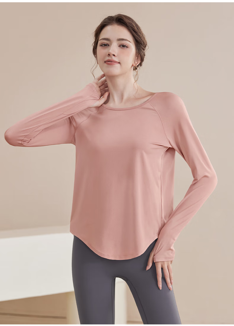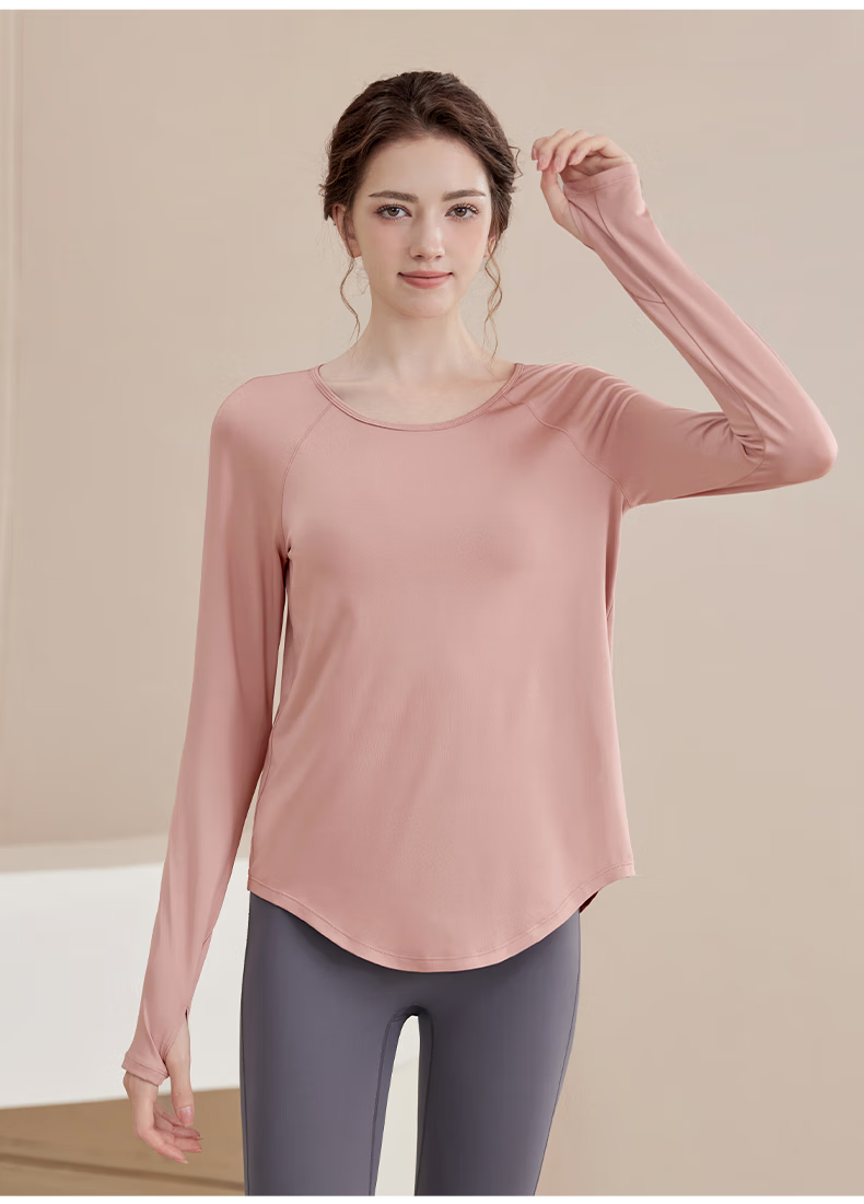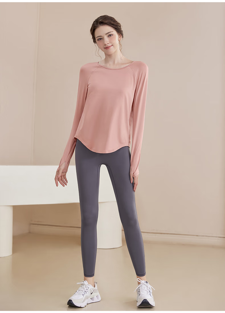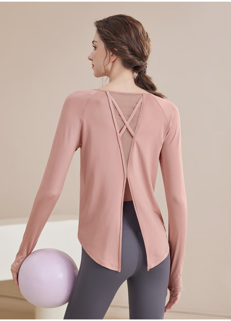 LULULOMDDW Yoga Wear Long Sleeve Suit Women's Autumn Loose Slim Fitness Wear Pilates Sports Mesh Blouse Top Women Sunset Pink Long Sleeve Top S