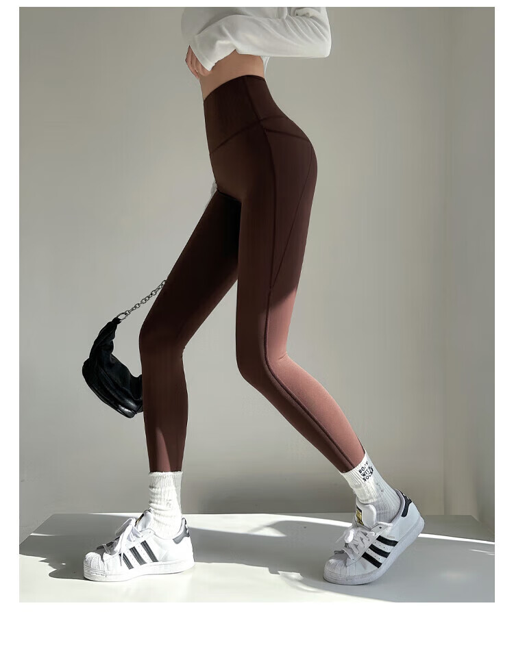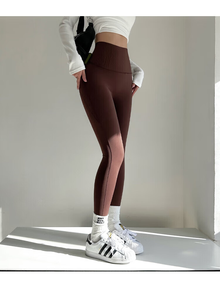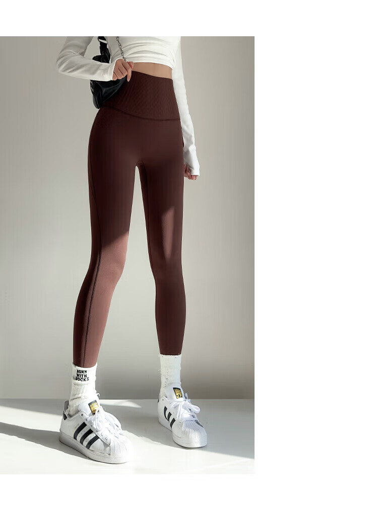 LULULOMDDW yoga pants women's high waist hip lifting Pilates training running sports tight quick-drying bottoming dance pants chestnut color S (80-100Jin Jin equals 0.5kg)