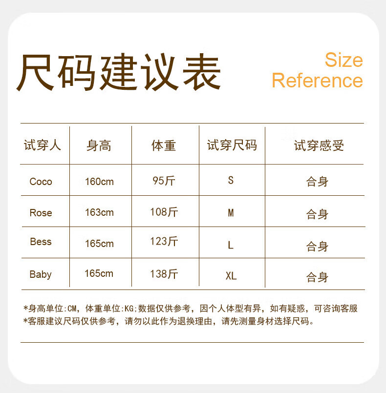 China (cm) 160-165/84-86 165-170 / 88-90 167-172 / 92-96 168-173 / 98-102 170-176 / 106-110