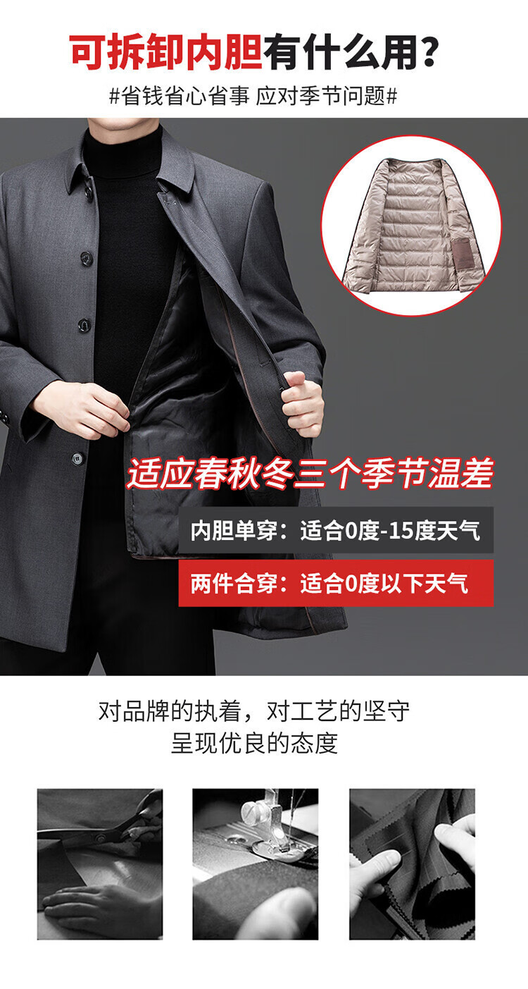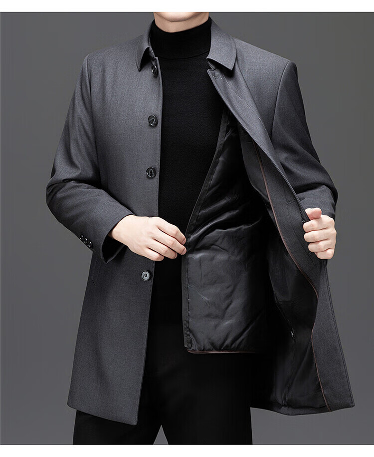 Зимняя ветровка средней длины Flying in the Snow 2025 90 Длинный пуховик на белом утином пуху со съемной подкладкой Теплая куртка для папы среднего возраста Серый M