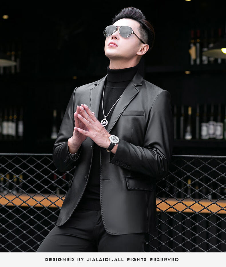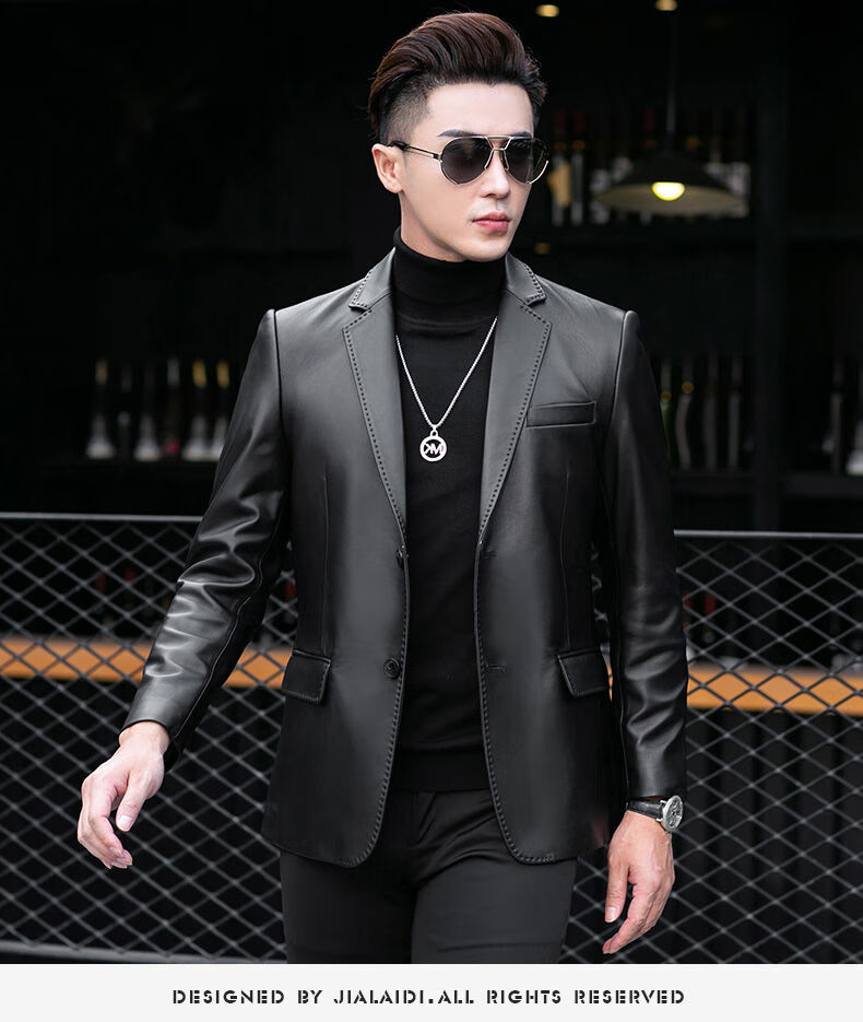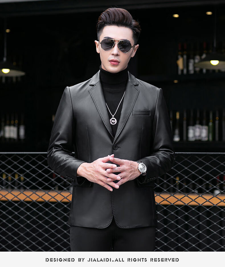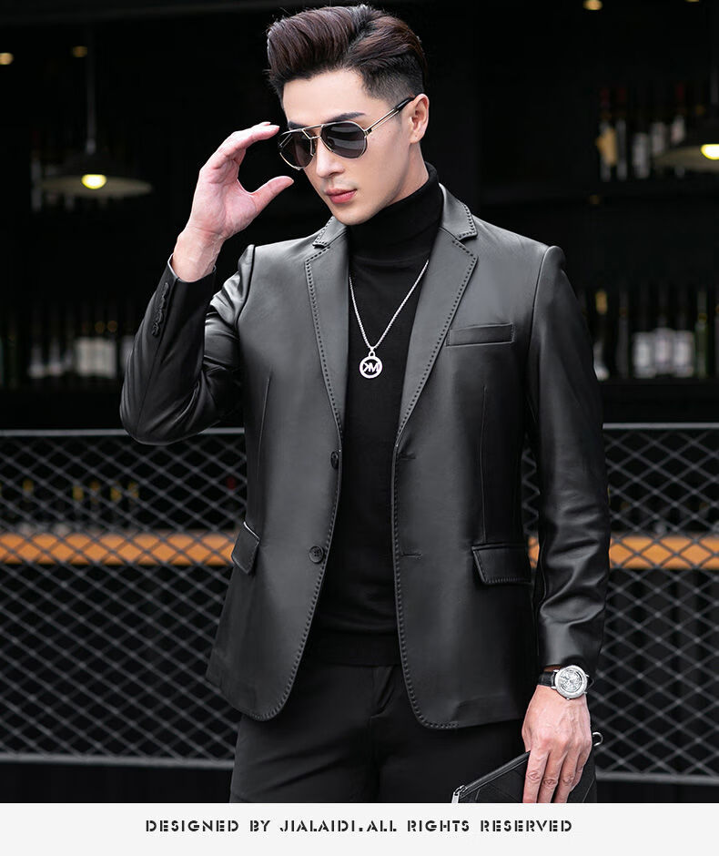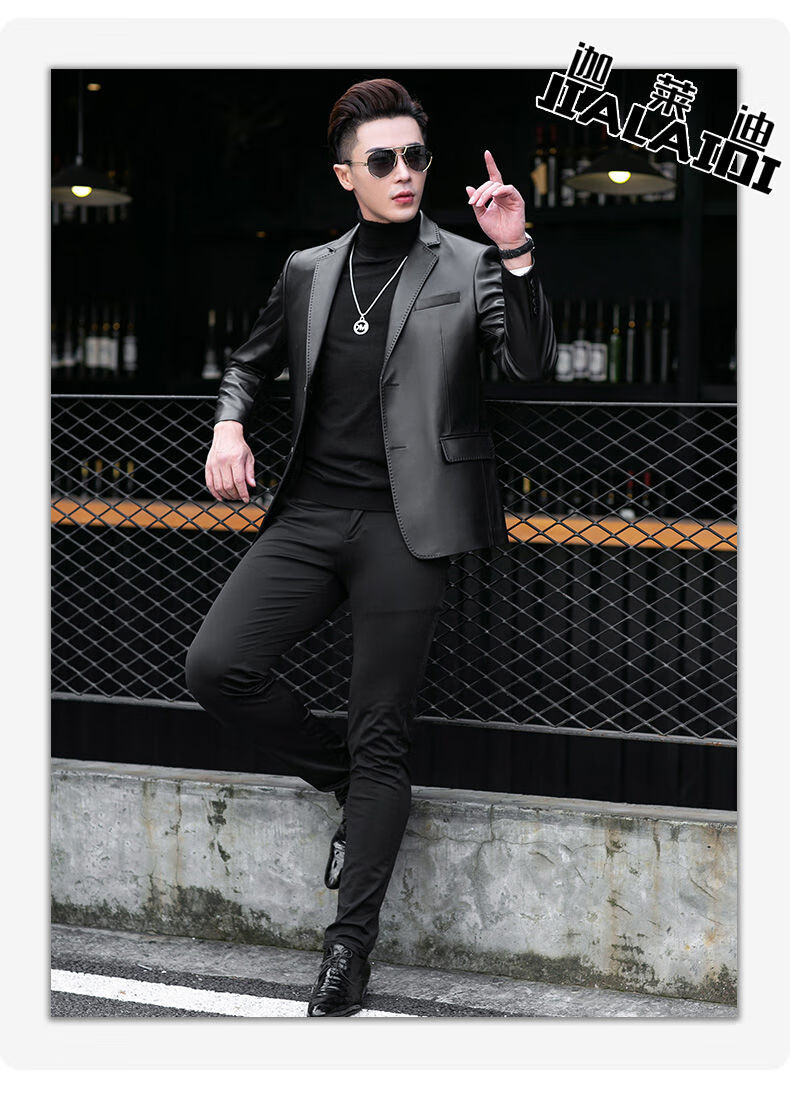 Galedi leather suit men's autumn new sheepskin jacket slim thin small suit business Haining leather jacket trendy black S 16546