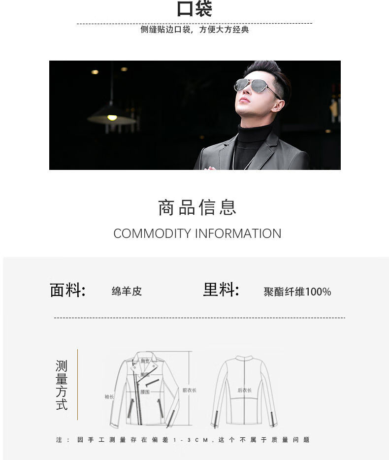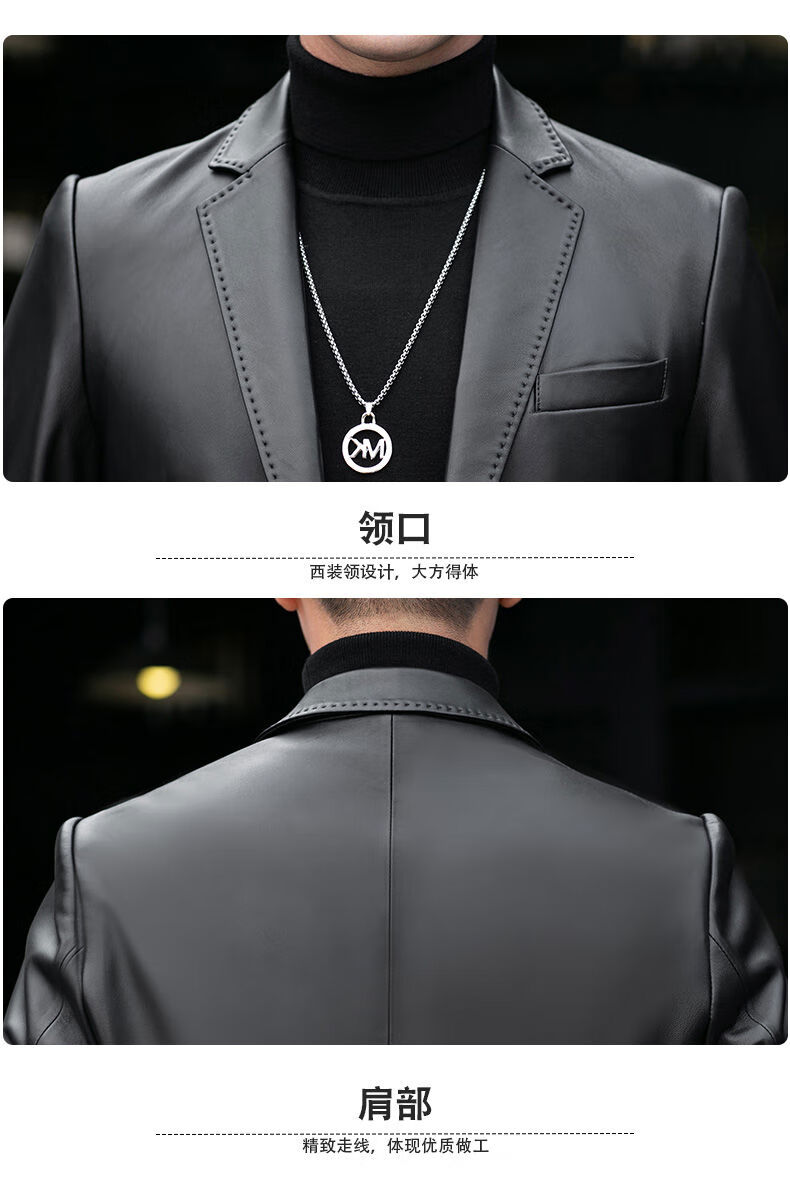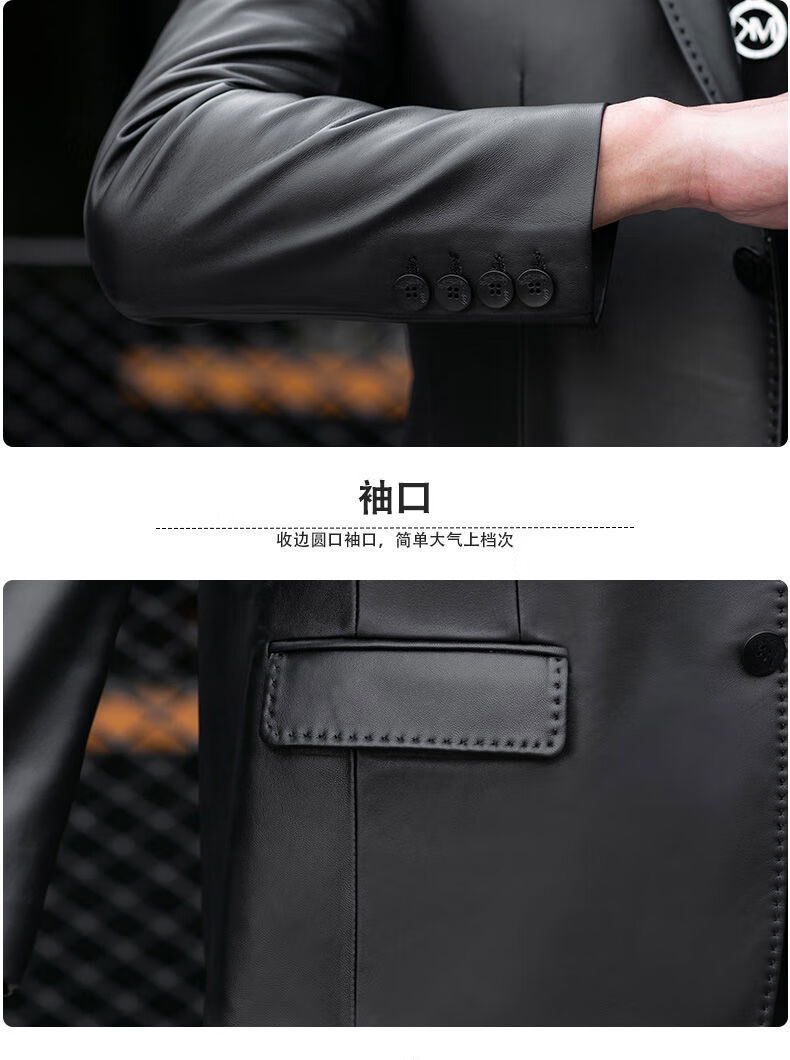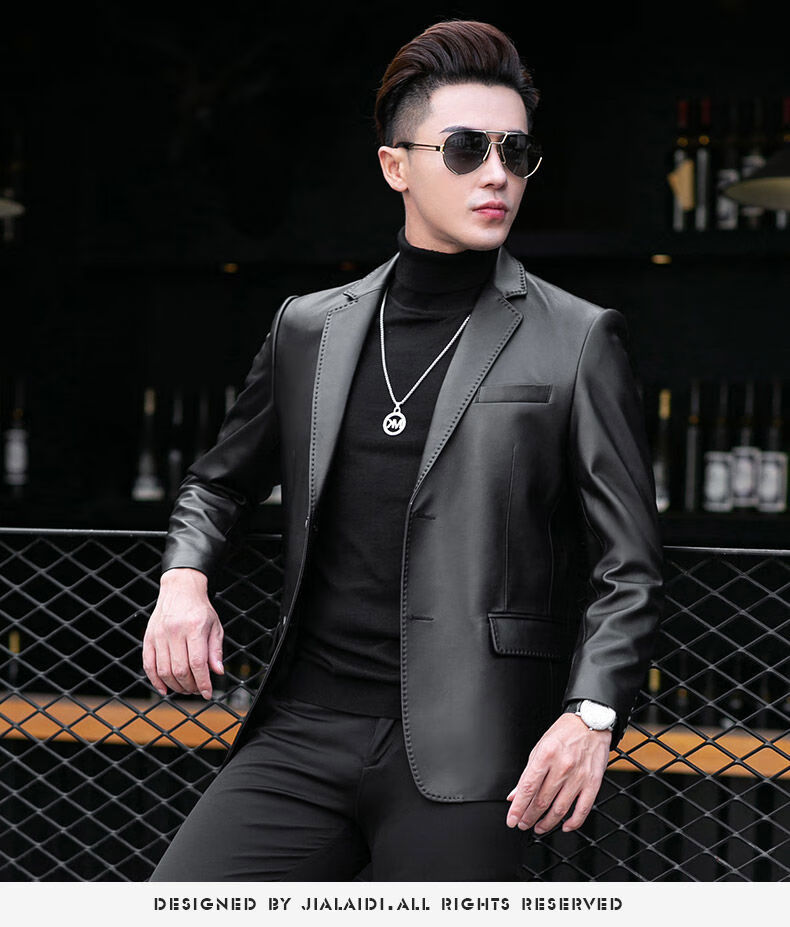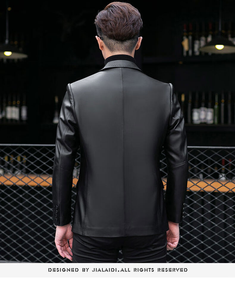 Galedi leather suit men's autumn new sheepskin jacket slim thin small suit business Haining leather jacket trendy black S 16546