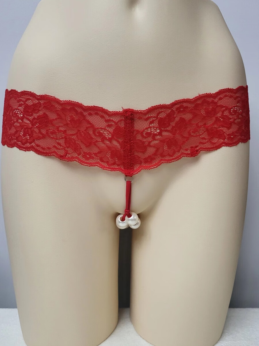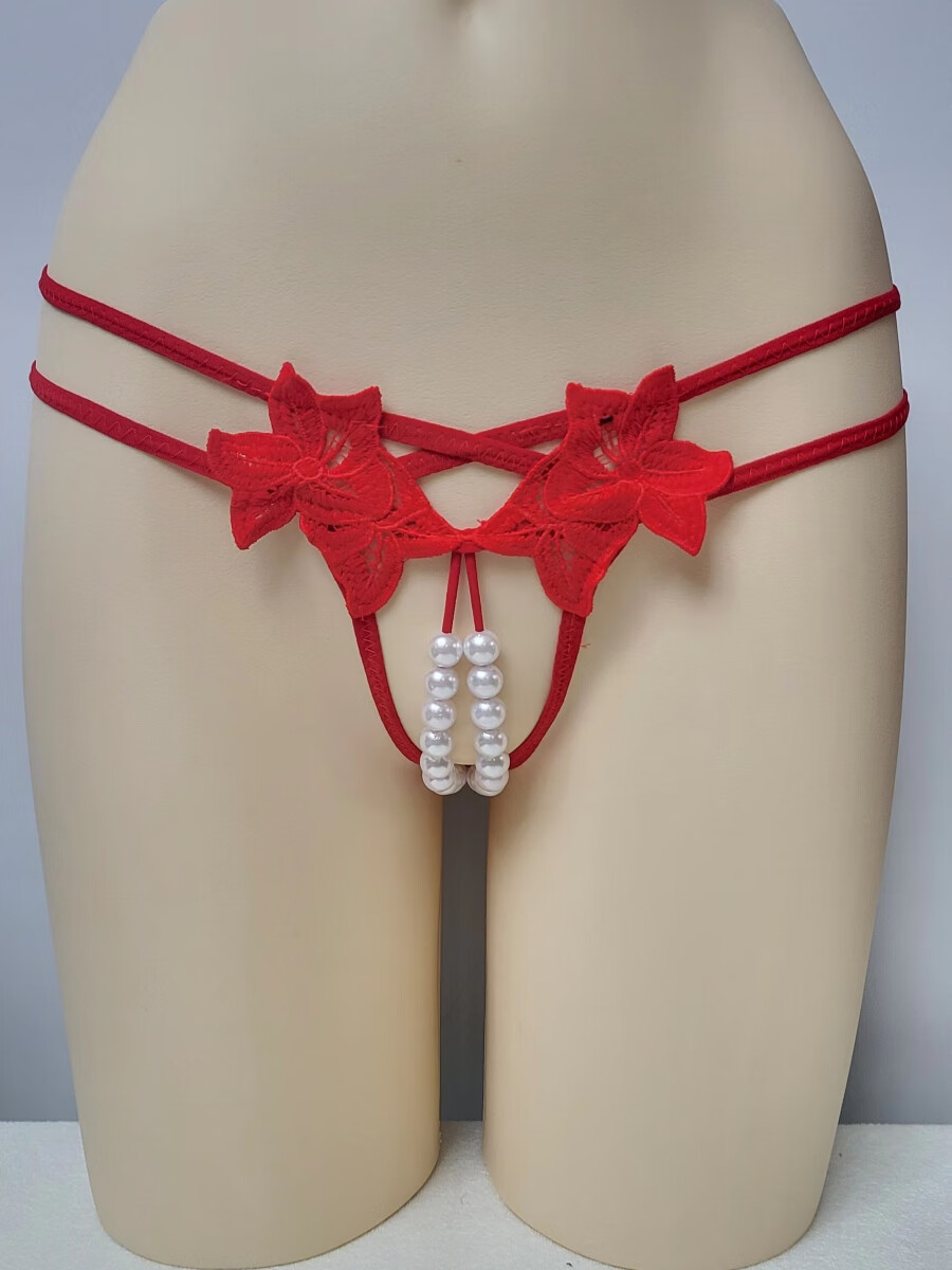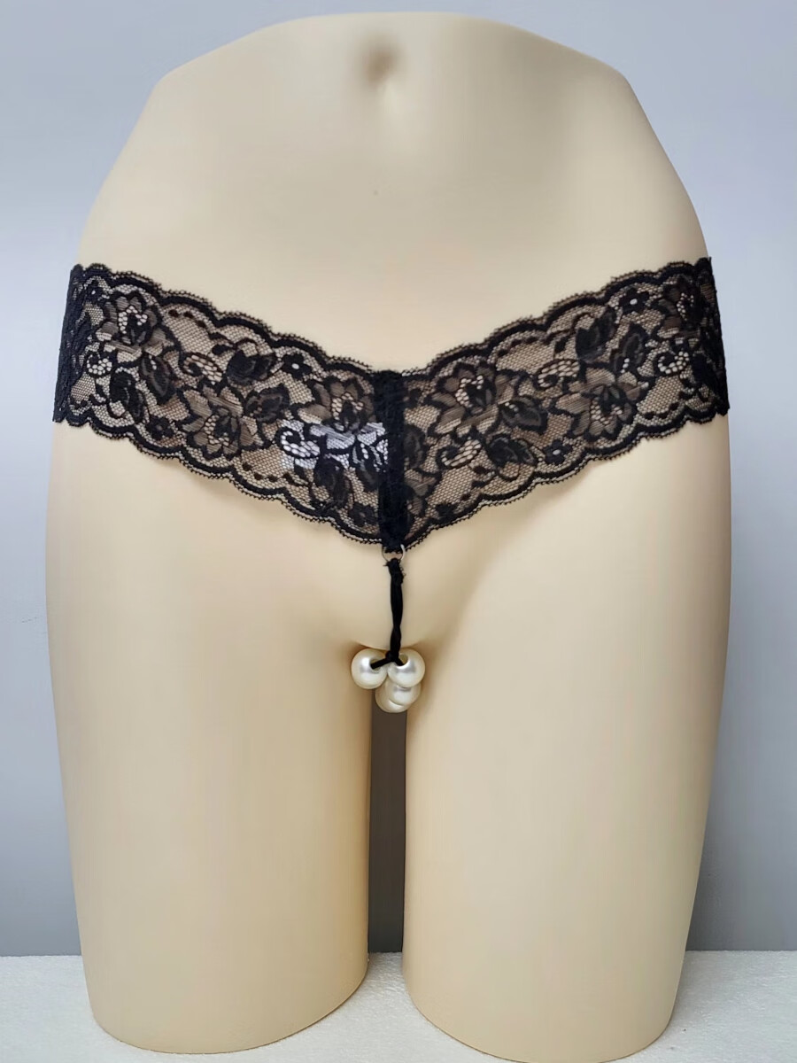 Sexy couple underwear, one man and one woman, T-string, feminine design, men's underwear, men's underwear, double row, black double suspender flower-double row pearl L