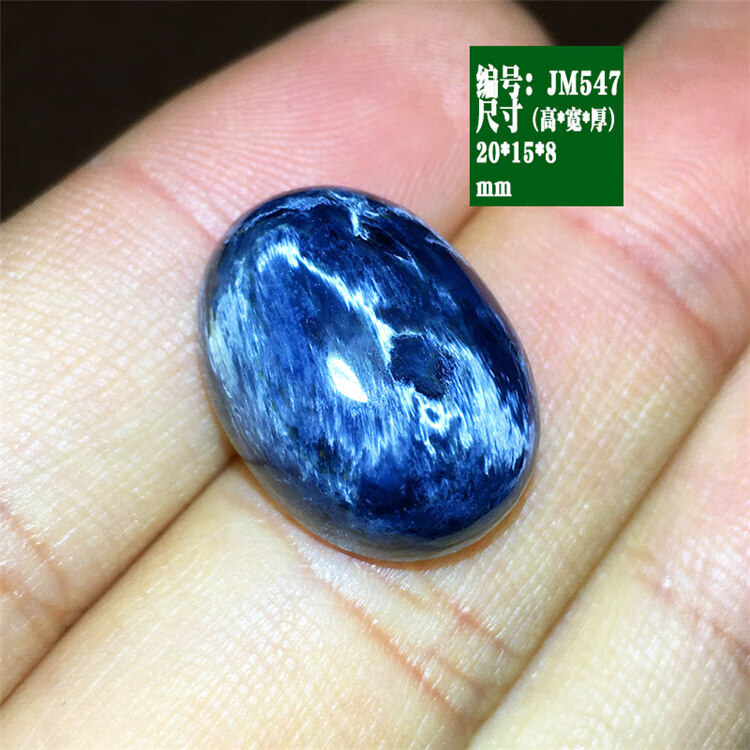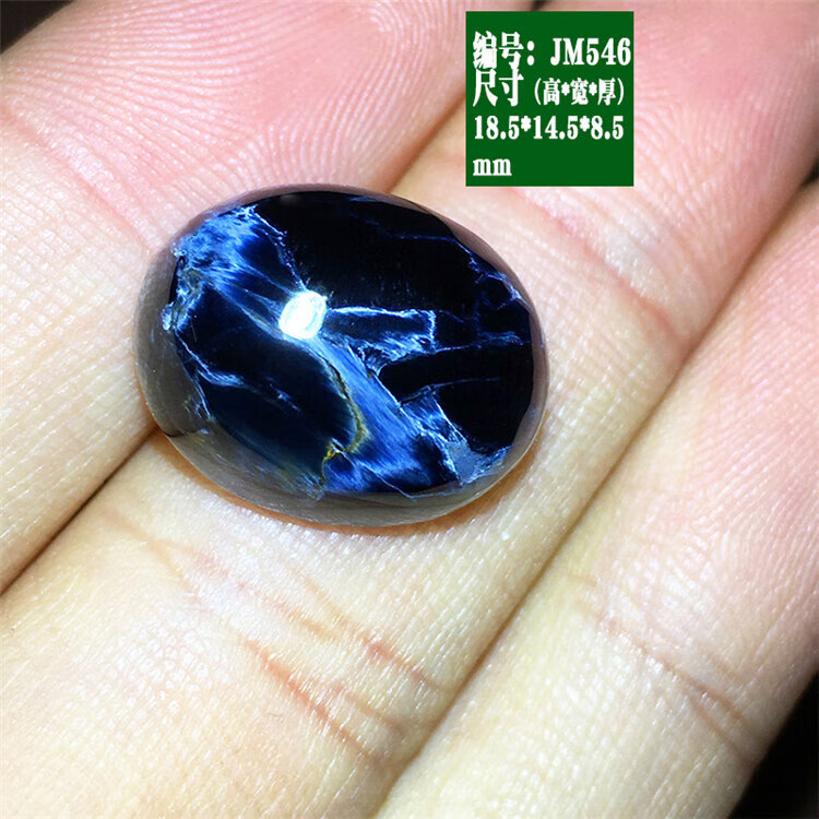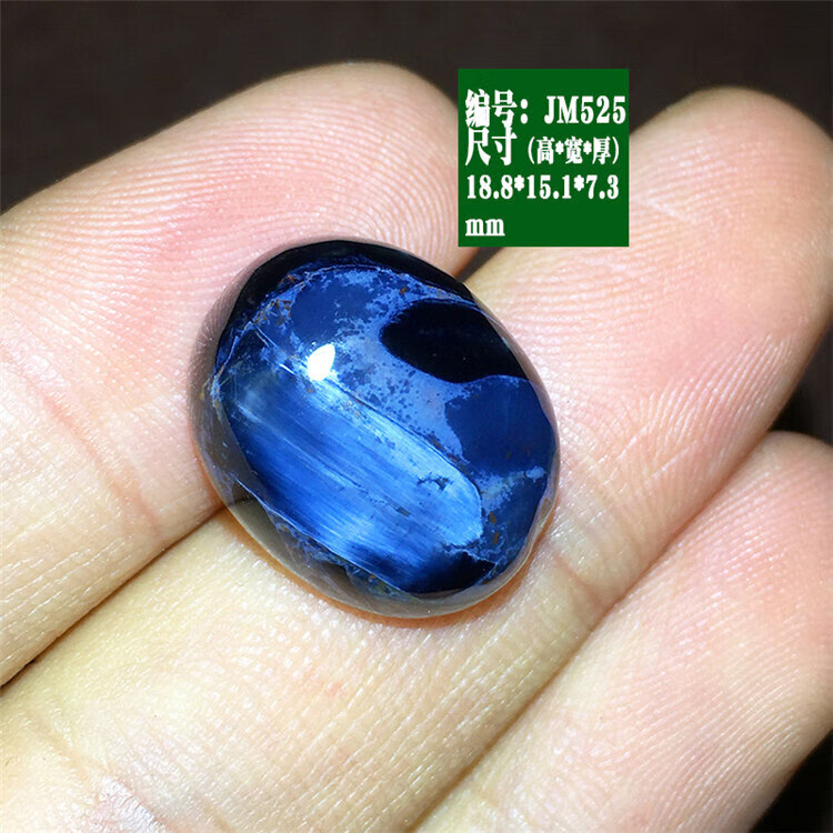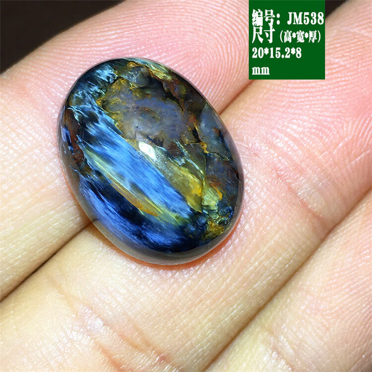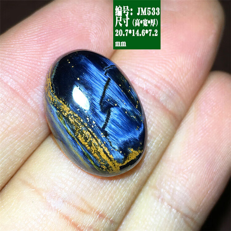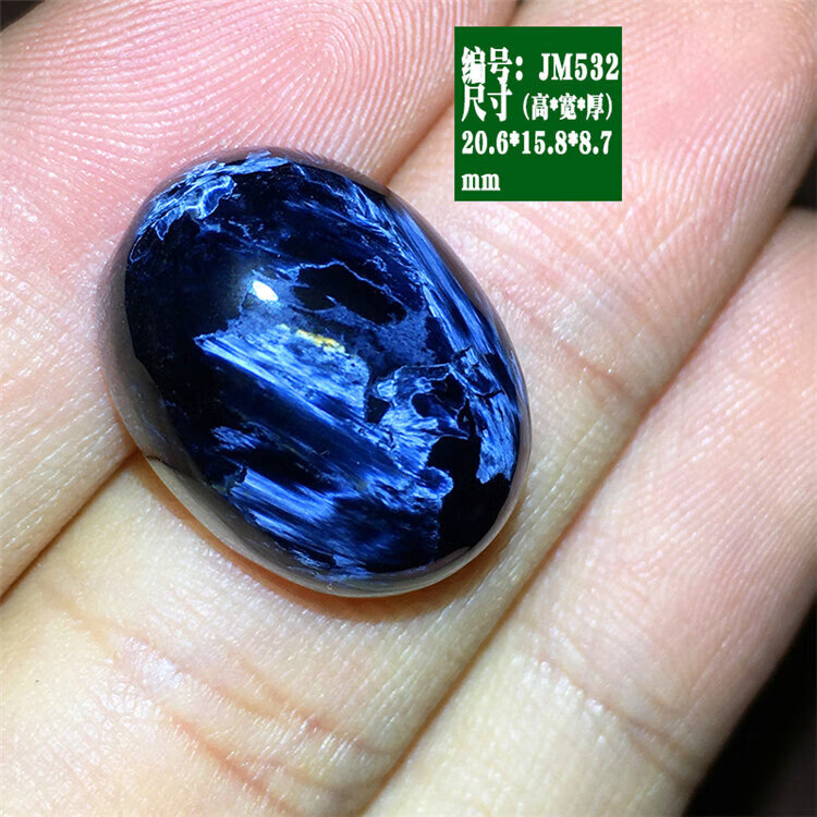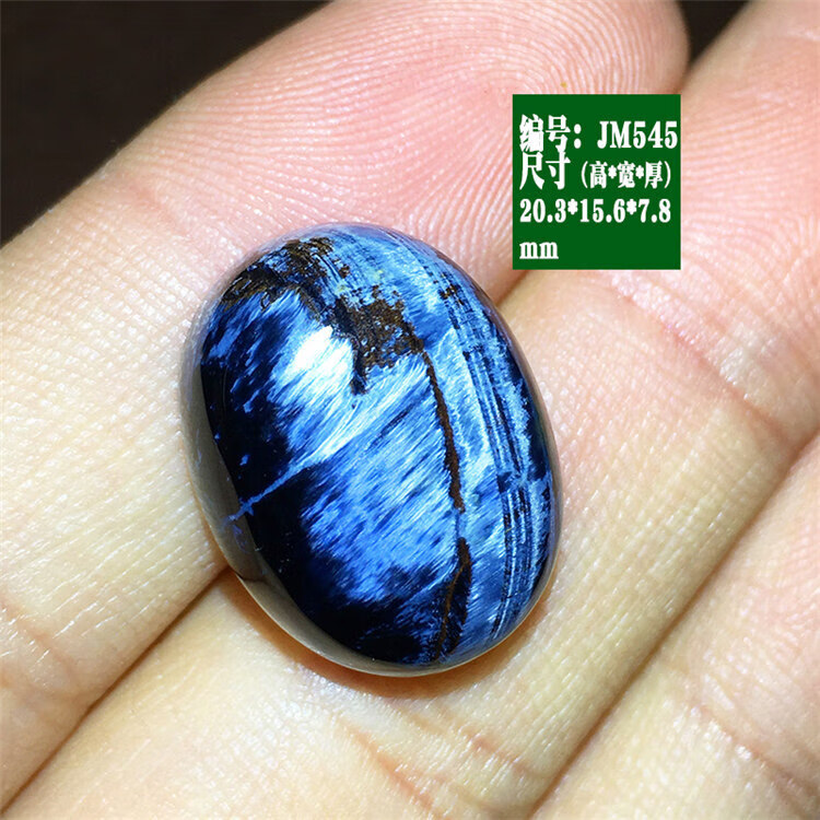Cold bamboo stone men's large ring with fire color Namibian material fine bare stone ring egg surface blue cat's eye No. jm525