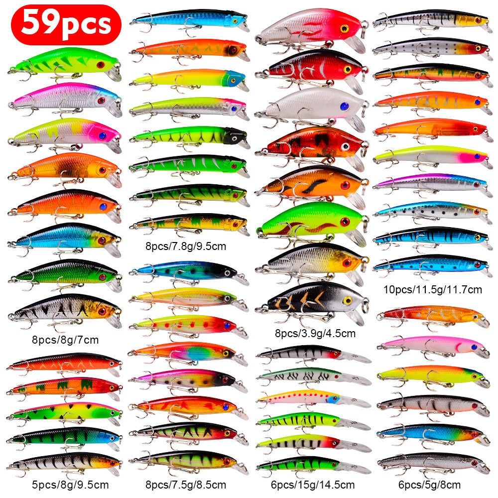 Shantou Lincun 59PC Fishing Bait Set Mixed Minnow Rock Lure Bait Set Plastic False Bait Fishing Gear E-commerce DWMI011 Carton Packaging