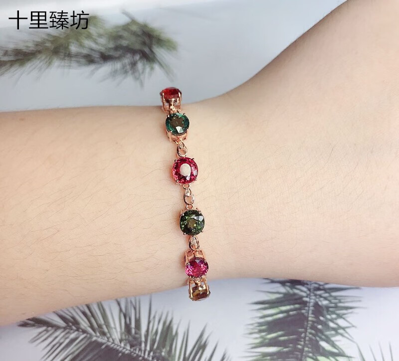 Xuan Song Caibao Green Red Bracelet Diamond Gemstone Inlaid Hand Decoration Picture Color Decoration Picture Color