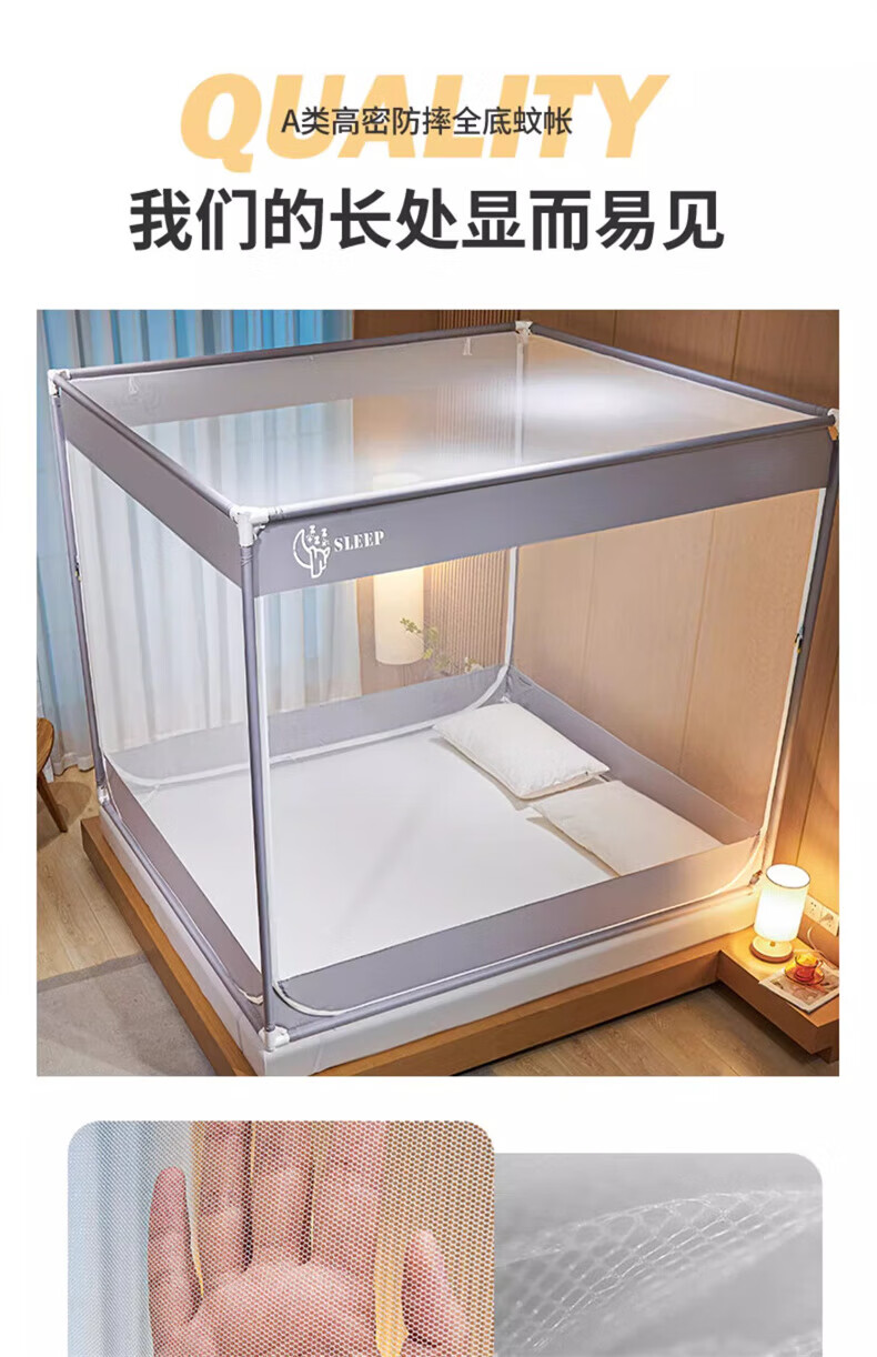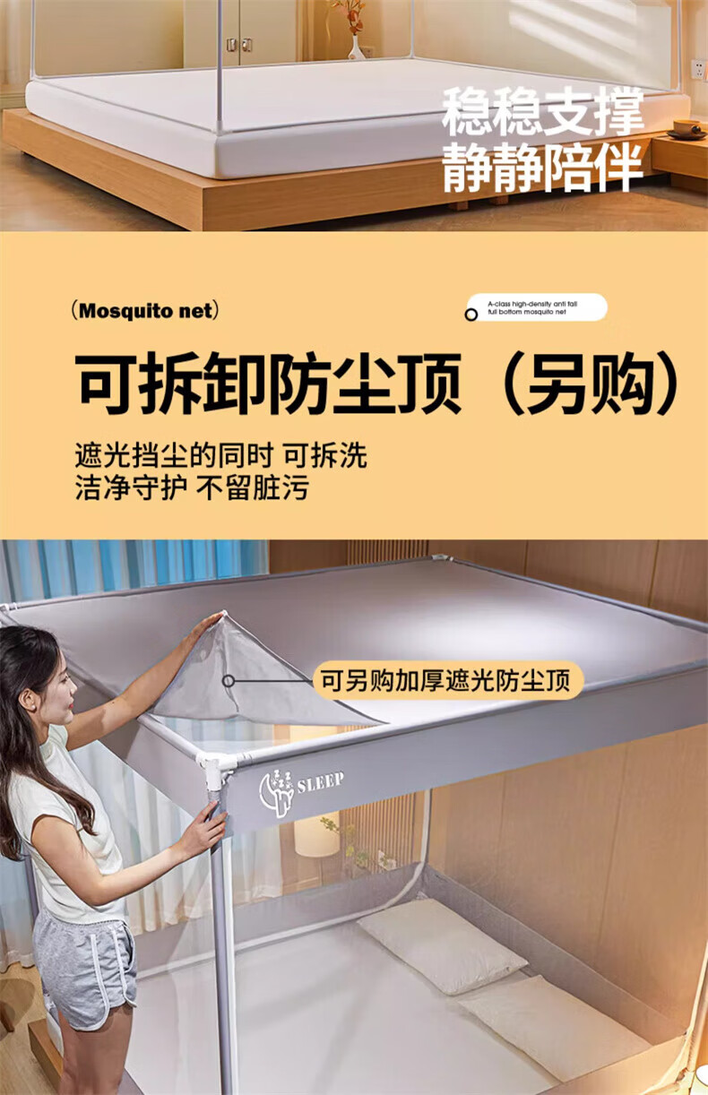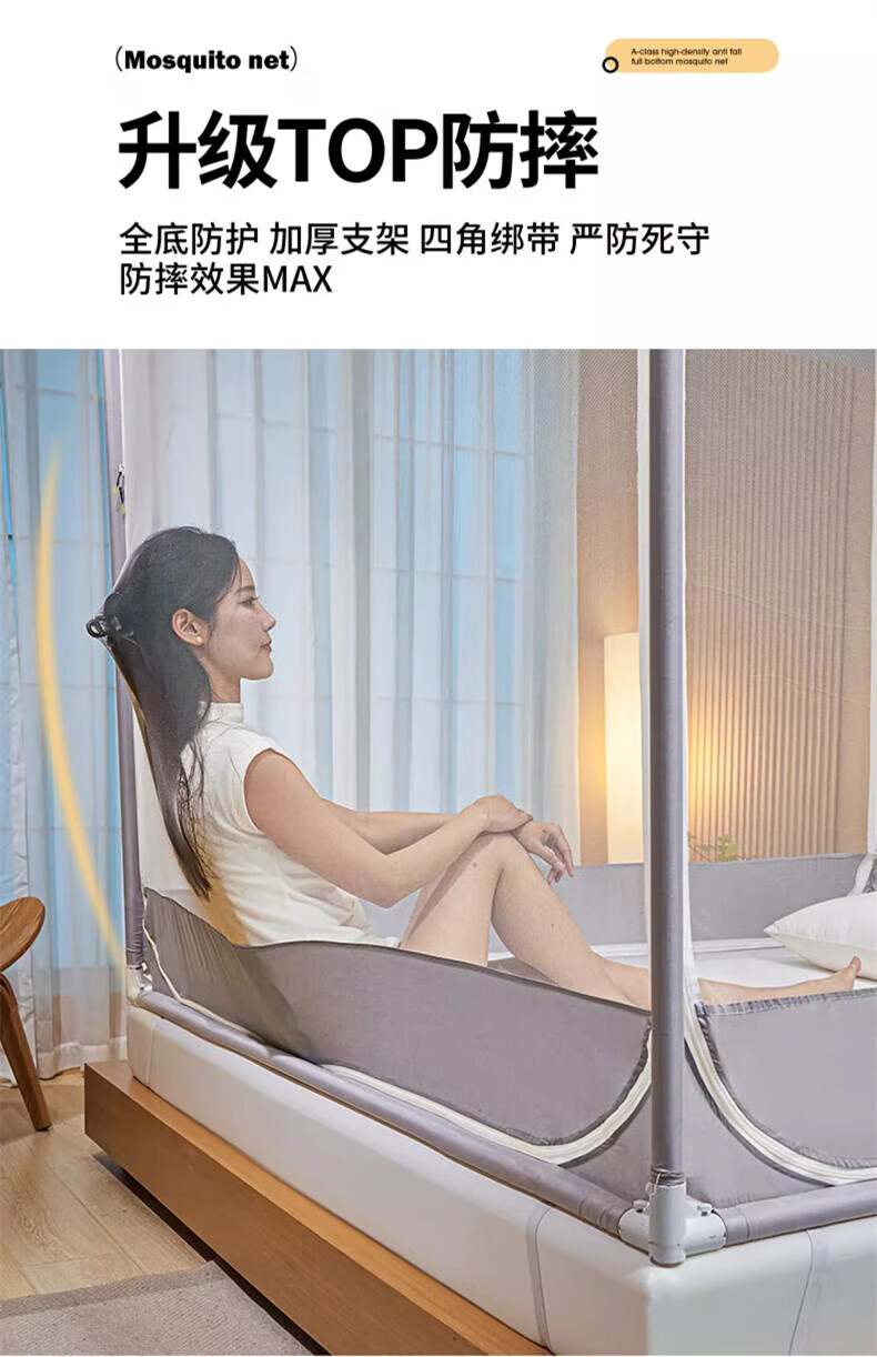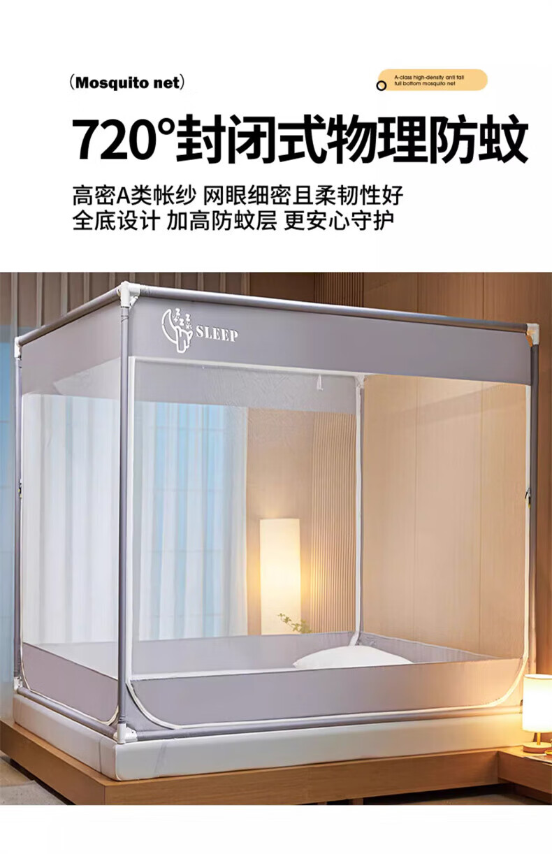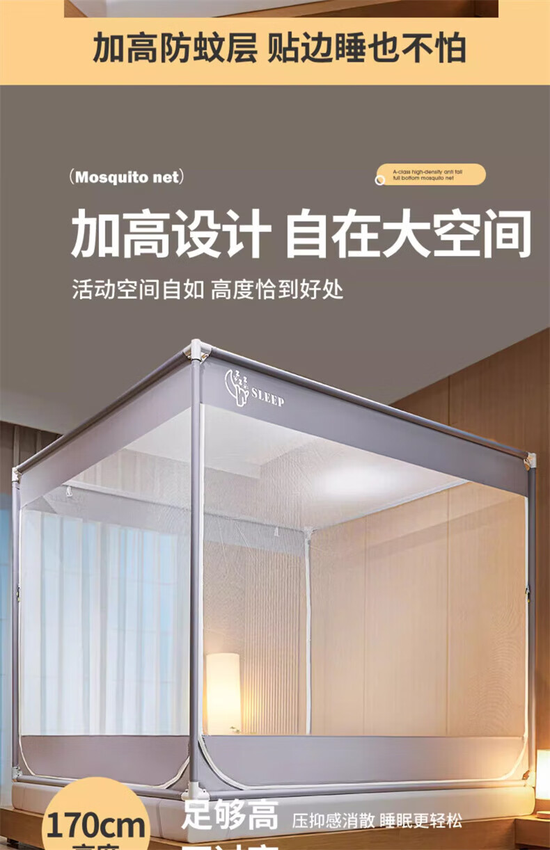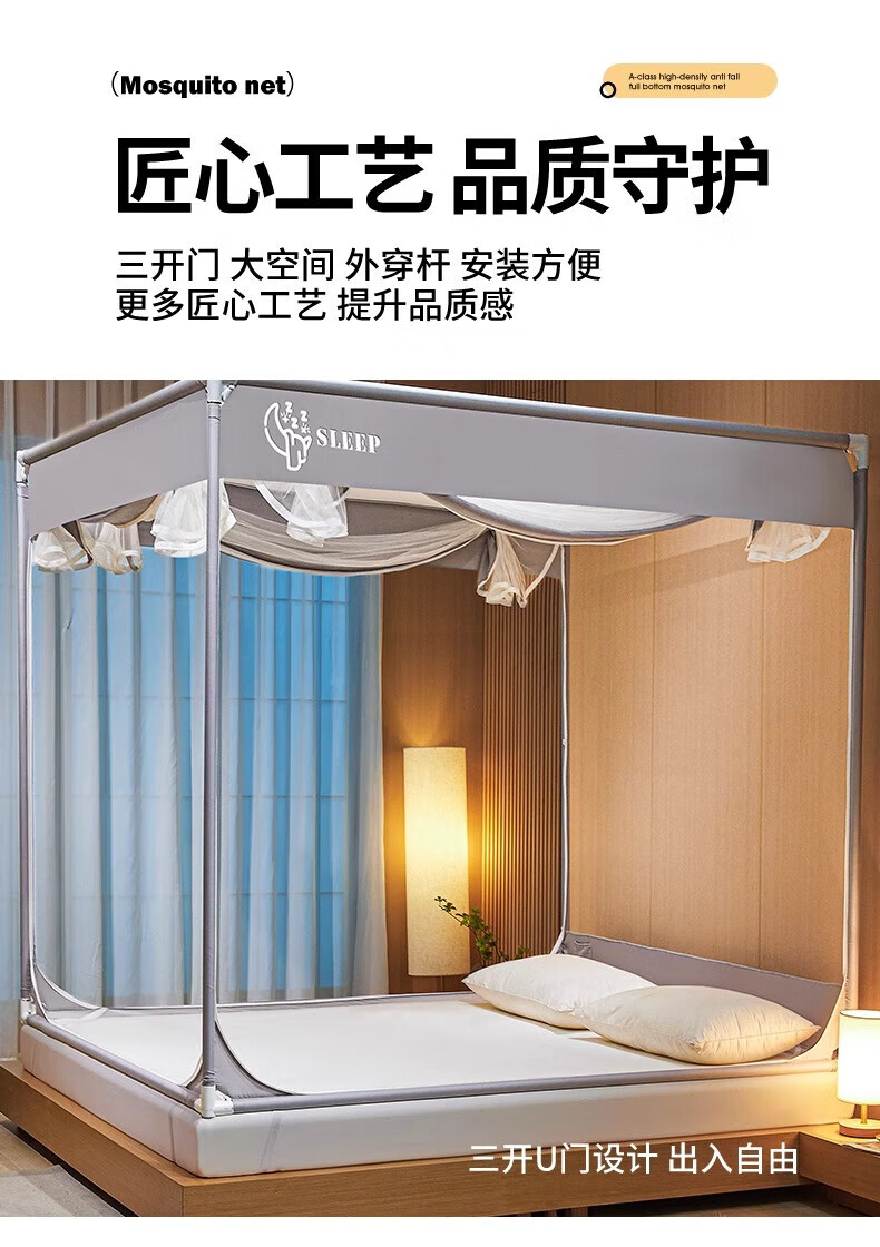 Steinmetz Class A encrypted baby mosquito net anti-fall mosquito net three-door bed sheet bedroom bracket baby sitting bed U Xizi Lanyi 200cm*150cm*170cm1.5m bed