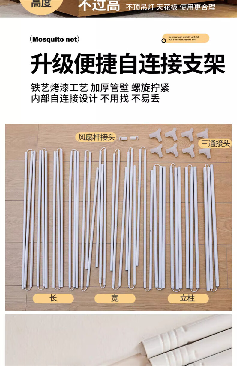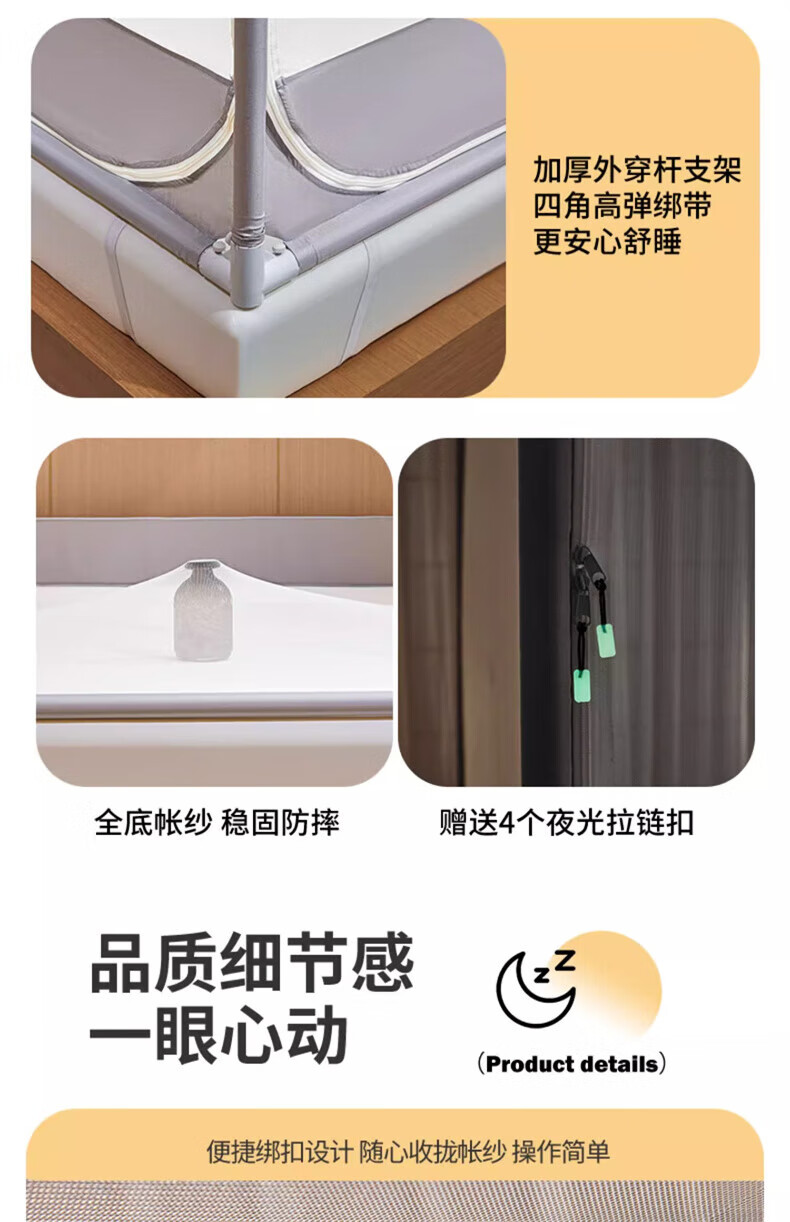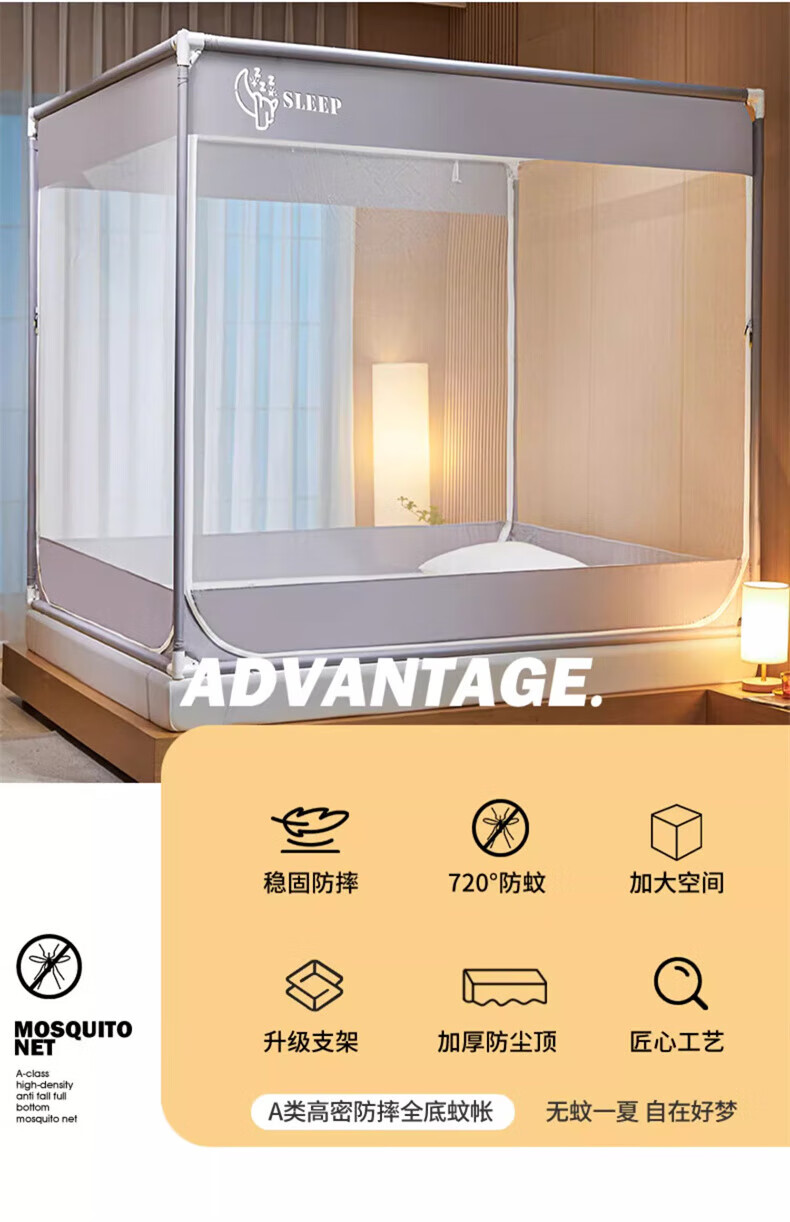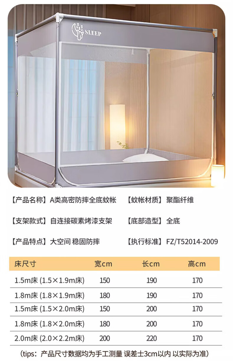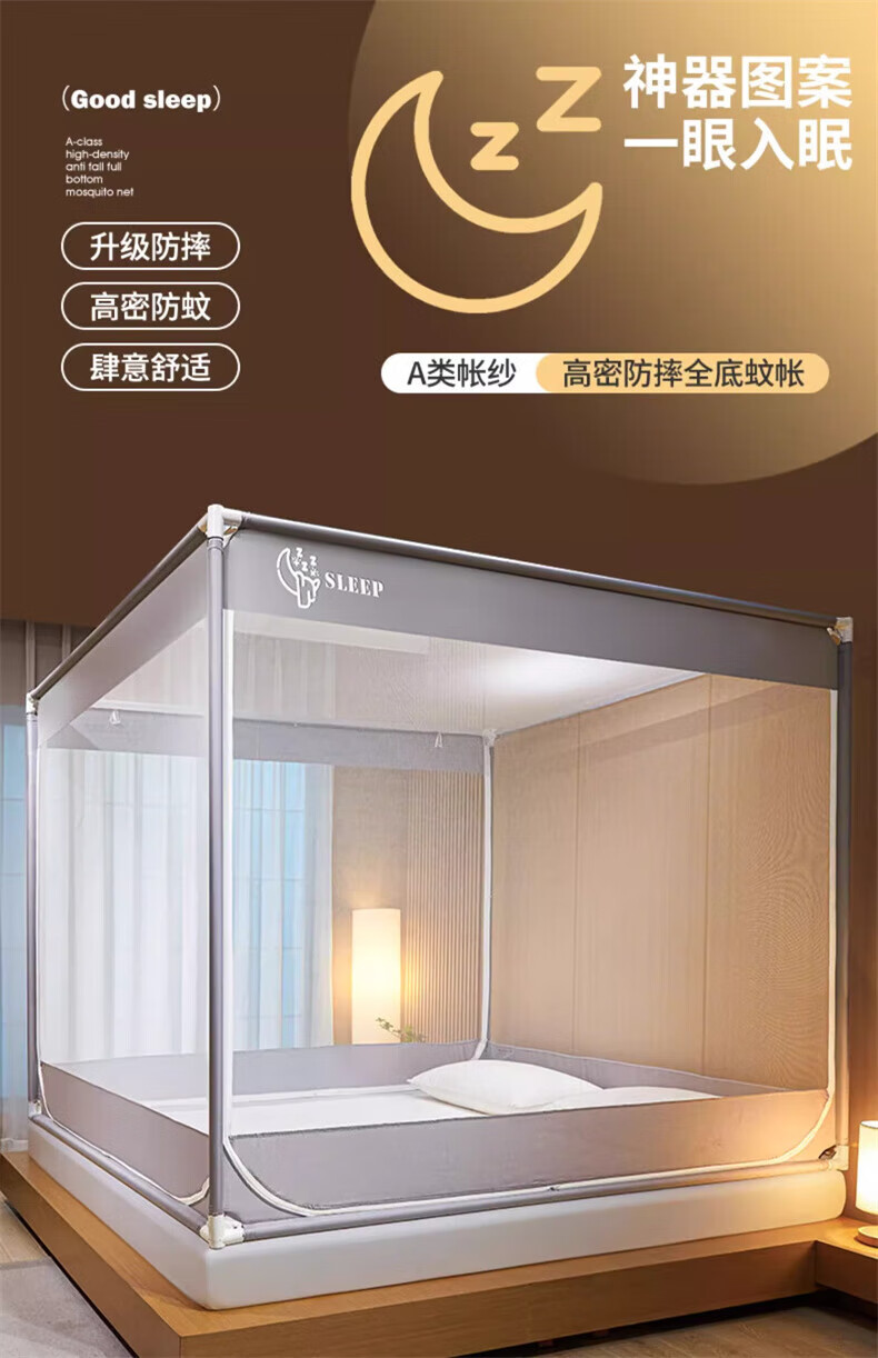 Steinmetz Class A encrypted baby mosquito net anti-fall mosquito net three-door bed sheet bedroom bracket baby sitting bed U Xizi Lanyi 200cm*150cm*170cm1.5m bed